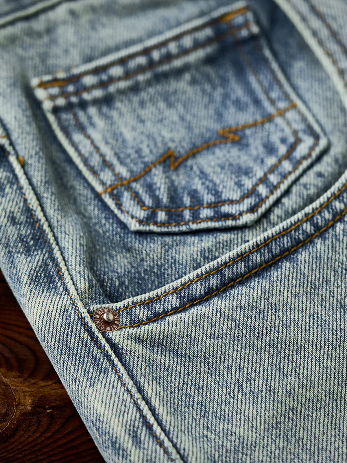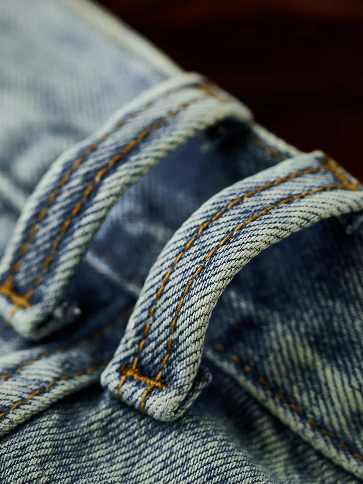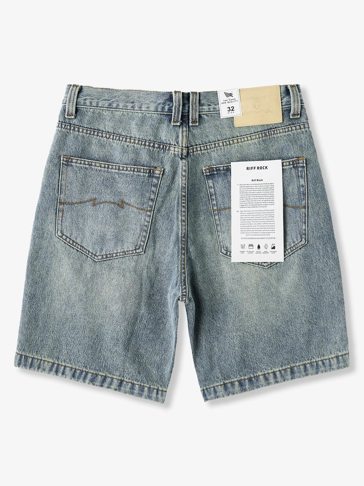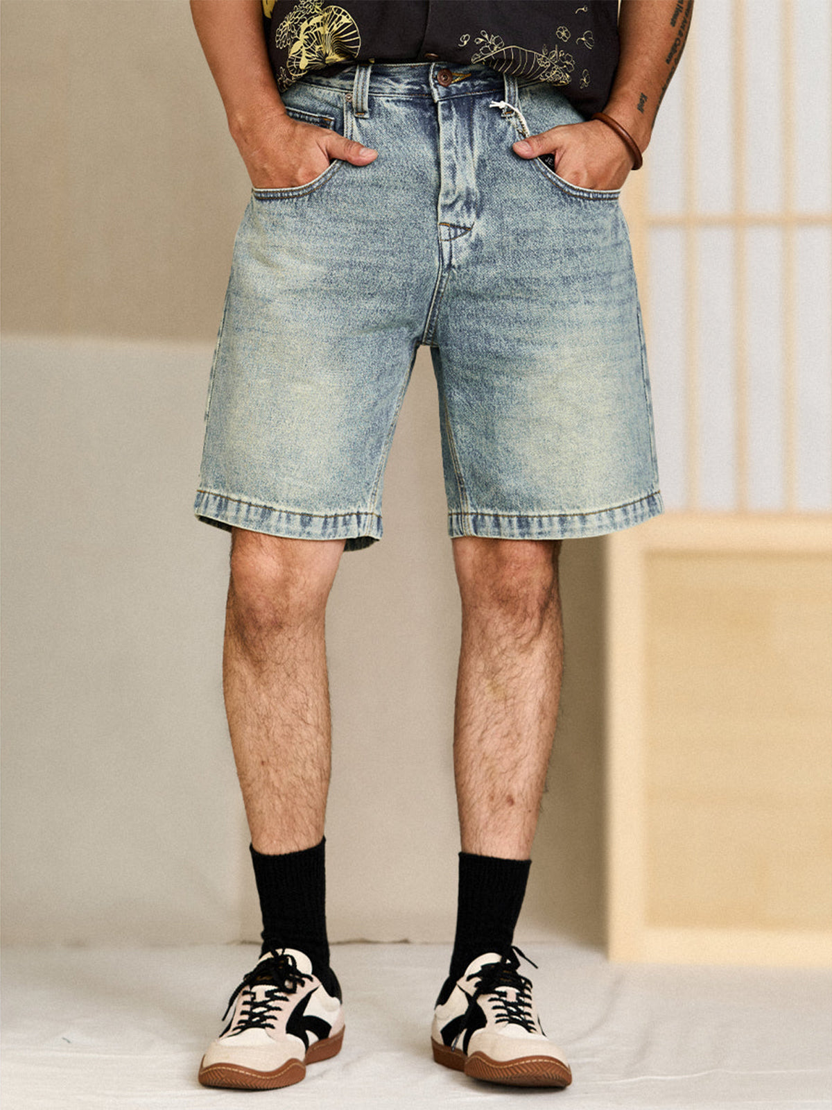 Whiskered Pocket-Stitch Denim Shorts