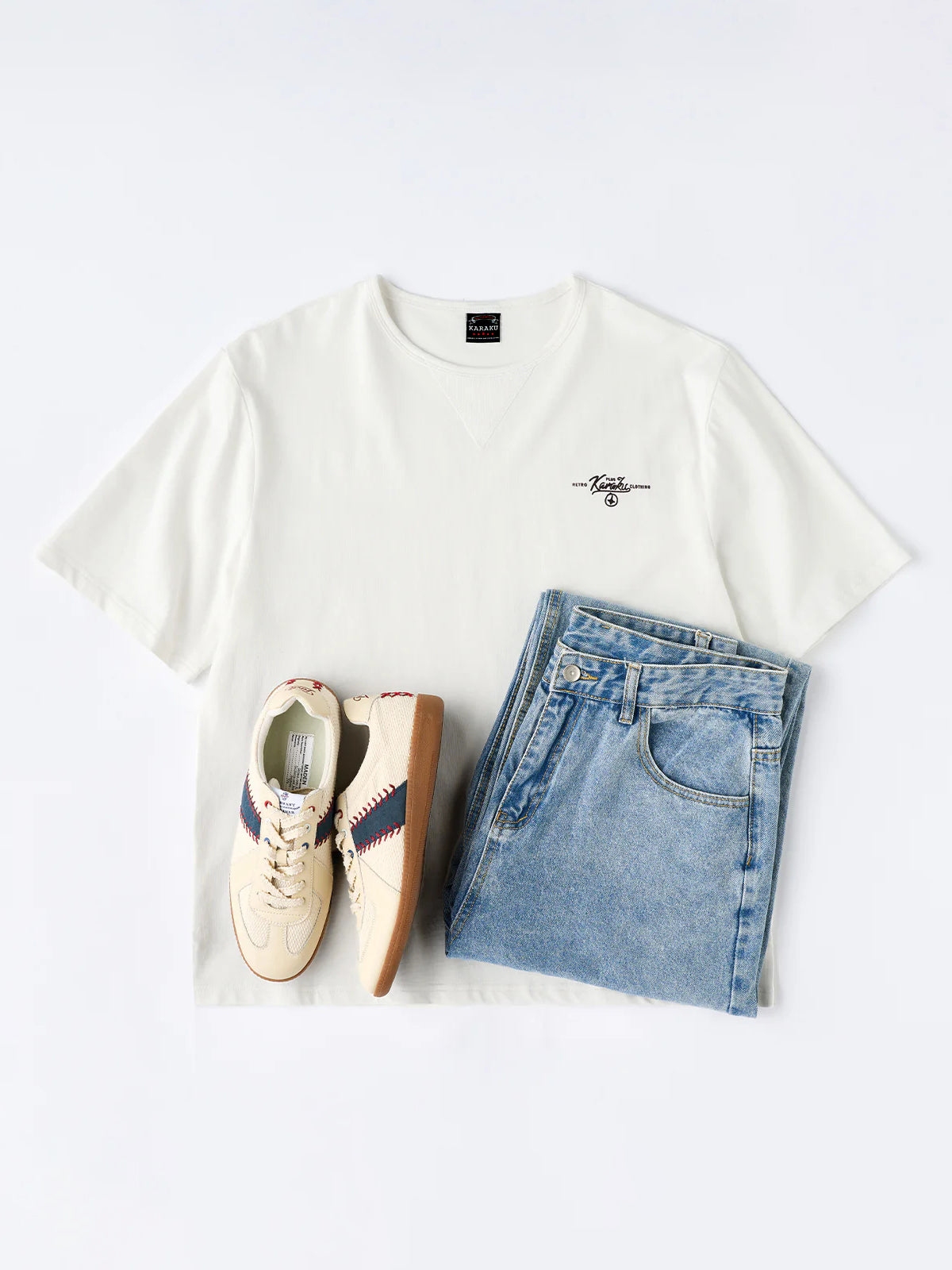 KARAKU Logo Print Navy blue crew neck cotton T-shirt
