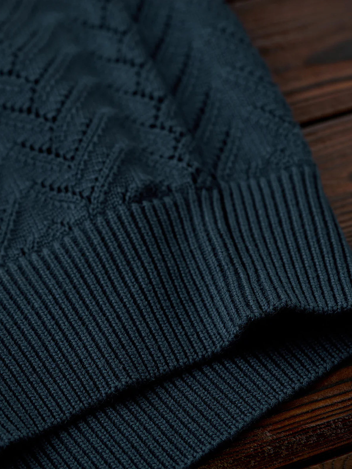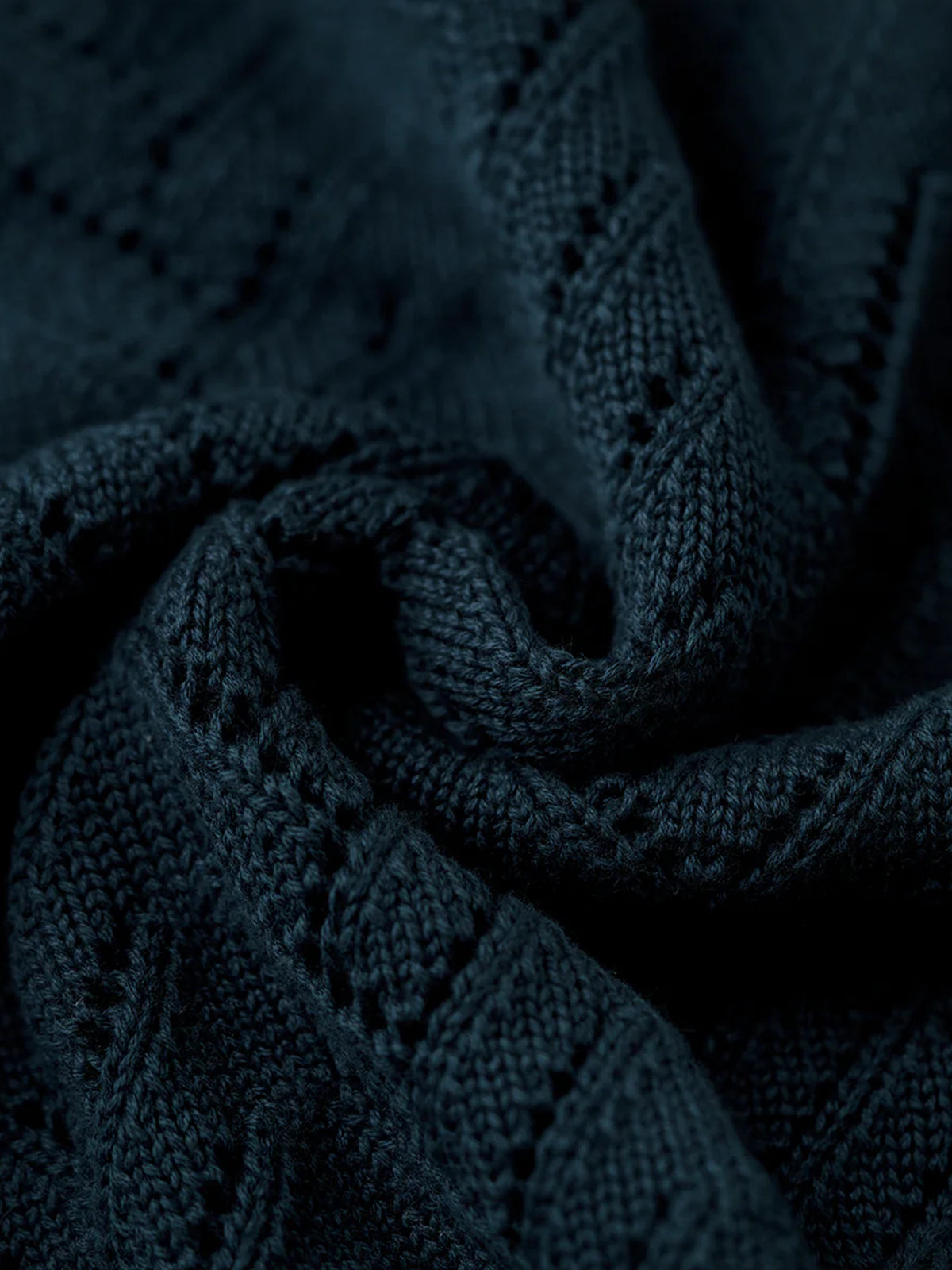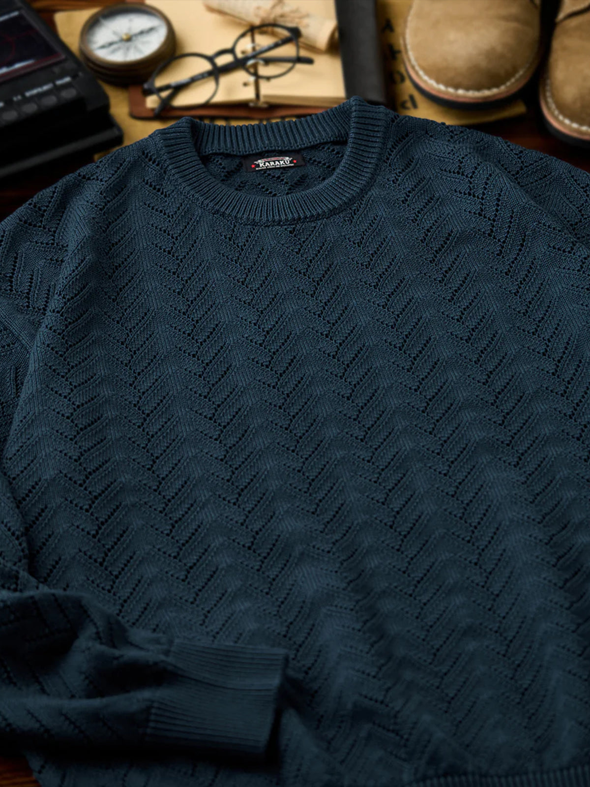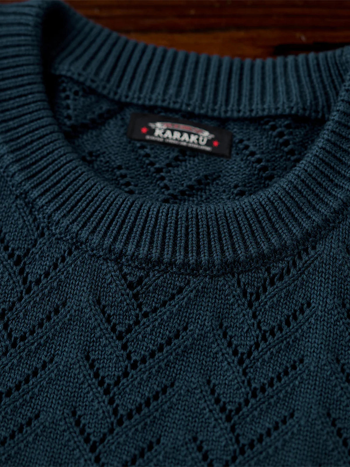 This relaxed-fit sweater features delicate openwork knitting that creates an airy, layered look. The intricate lace pattern adds a lightweight texture, achieving a simple yet refined and sophisticated aesthetic. The roomy drop-shoulder silhouette offers a comfortably relaxed fit. Crafted from soft, high-quality yarn with optimal thickness, it provides comfortable wear during seasonal transitions. Perfect for layering over shirts or long-sleeve tees.