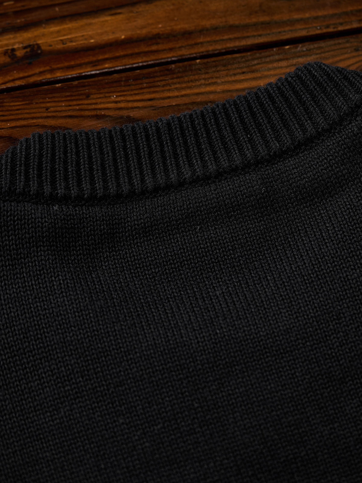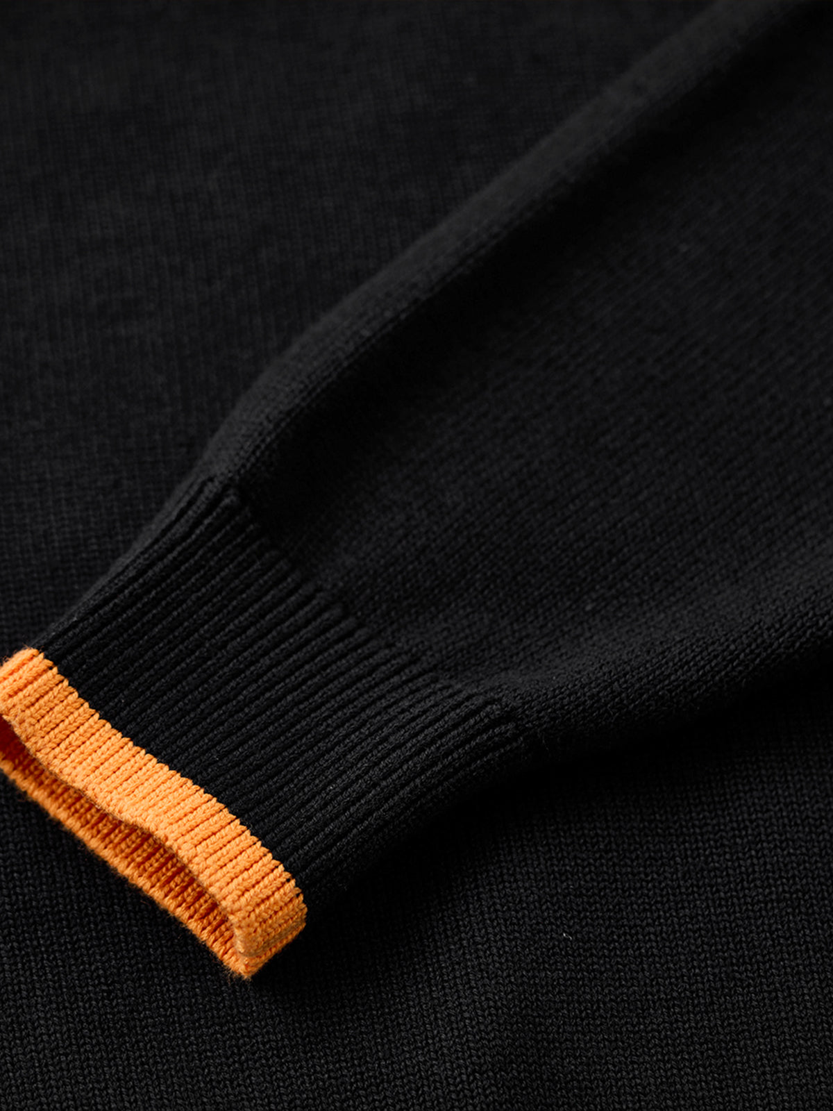 The crewneck design ensures casual style and comfortable wear. The ribbed neckline is simple yet durable, designed to withstand long-term use. The cuffs feature an orange color block, providing a subtle accent against the overall black color.