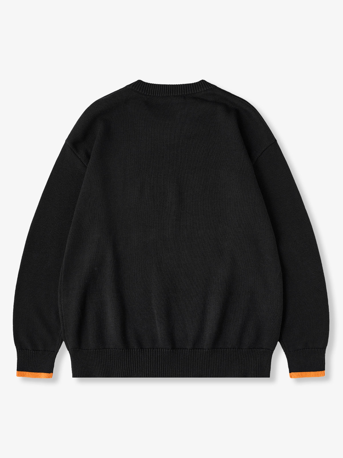 [Pre-order] Jacquard Knit Sweater with Cat Face Pocket and Orange Cuffs