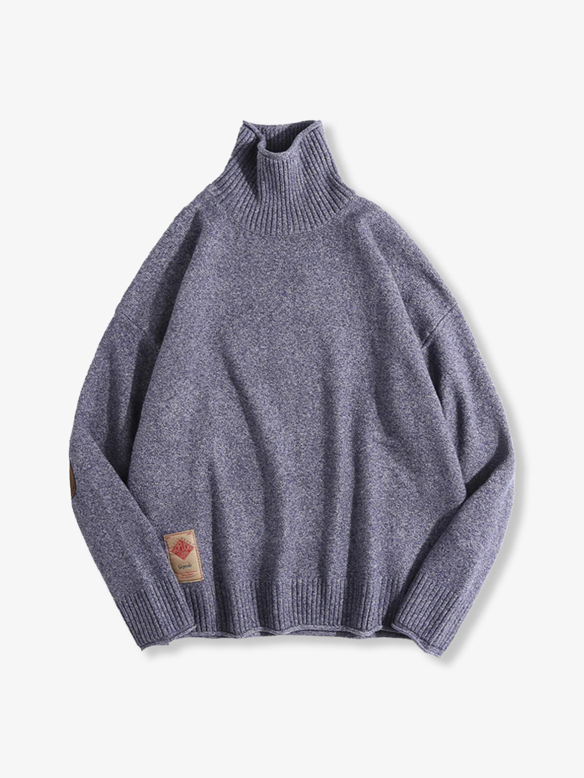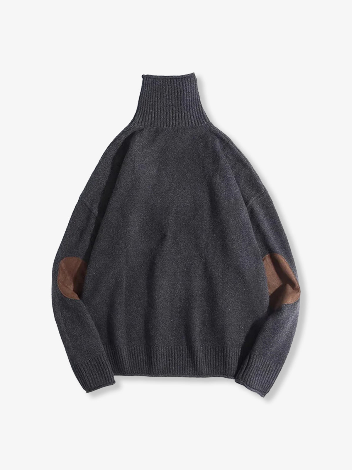 Elbow Patch Turtleneck Fancy Knit Sweater