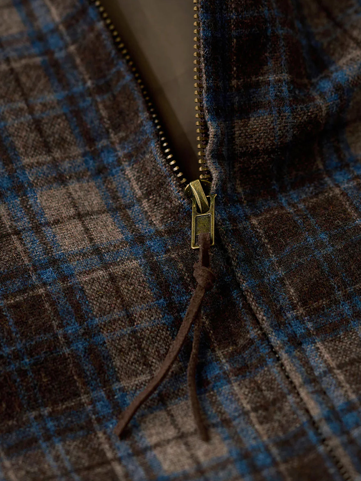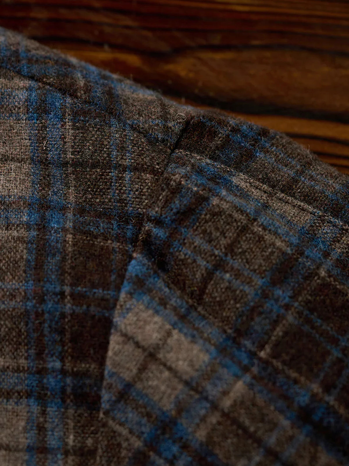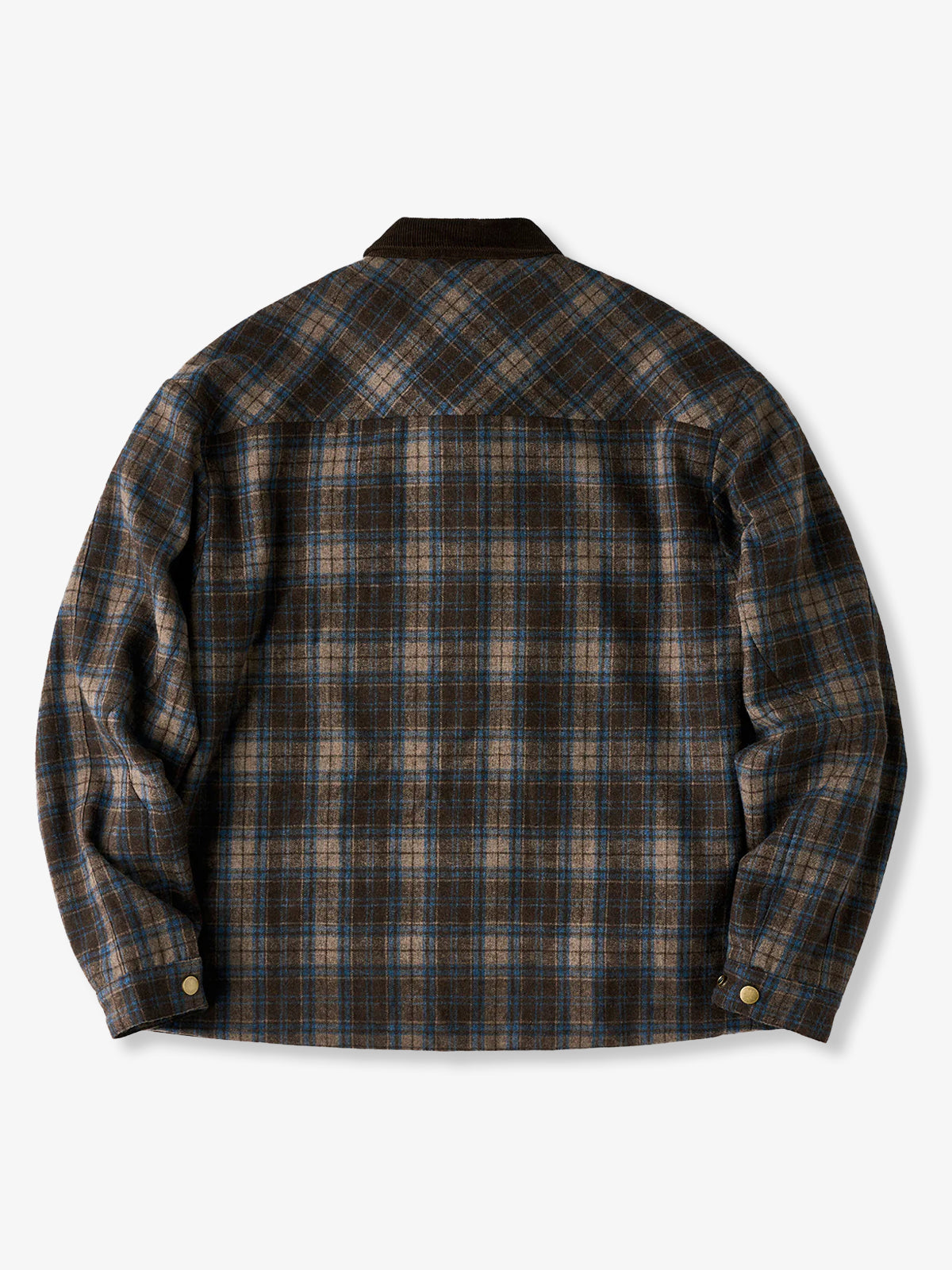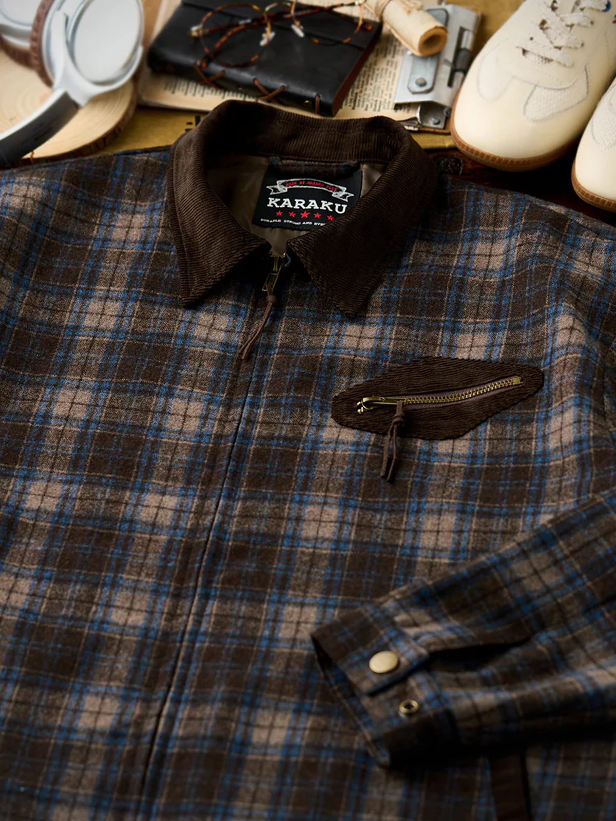 A Detroit jacket rooted in rugged workwear has been updated with a wool-blend tweed check pattern. The warm appearance is complemented by corduroy switch accents throughout, giving it a vintage feel. The moderately relaxed silhouette allows for layering with inner garments and matches a wide range of autumn and winter styling. This seasonal piece combines the toughness of workwear with the refined elegance of traditional style.
