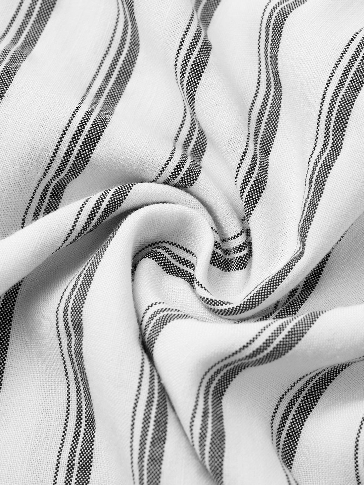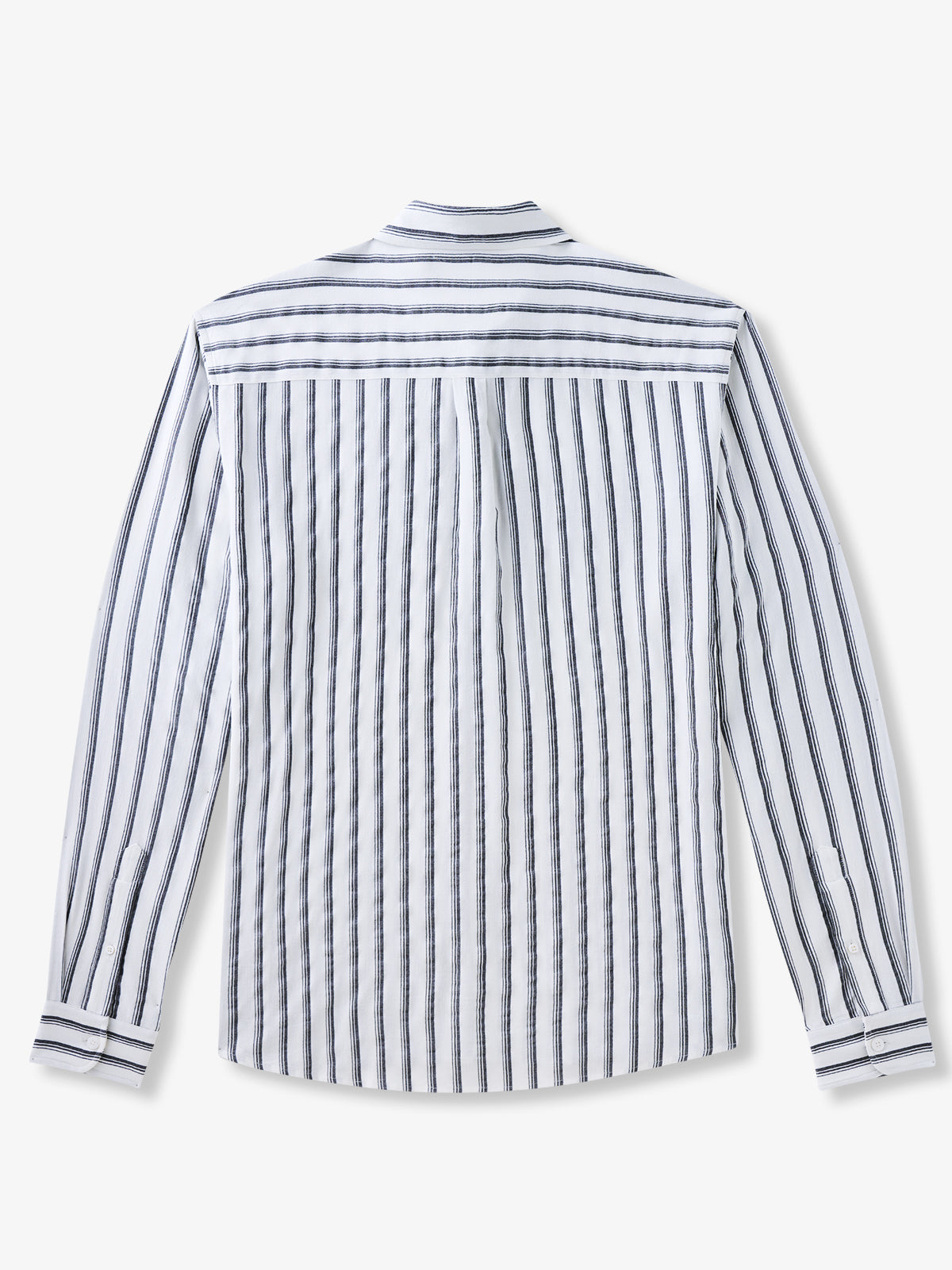 Elevate your wardrobe with this refined long-sleeve shirt, featuring a classic white background adorned with sleek black stripes. Crafted from a cotton linen blend, this shirt offers a sophisticated style while ensuring comfort with its moisture-wicking properties and subtle stretch and making it a versatile piece for any occasion, from casual outings to more polished events.