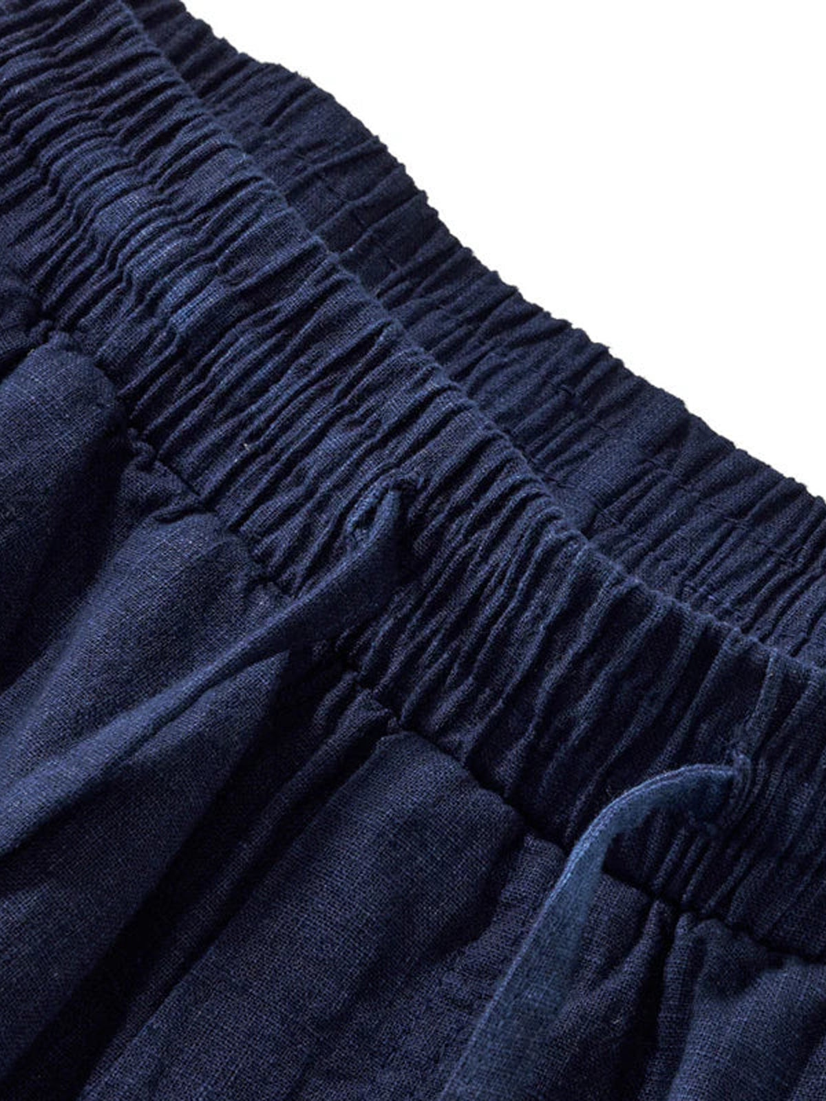 Indigo Dyed Cotton Linen Blend Casual Pants