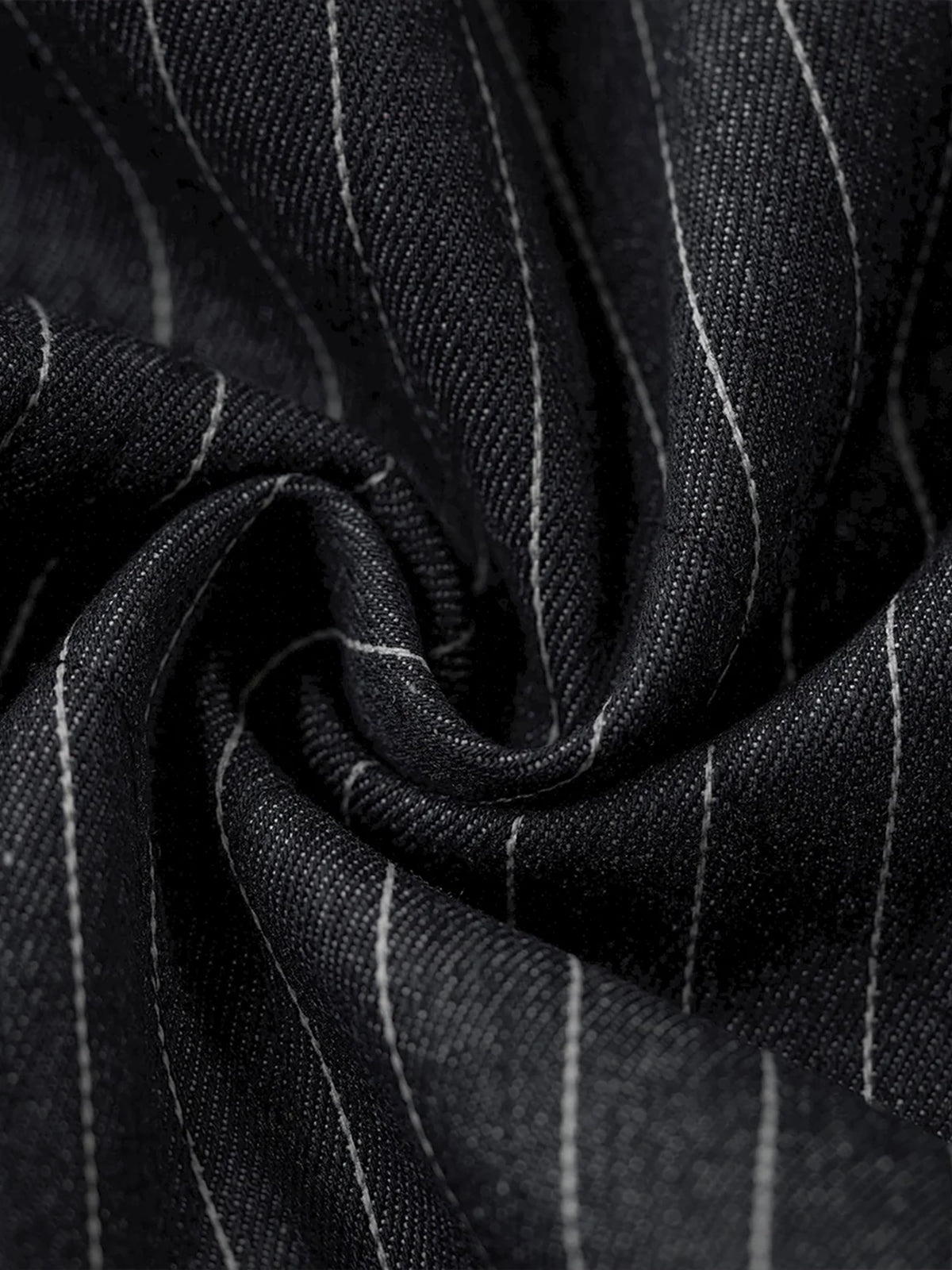 Washed Jacquard Denim Shirt with Cat Silhouette