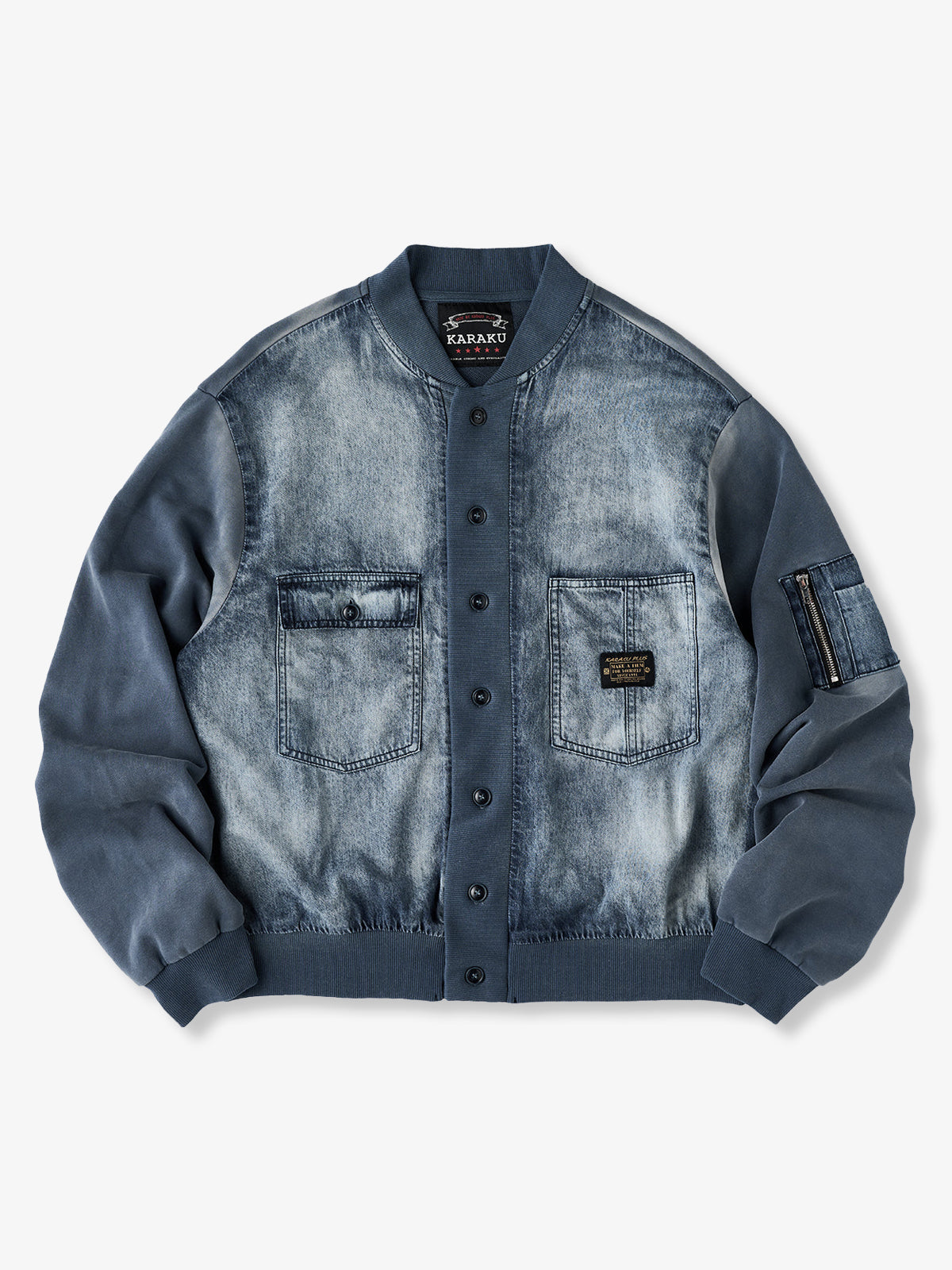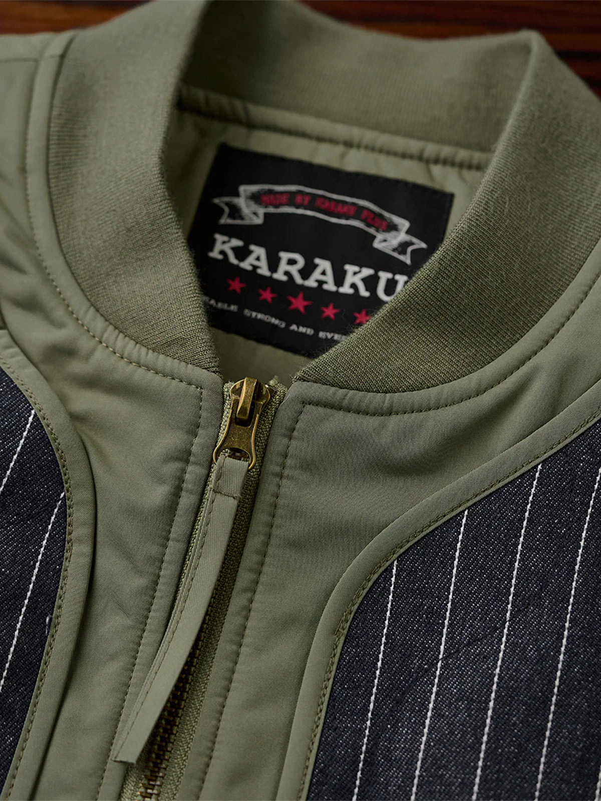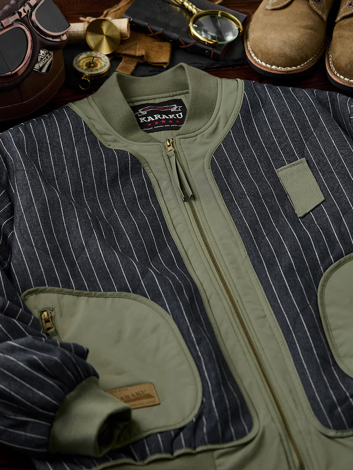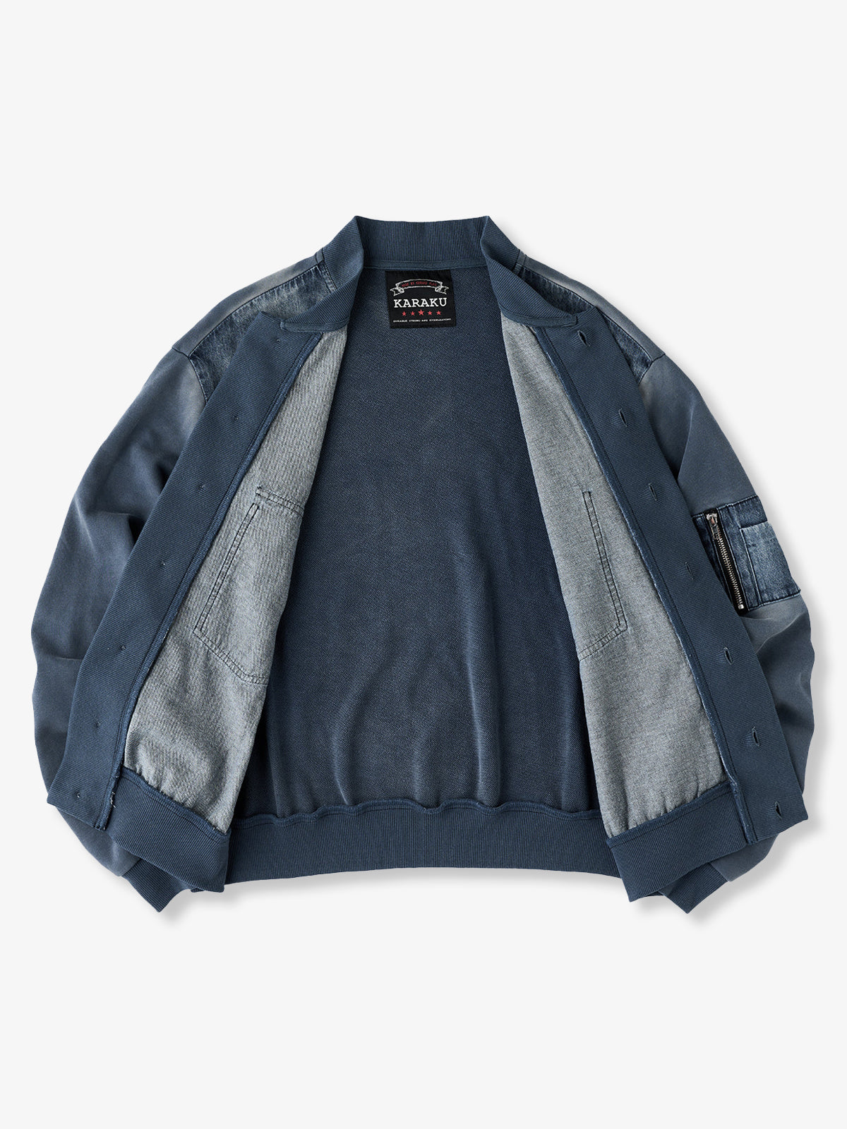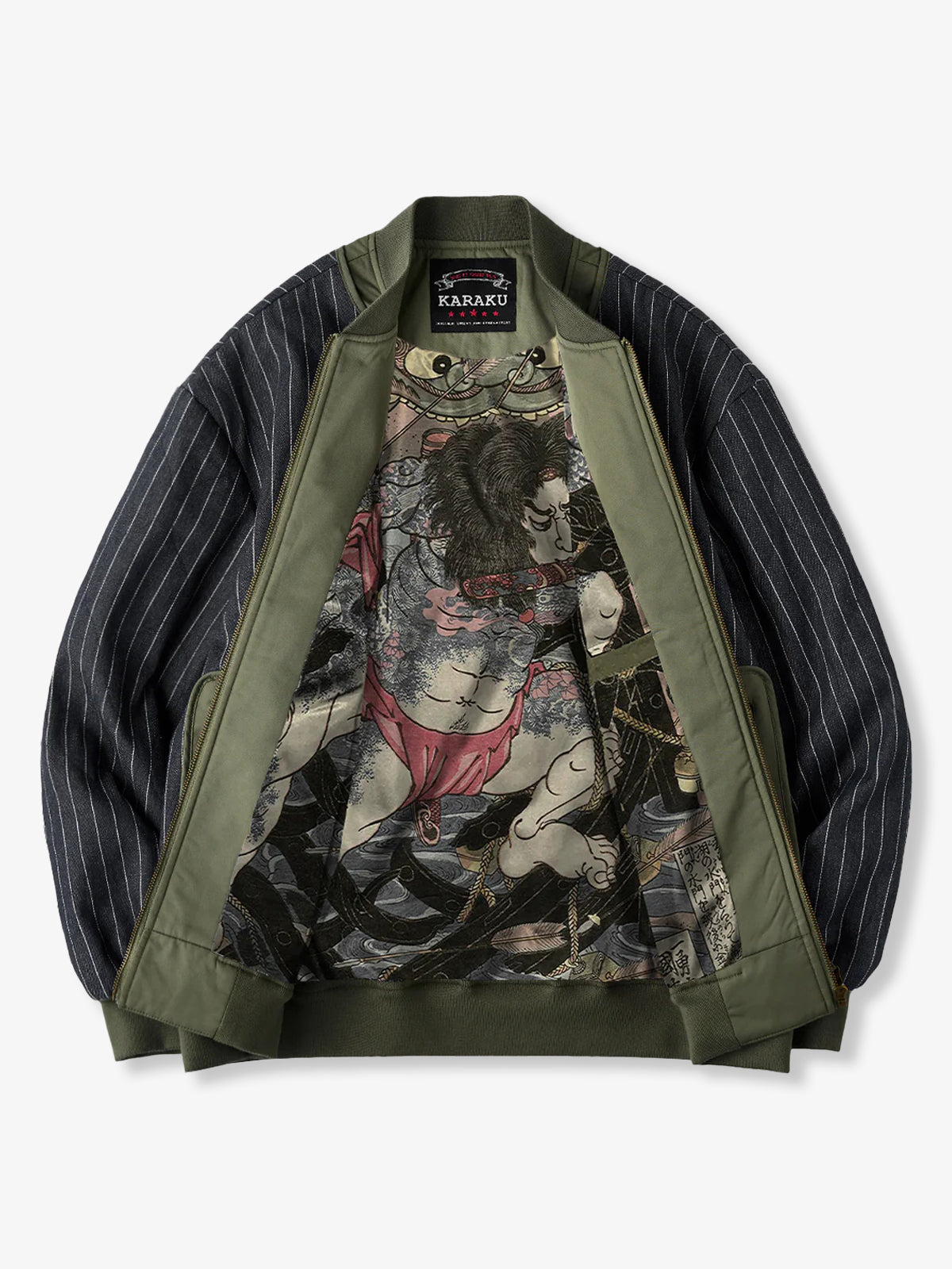 [Pre-Order] Quilted Denim Flight Jacket with 'Ryōri Haku Tō Chō Shun' Ukiyo-e Lining