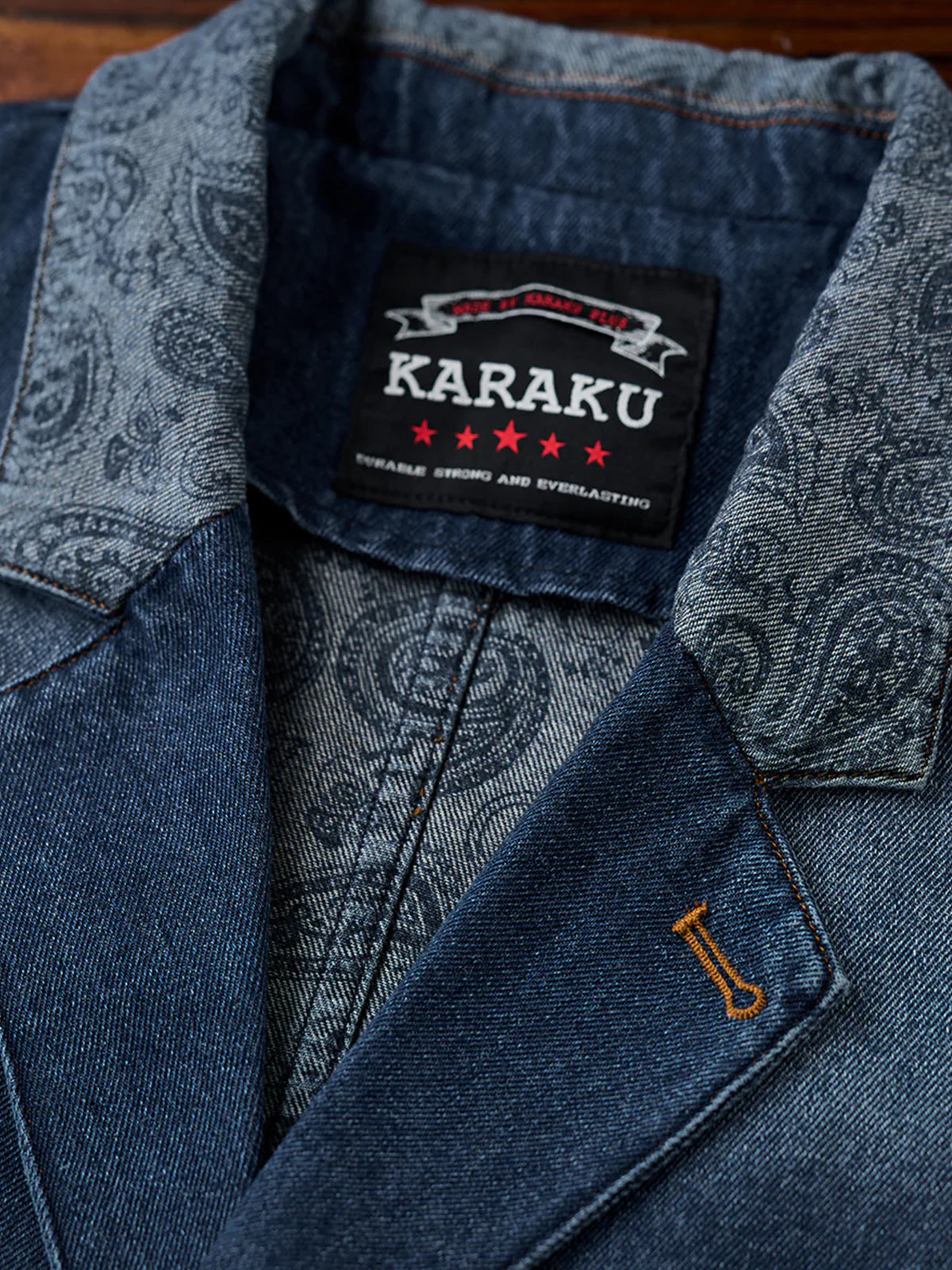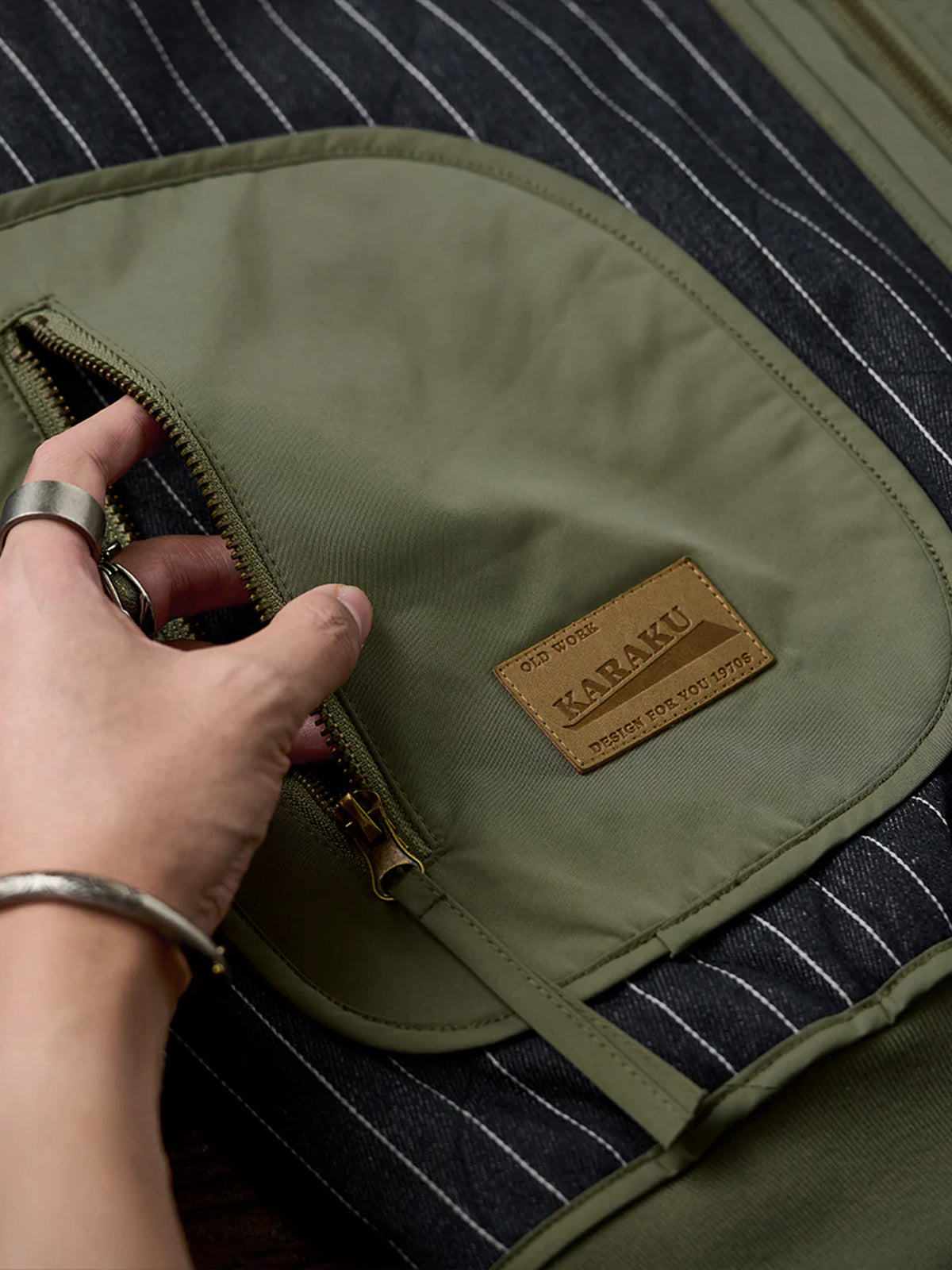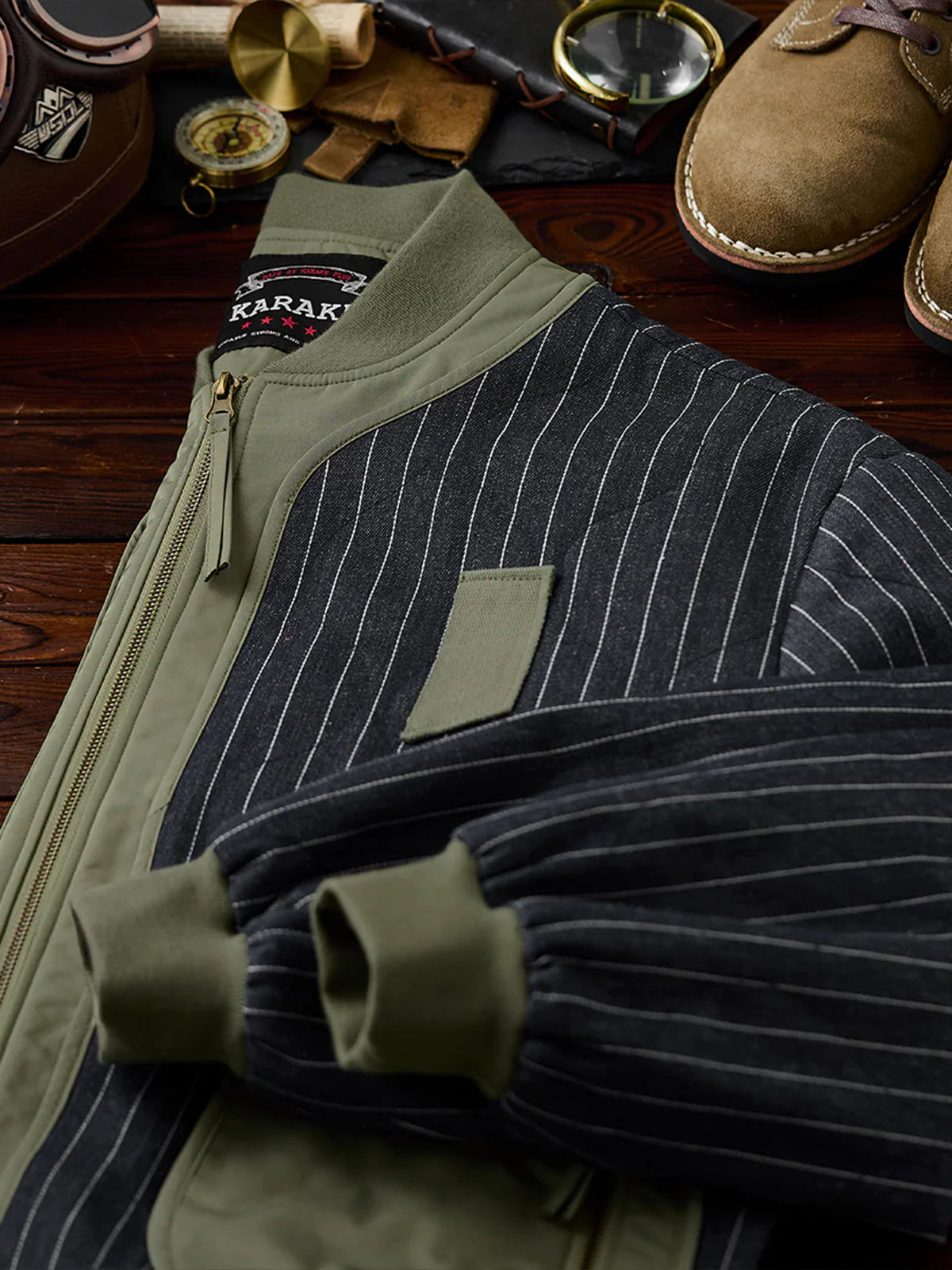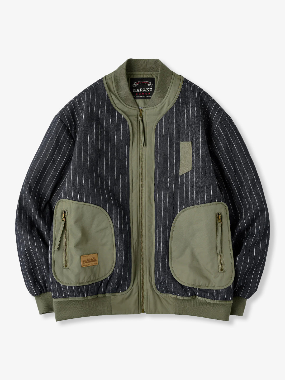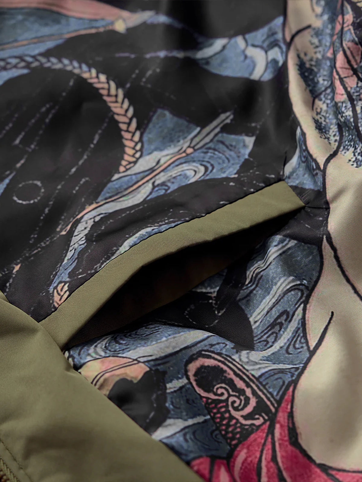 [Pre-Order] Quilted Denim Flight Jacket with 'Ryōri Haku Tō Chō Shun' Ukiyo-e Lining