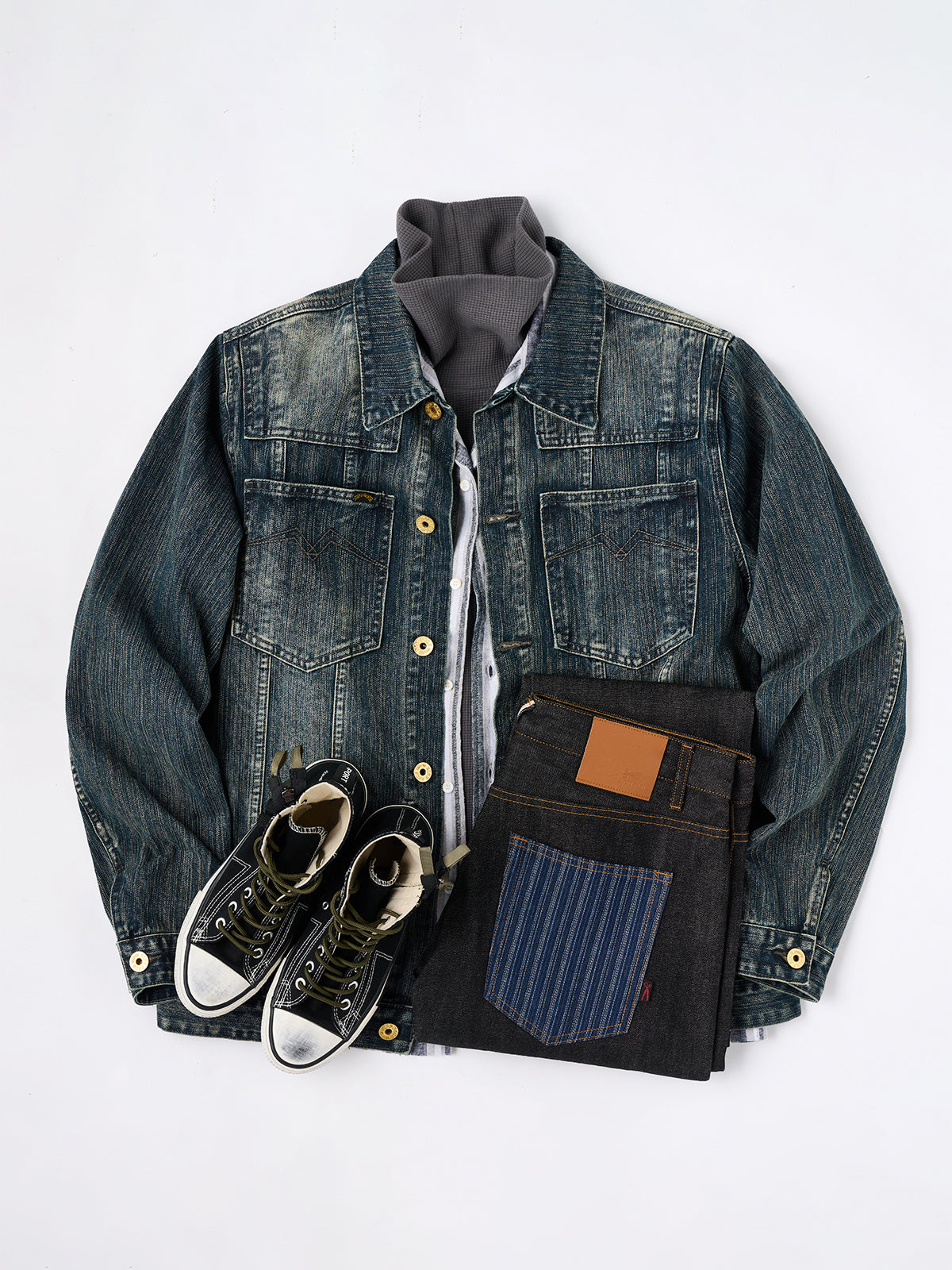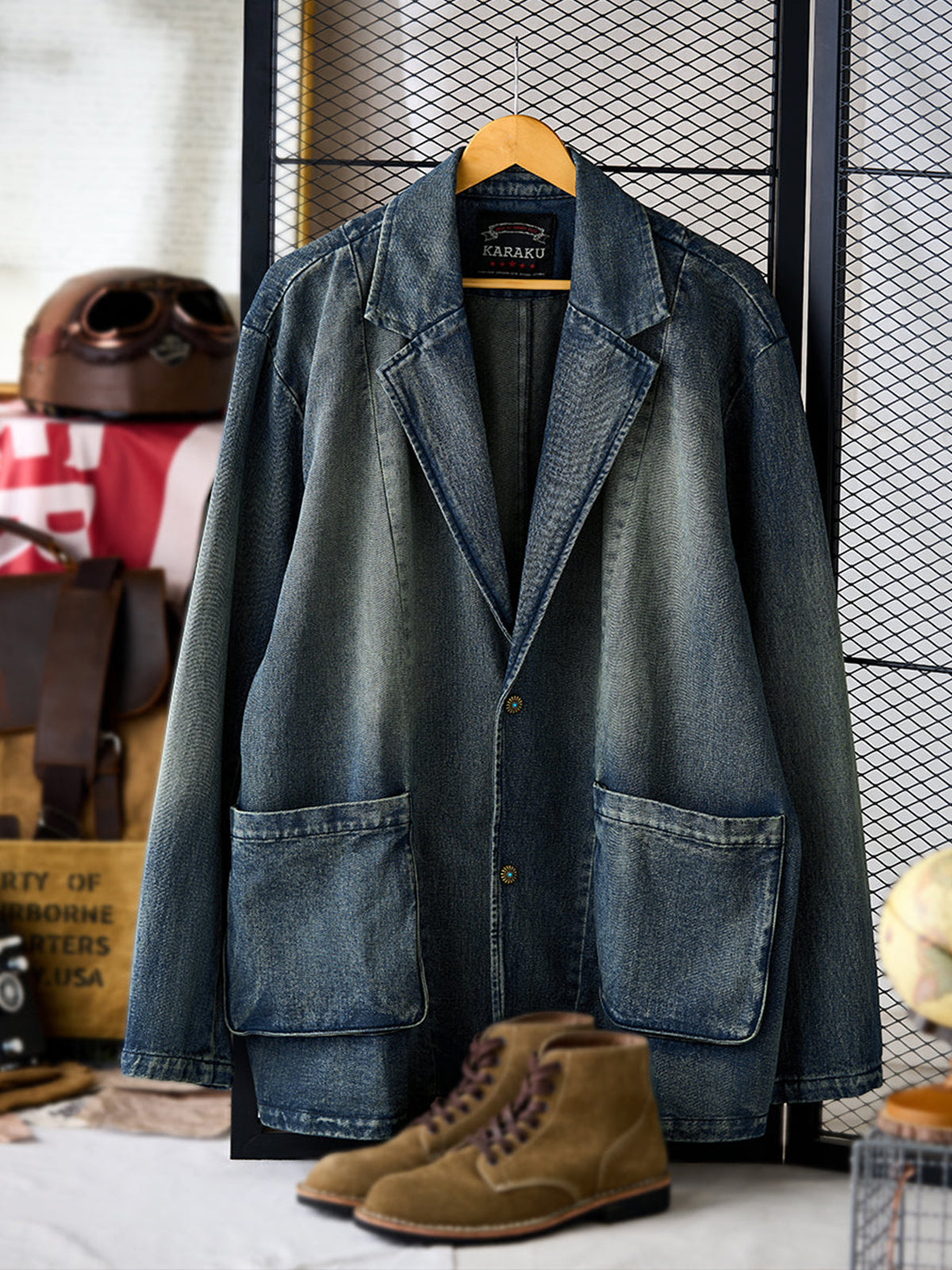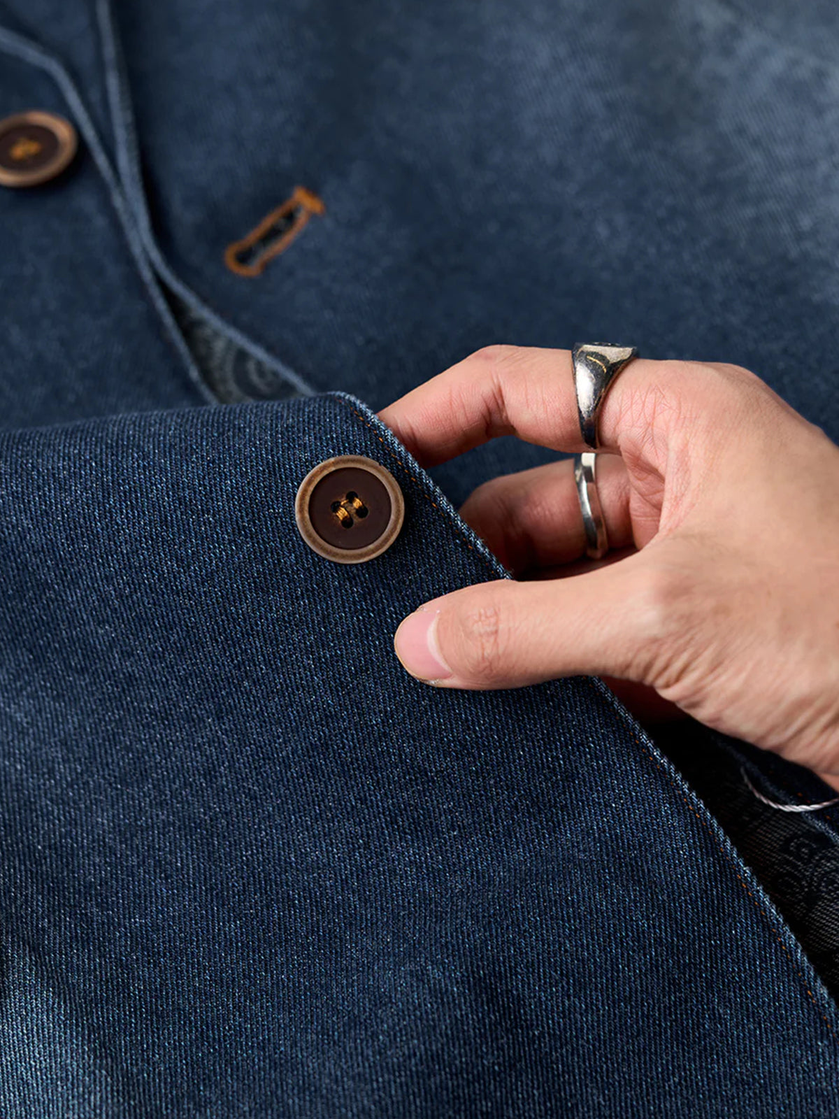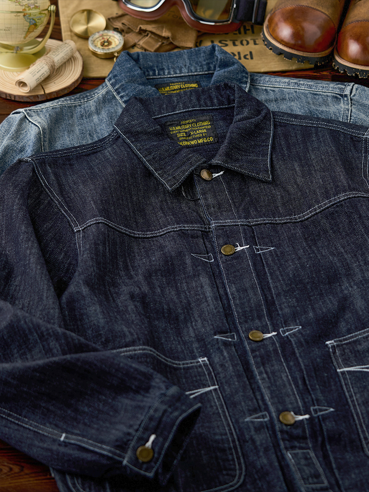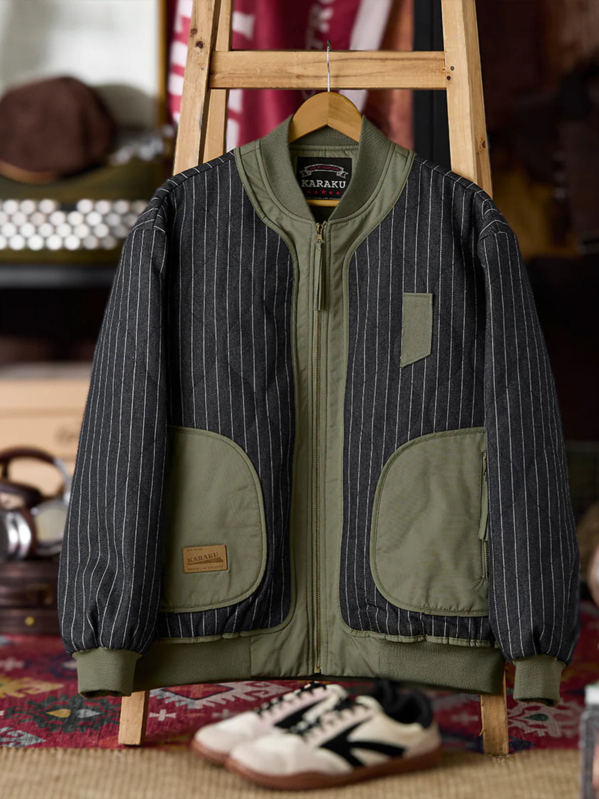 [Pre-Order] Quilted Denim Flight Jacket with 'Ryōri Haku Tō Chō Shun' Ukiyo-e Lining