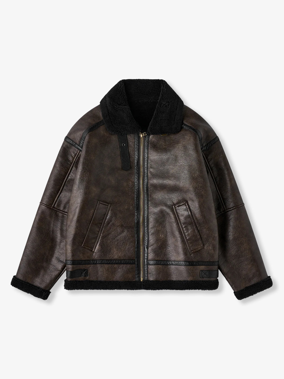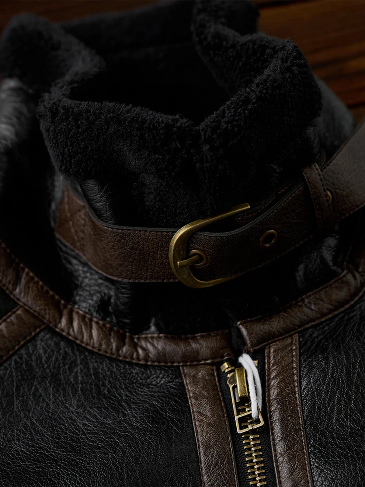 B-15 Quilted-Lining Bomber Jacket with Removable Faux-Fur Collar