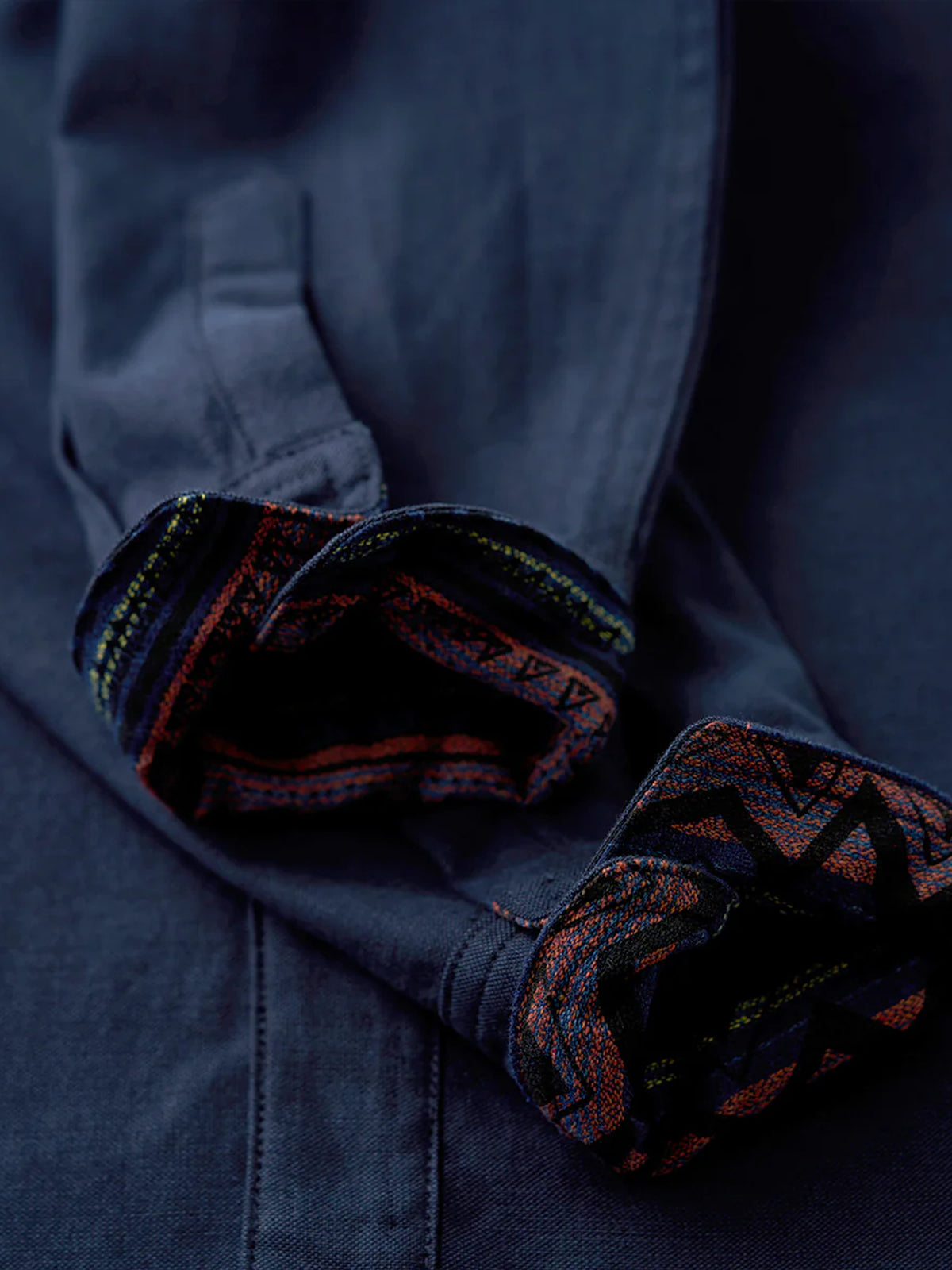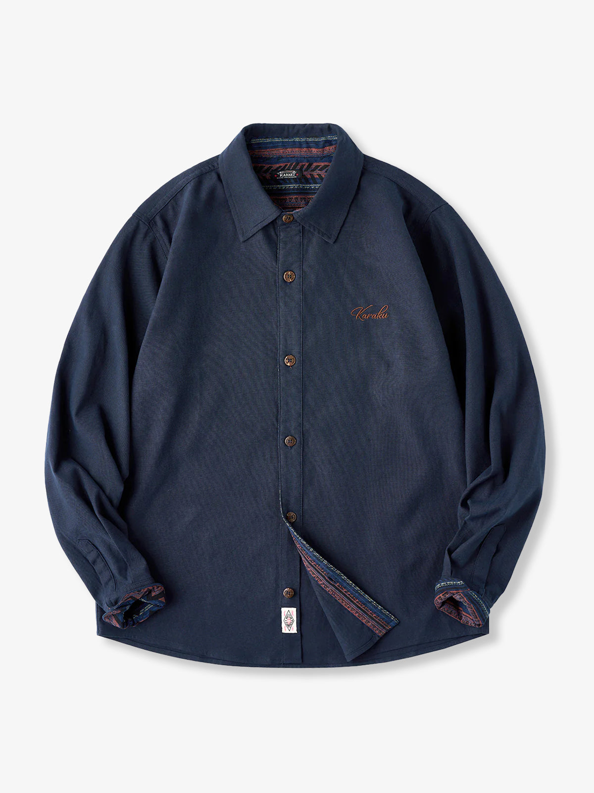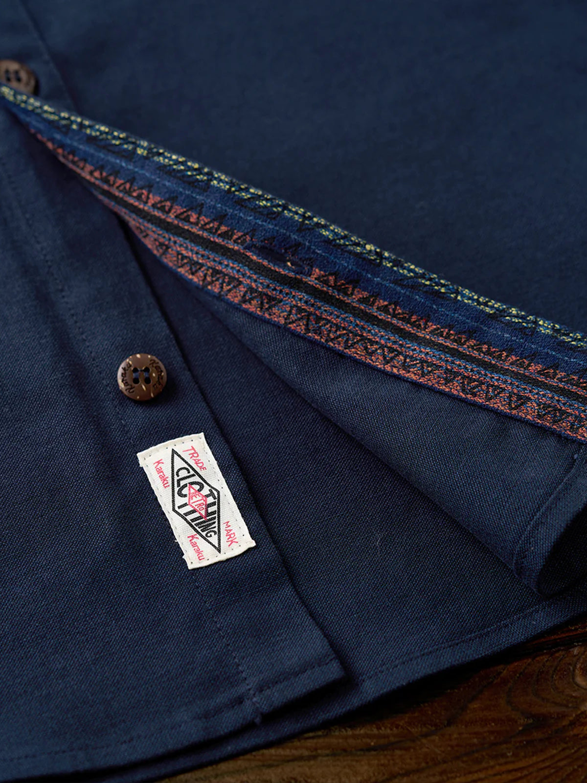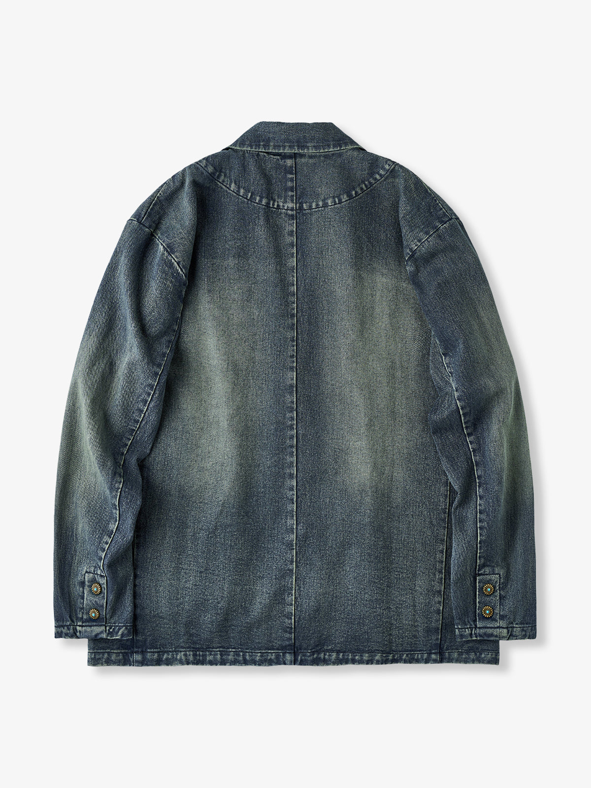 Ukiyoe Print & 3D Embroidery Baseball Collar Denim Shirt