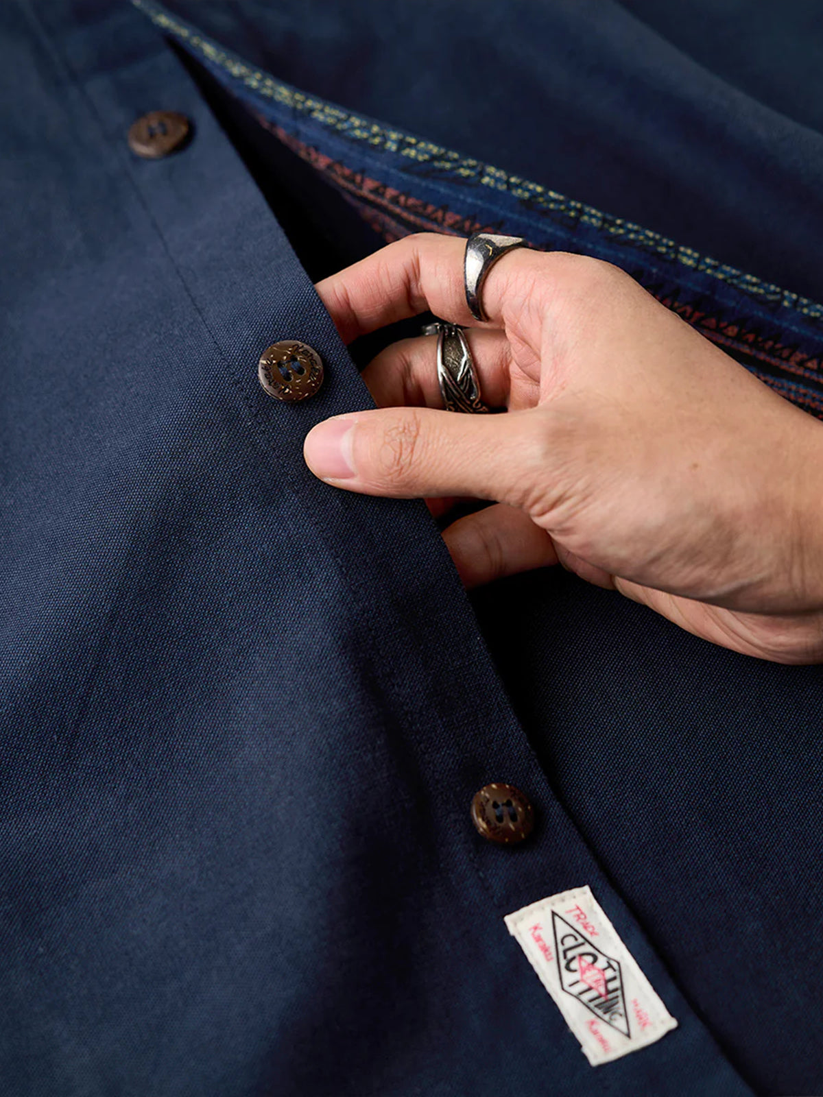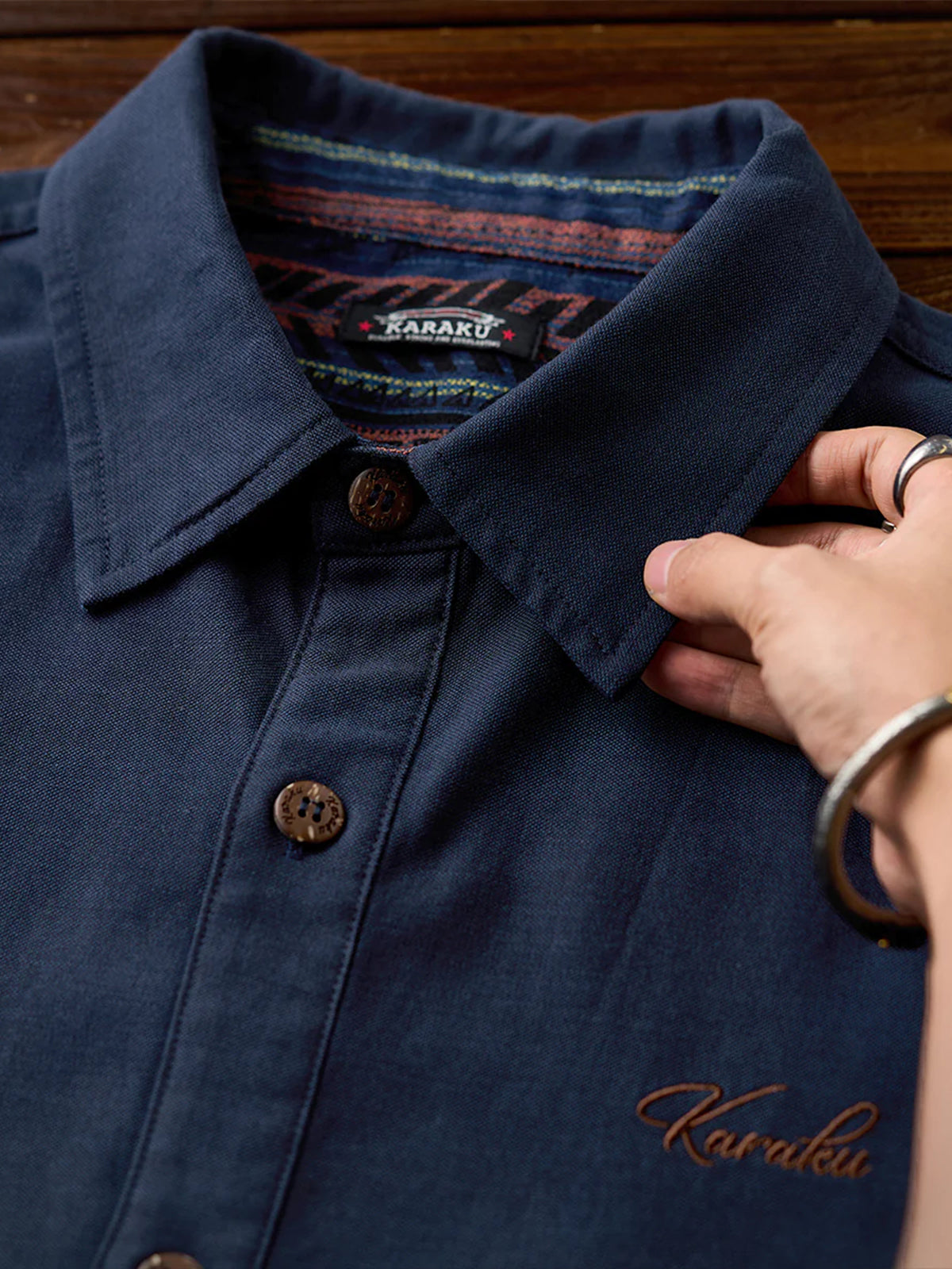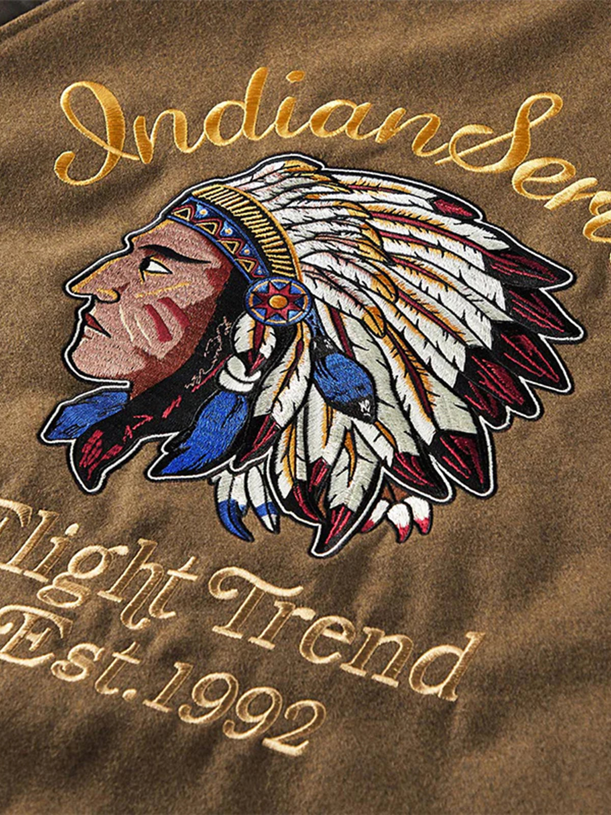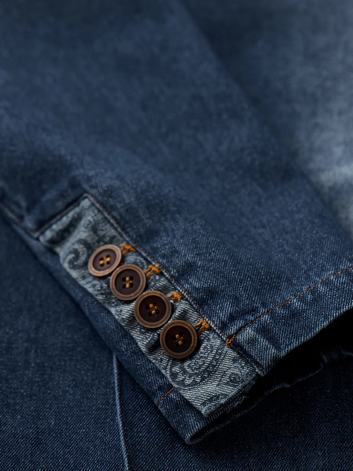 Ukiyoe Print & 3D Embroidery Baseball Collar Denim Shirt