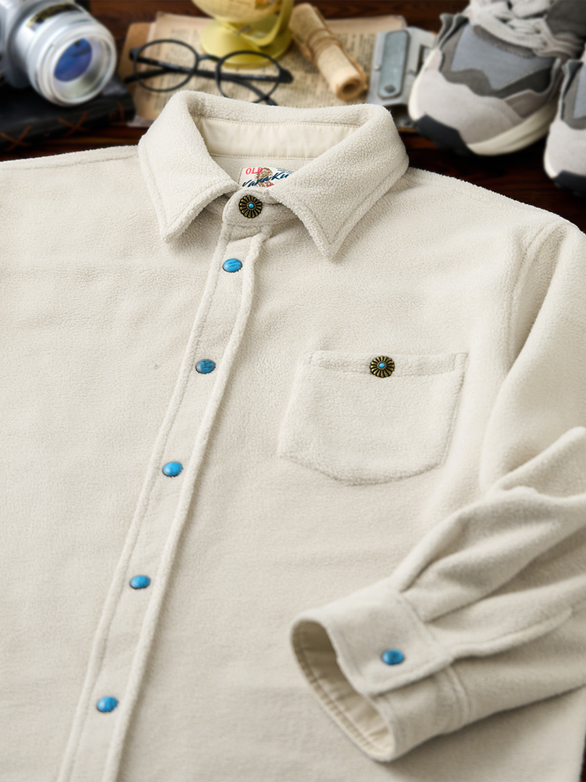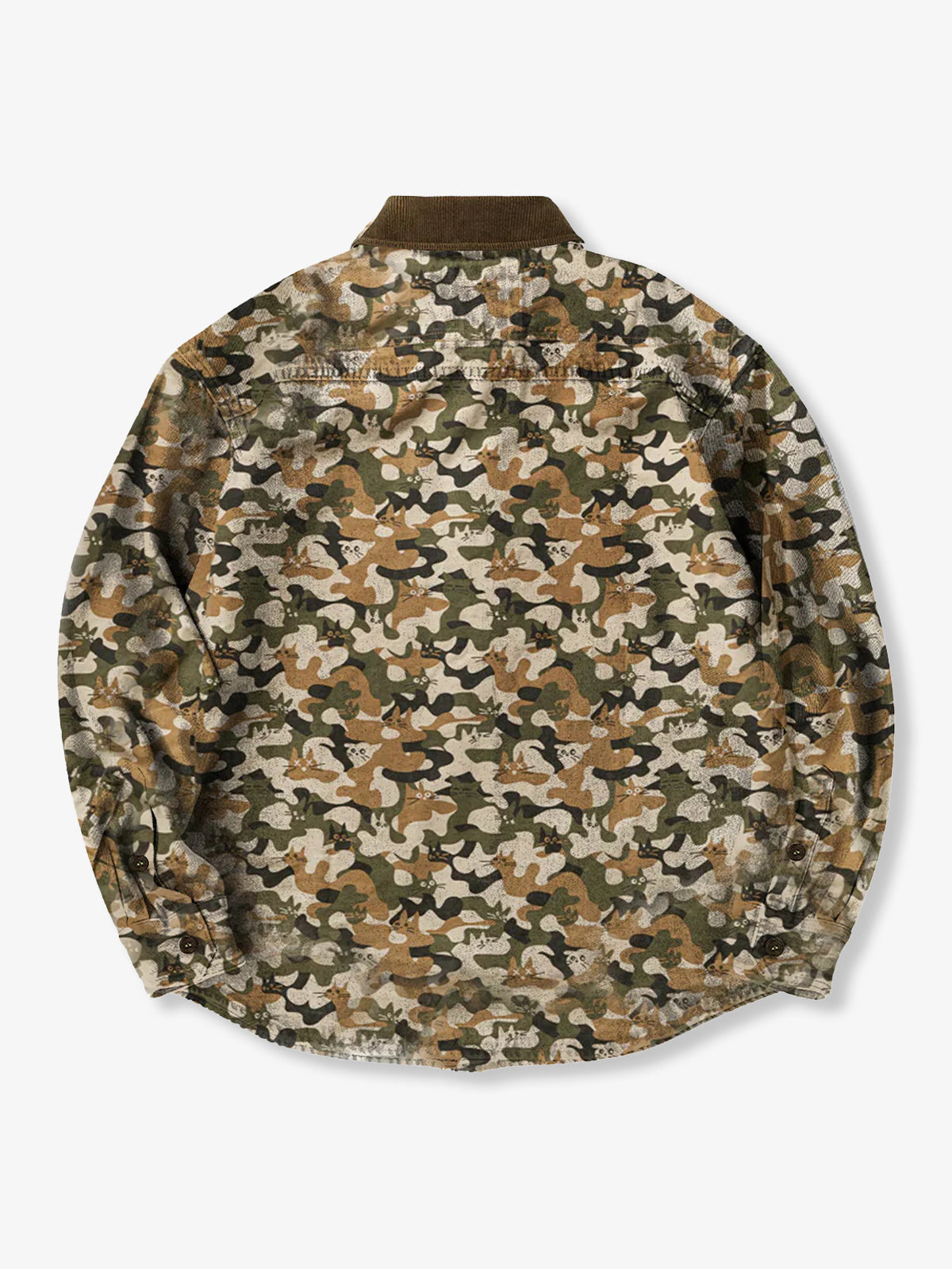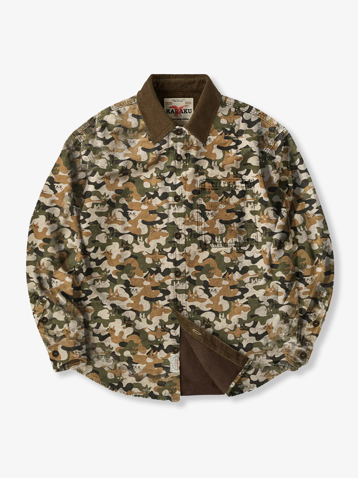 [Pre-Order] 'Cats Camouflaged' Pattern Fleece-Lined Long-Sleeve Shirt with Corduroy Collar