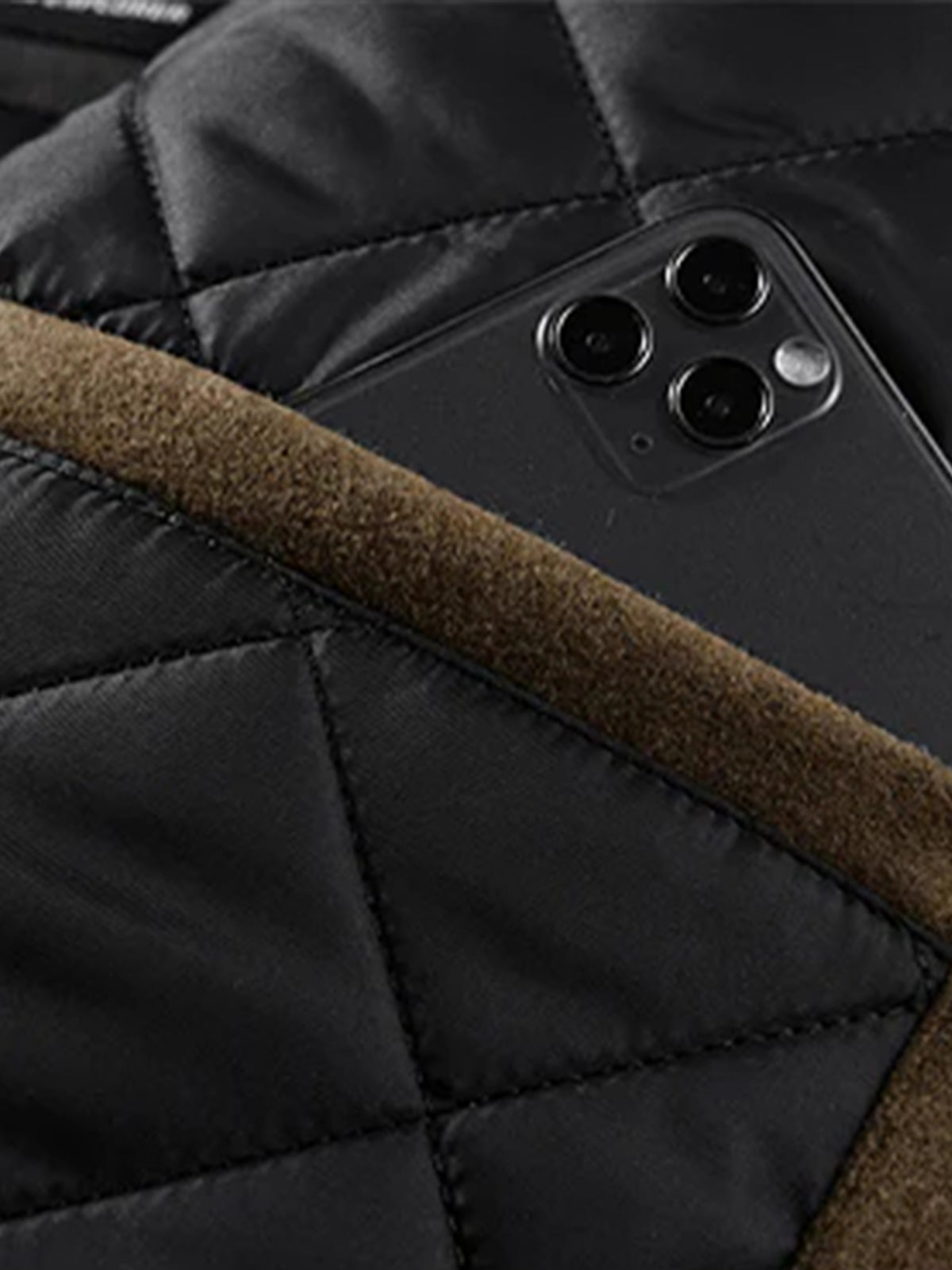 [Pre-Order] Gourd-Quilted Padded Jacket with Multi-Pockets and Red Hem Drawstring