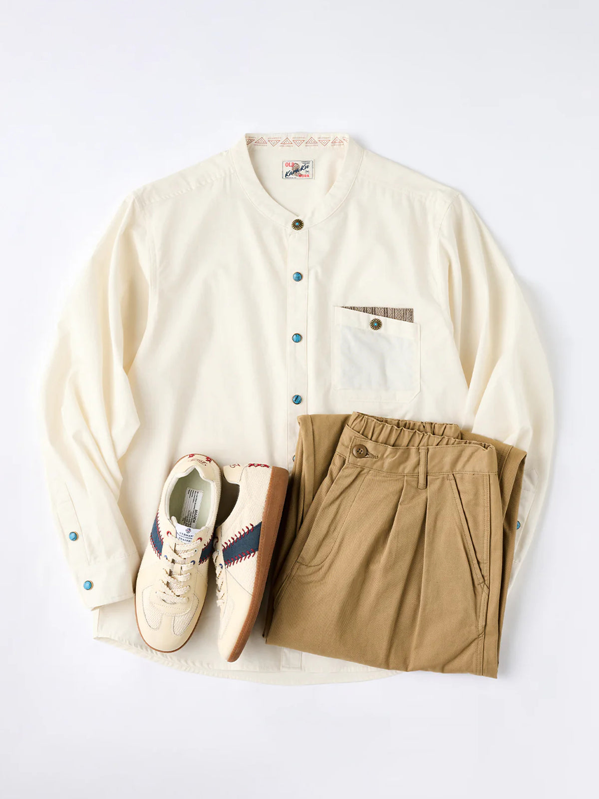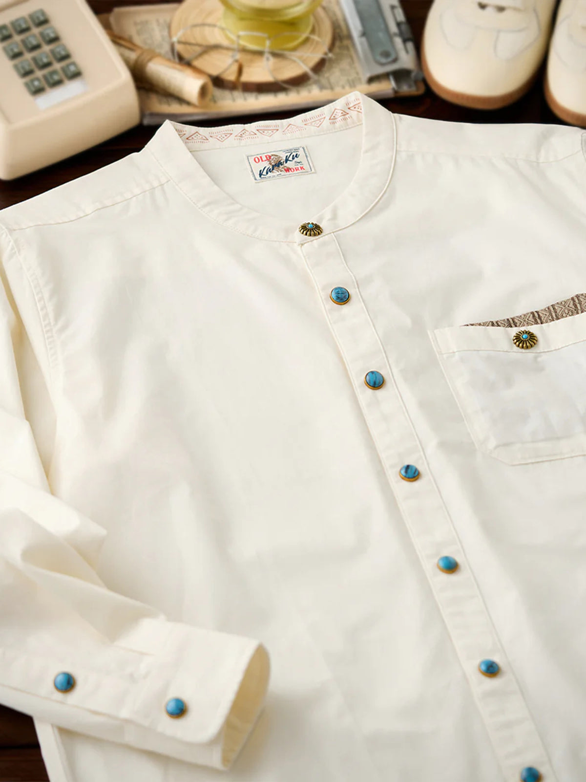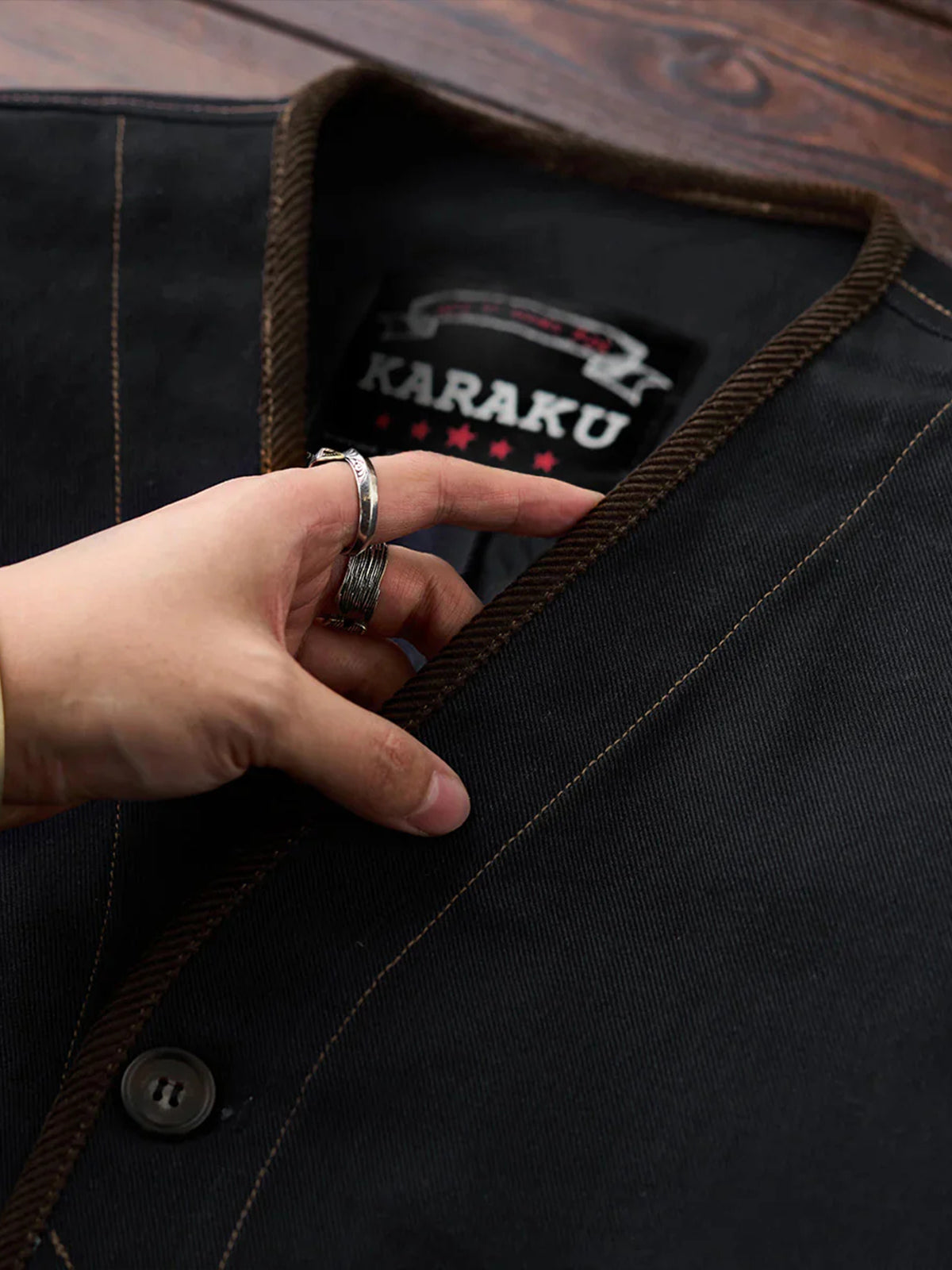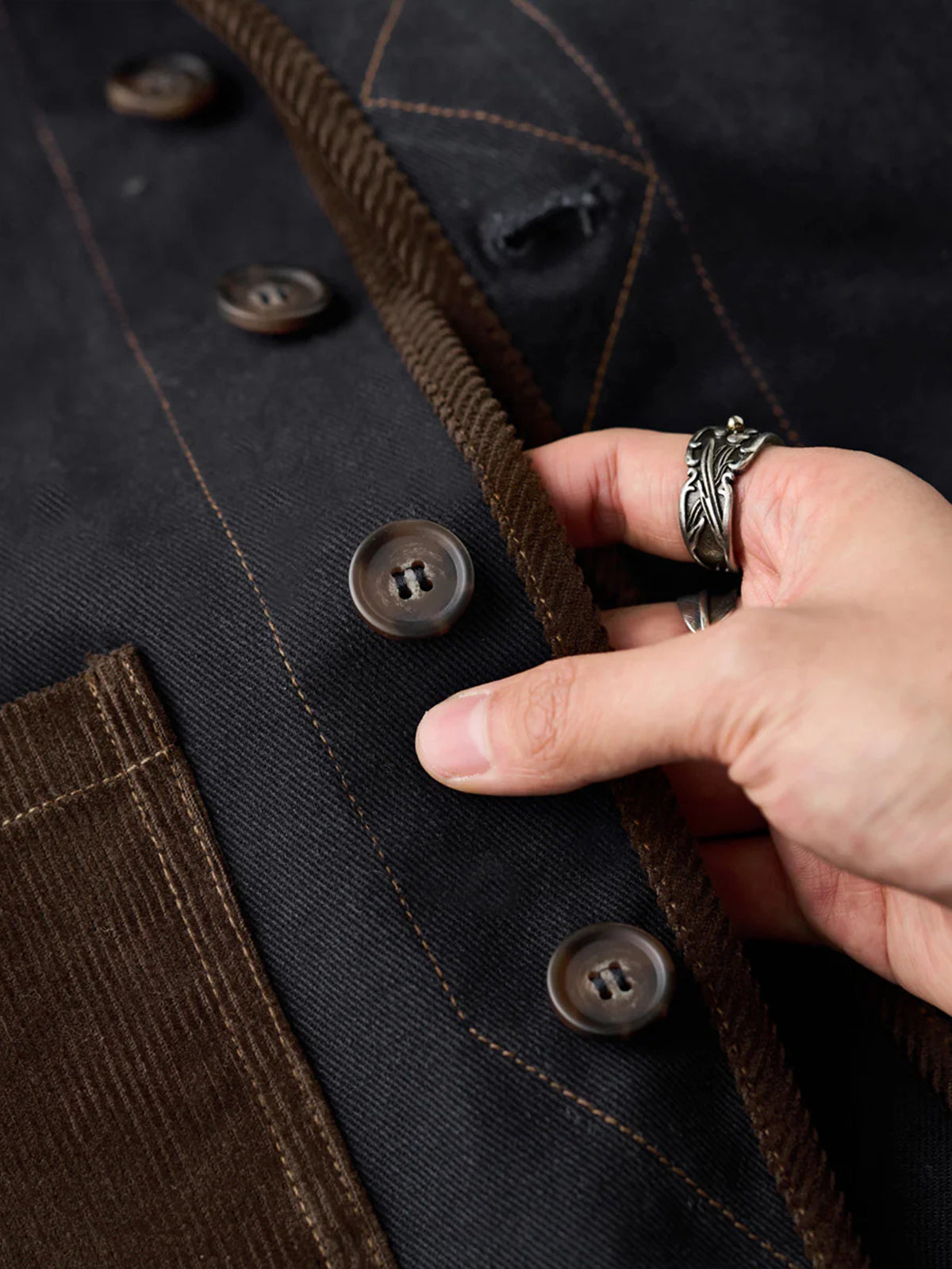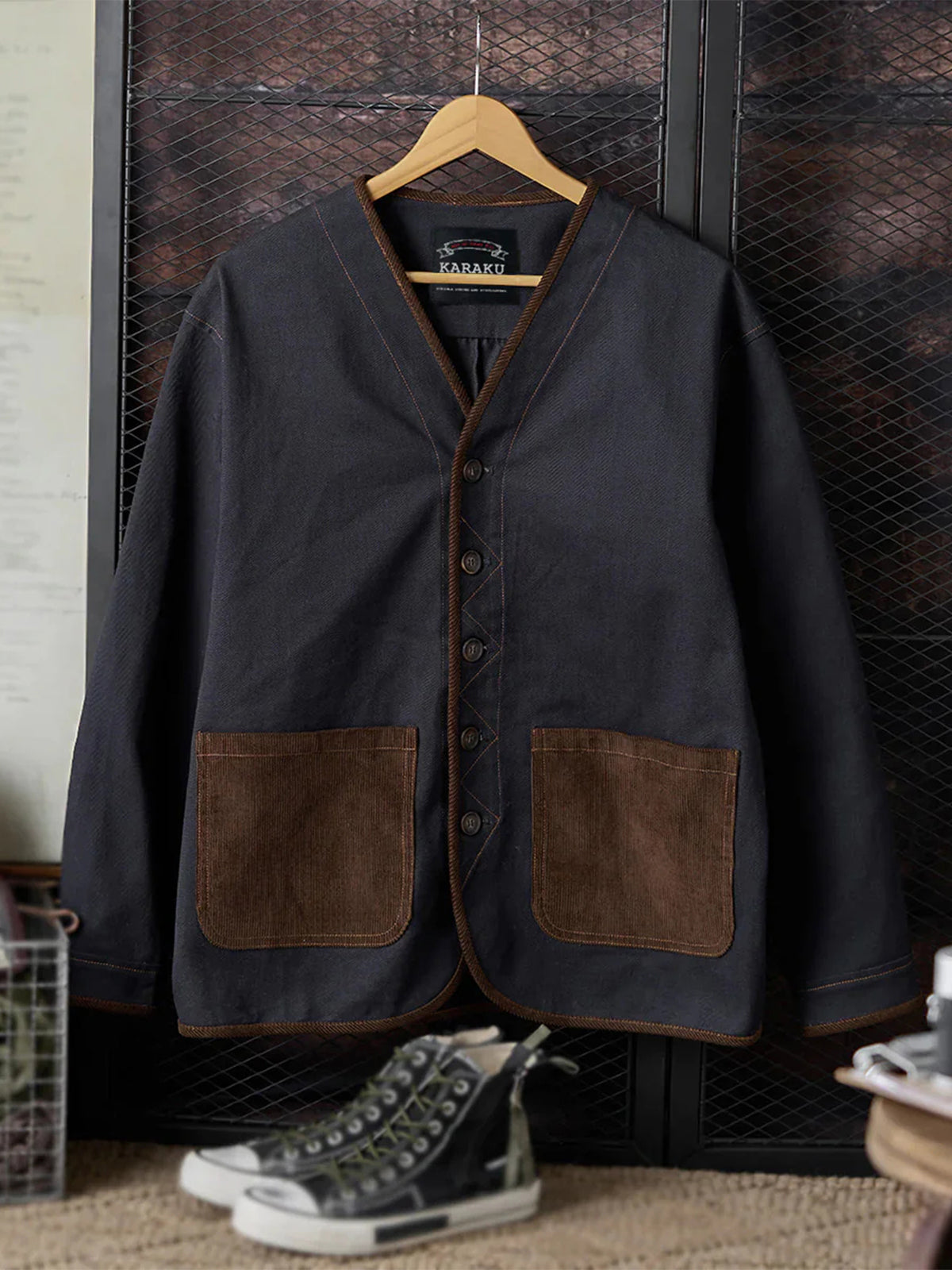 Corduroy Pocket Switchable Collarless Denim Jacket
