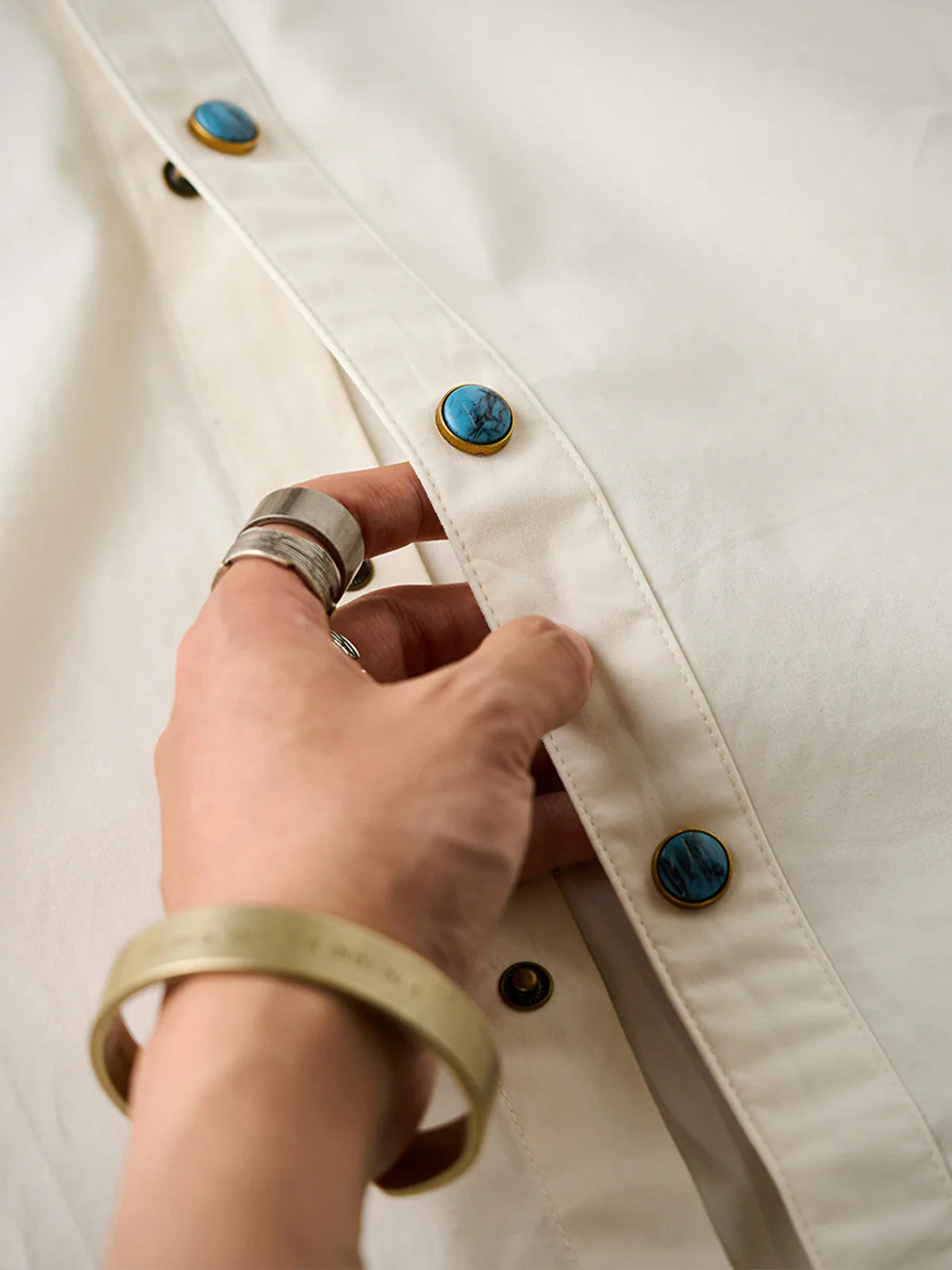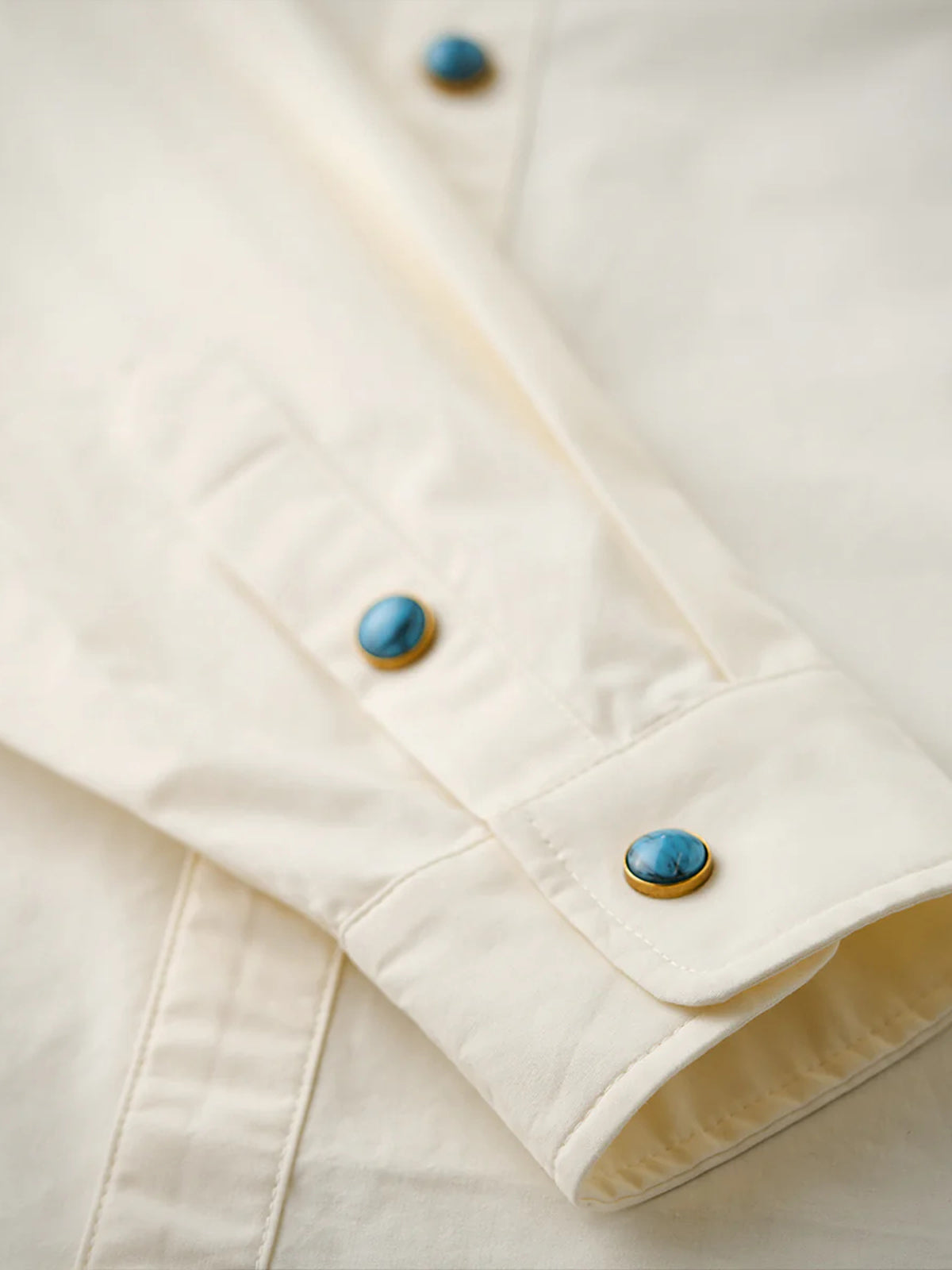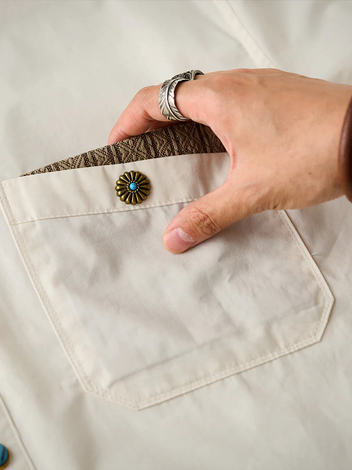 Toggle Buttons Paisley Jacquard Denim Shirt