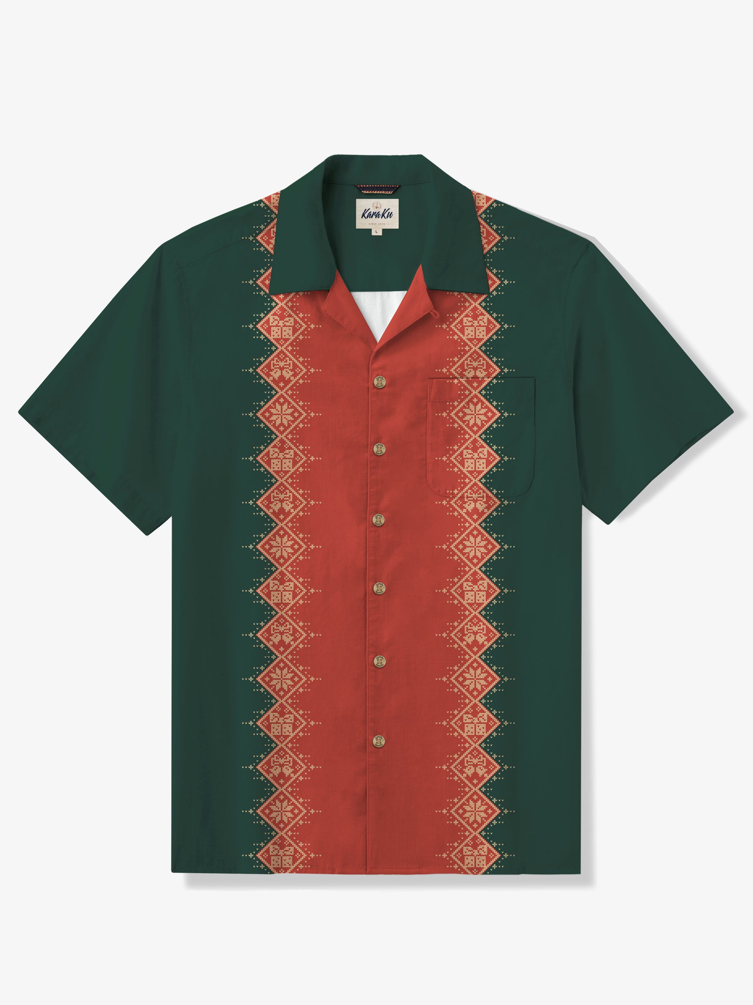 Vintage Tropical Patterns Seersucker Camp Shirt