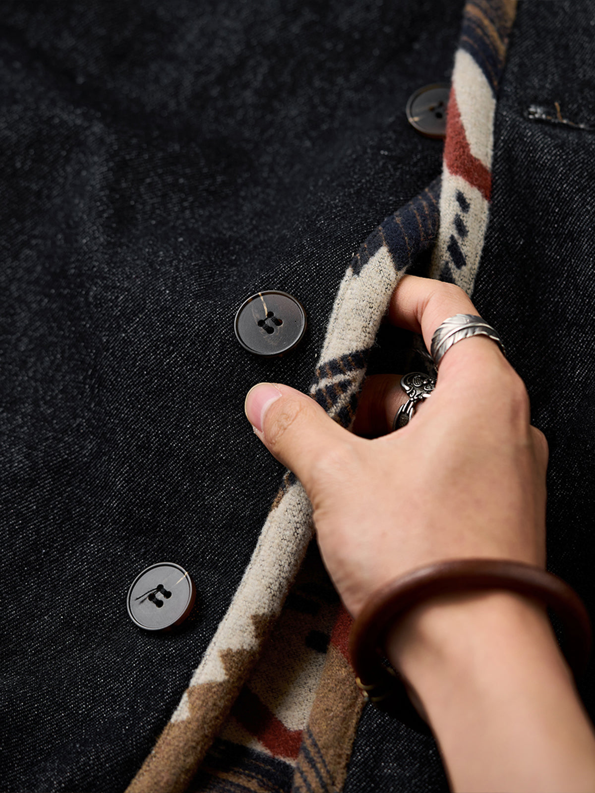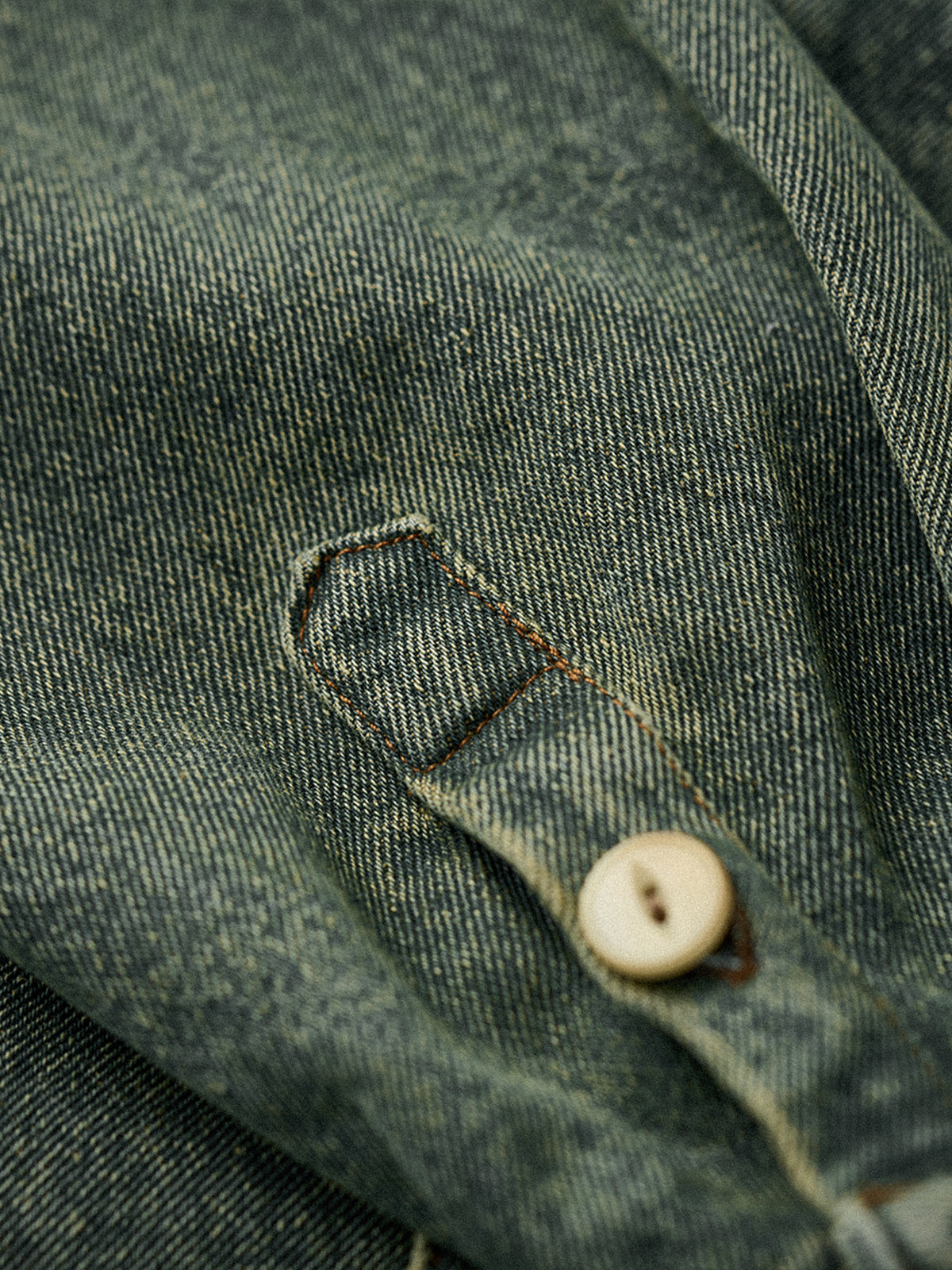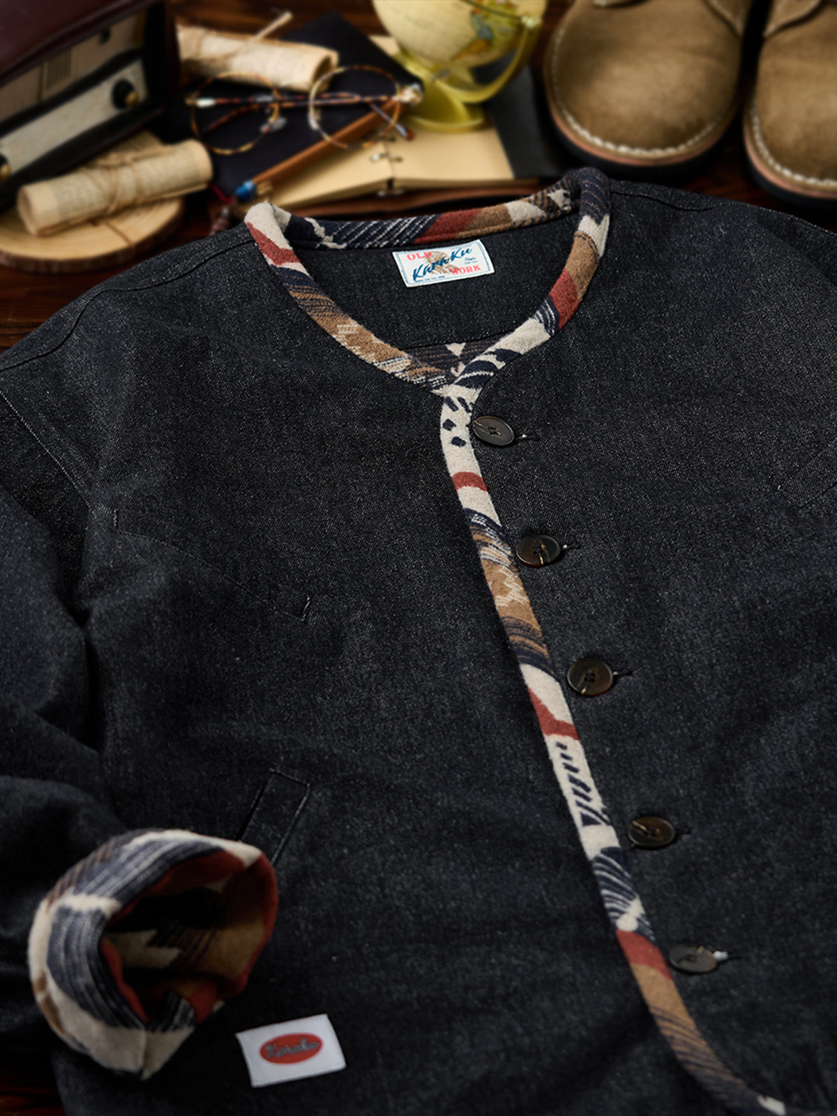 Hook-Button Washed Denim Jacket – Modified Hanten Style