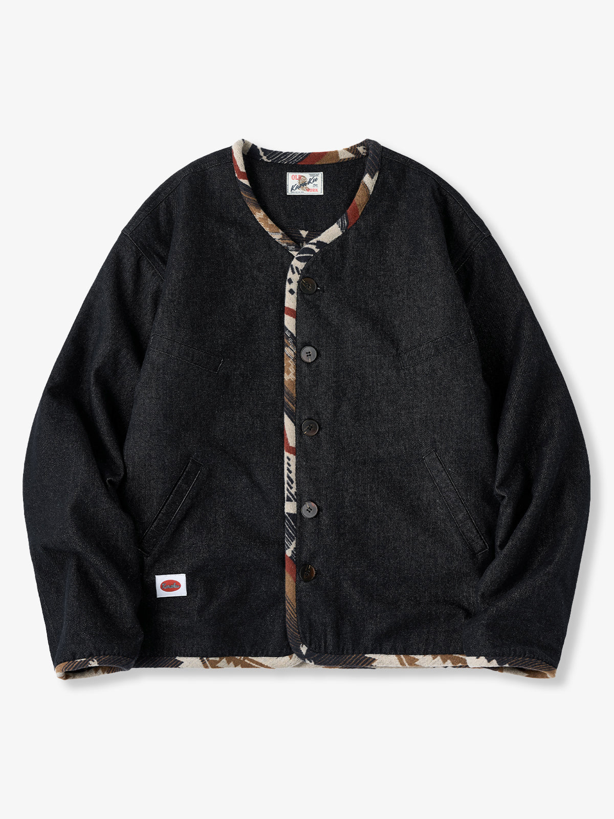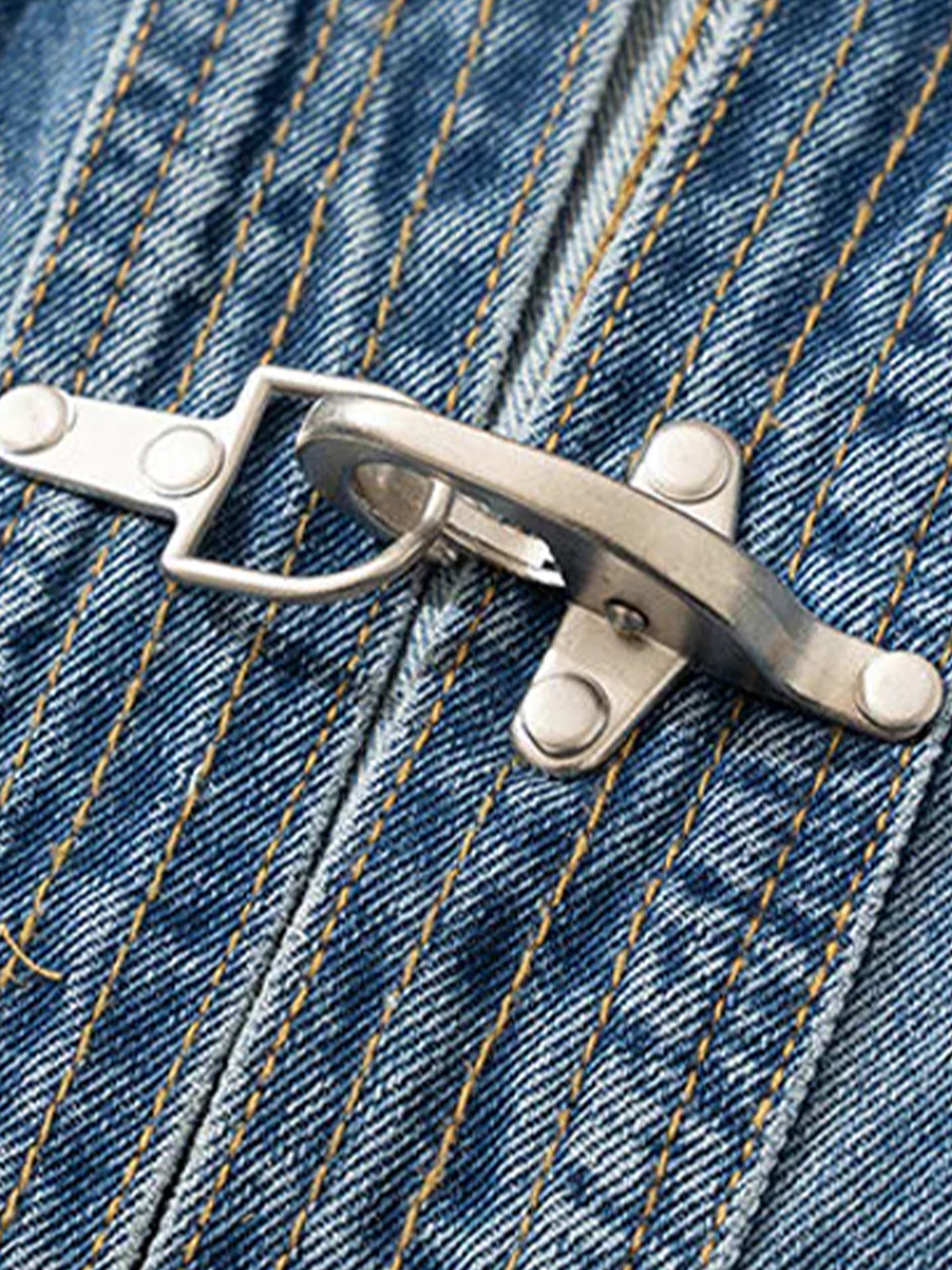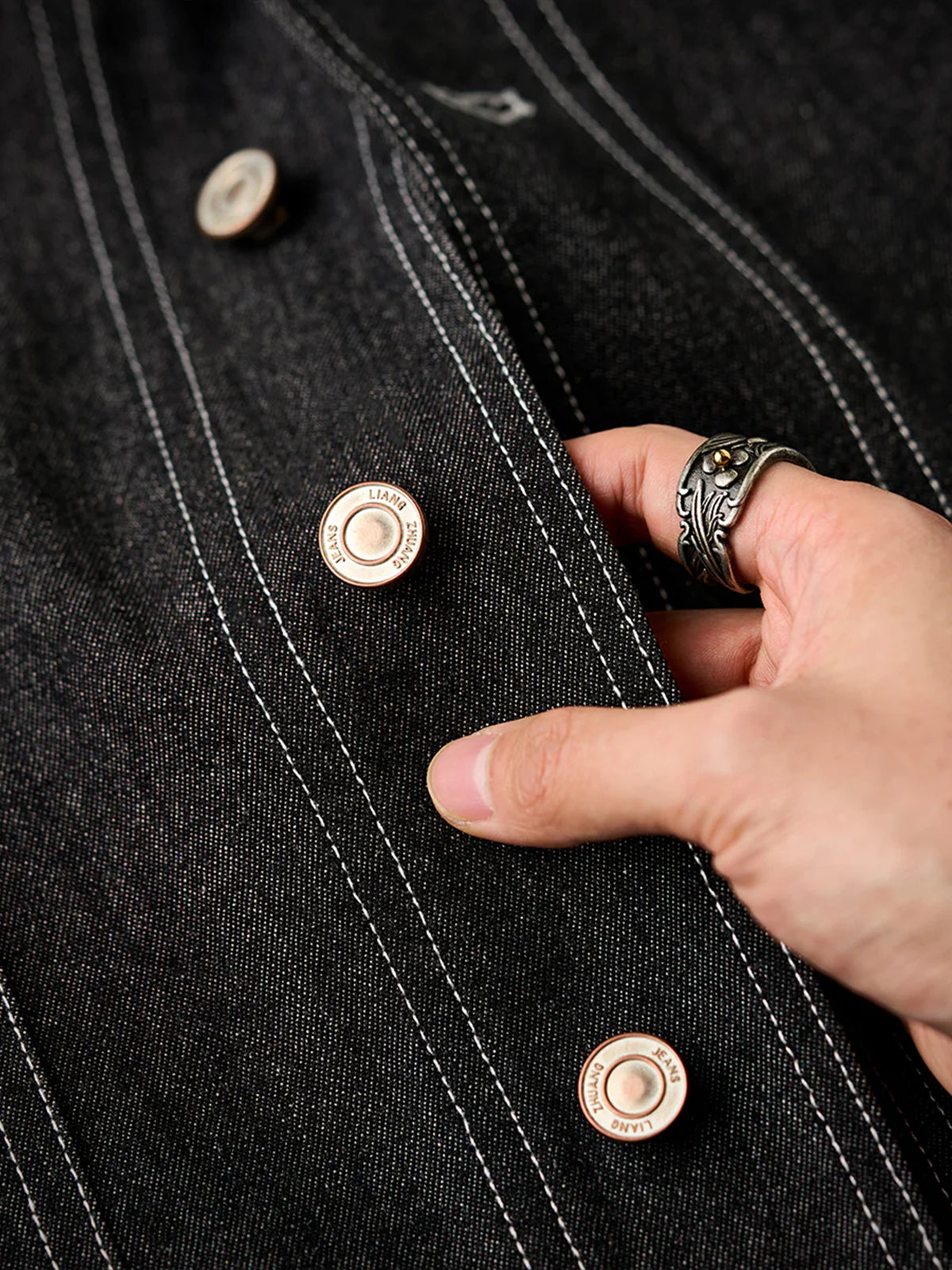 Hook-Button Washed Denim Jacket – Modified Hanten Style