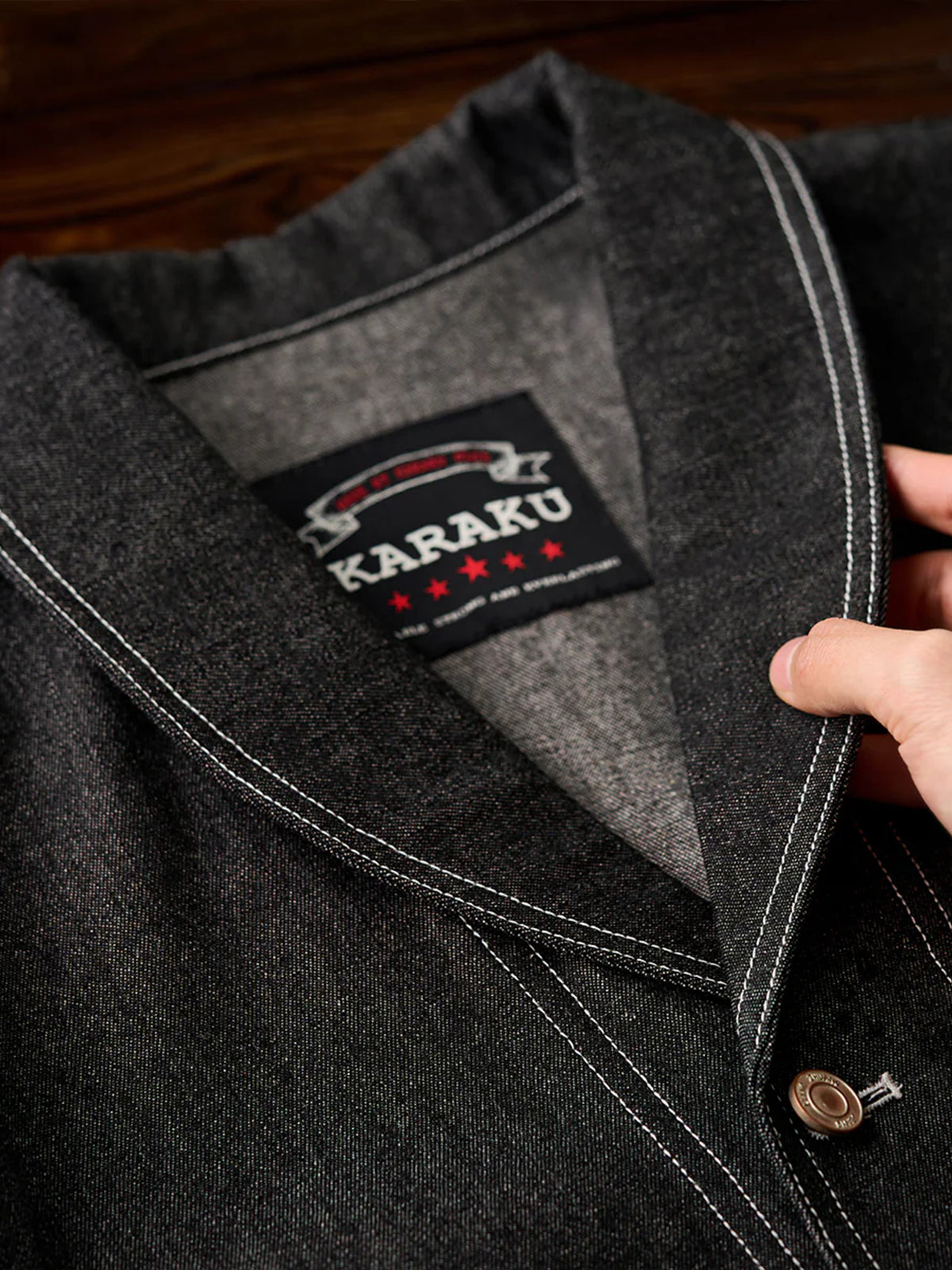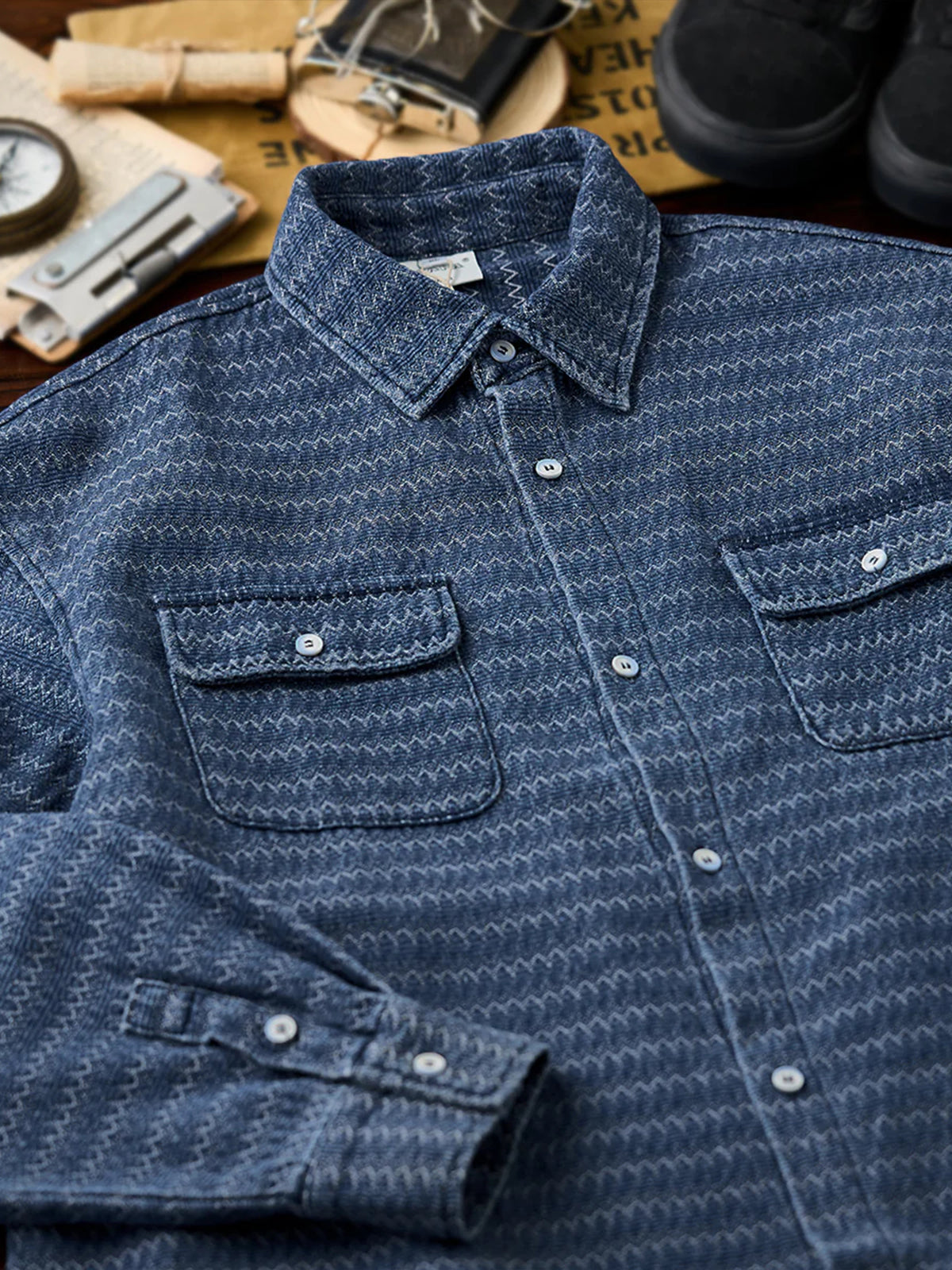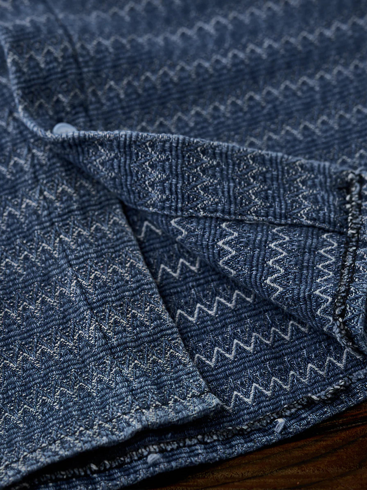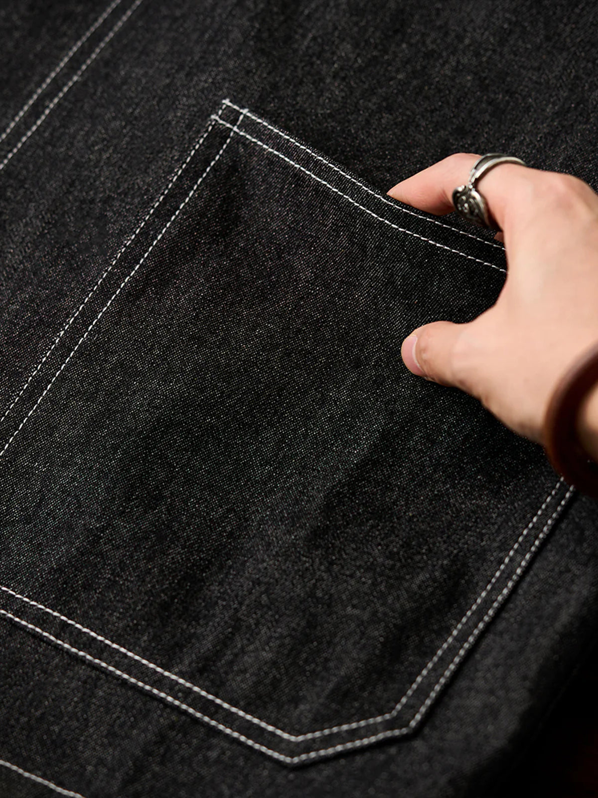 Custom Pearl-Style Buttons Yarn-Dyed Work Shirt with “Karaku” Embroidery