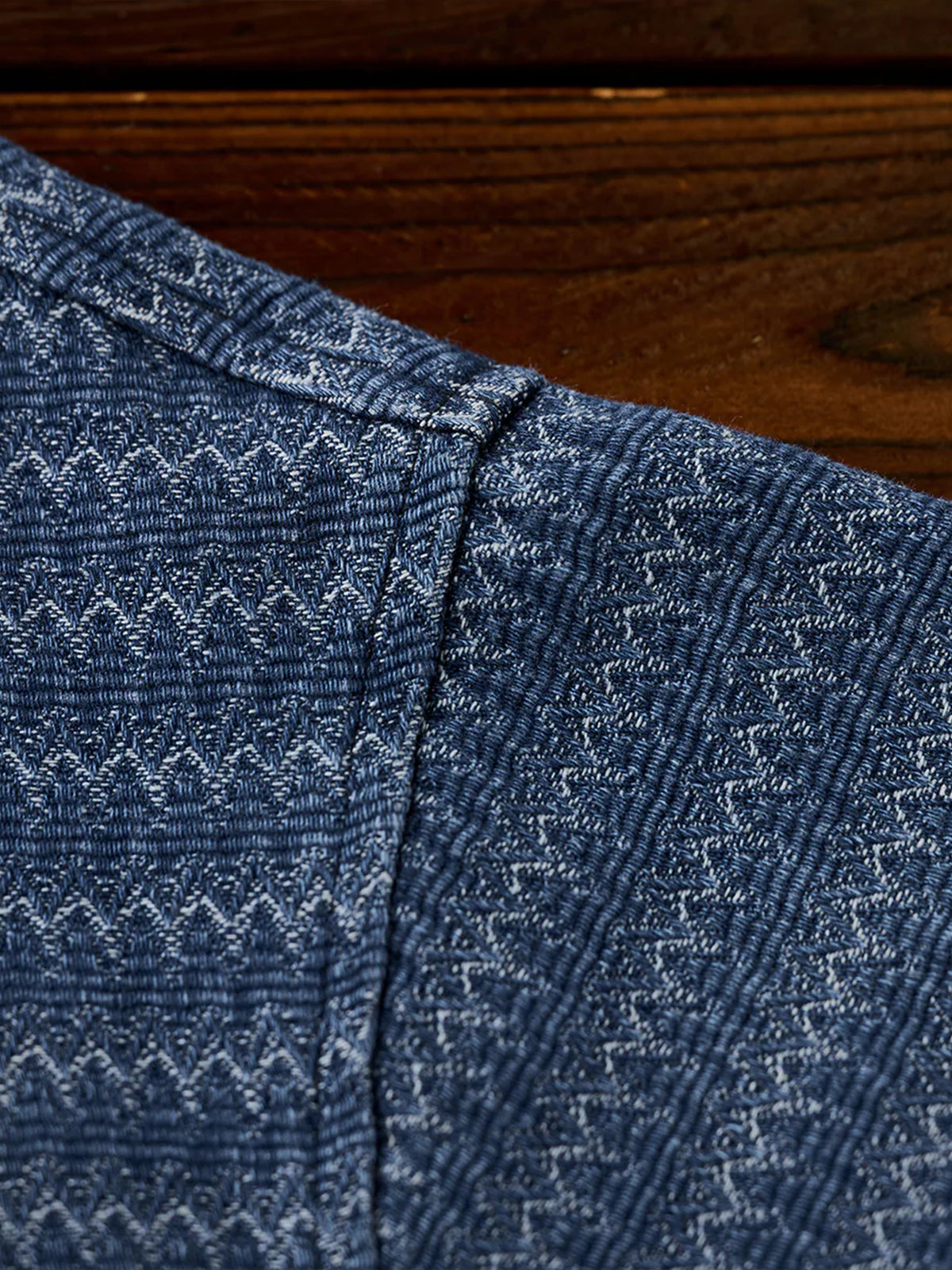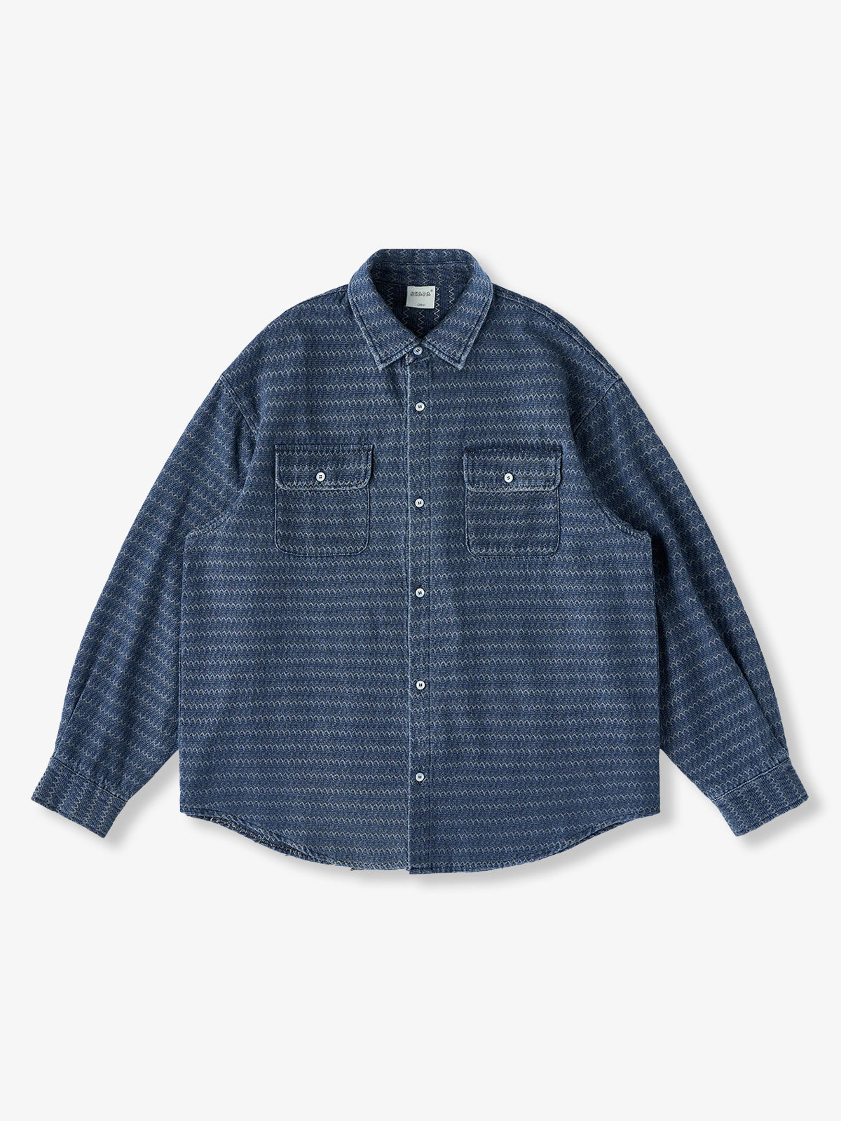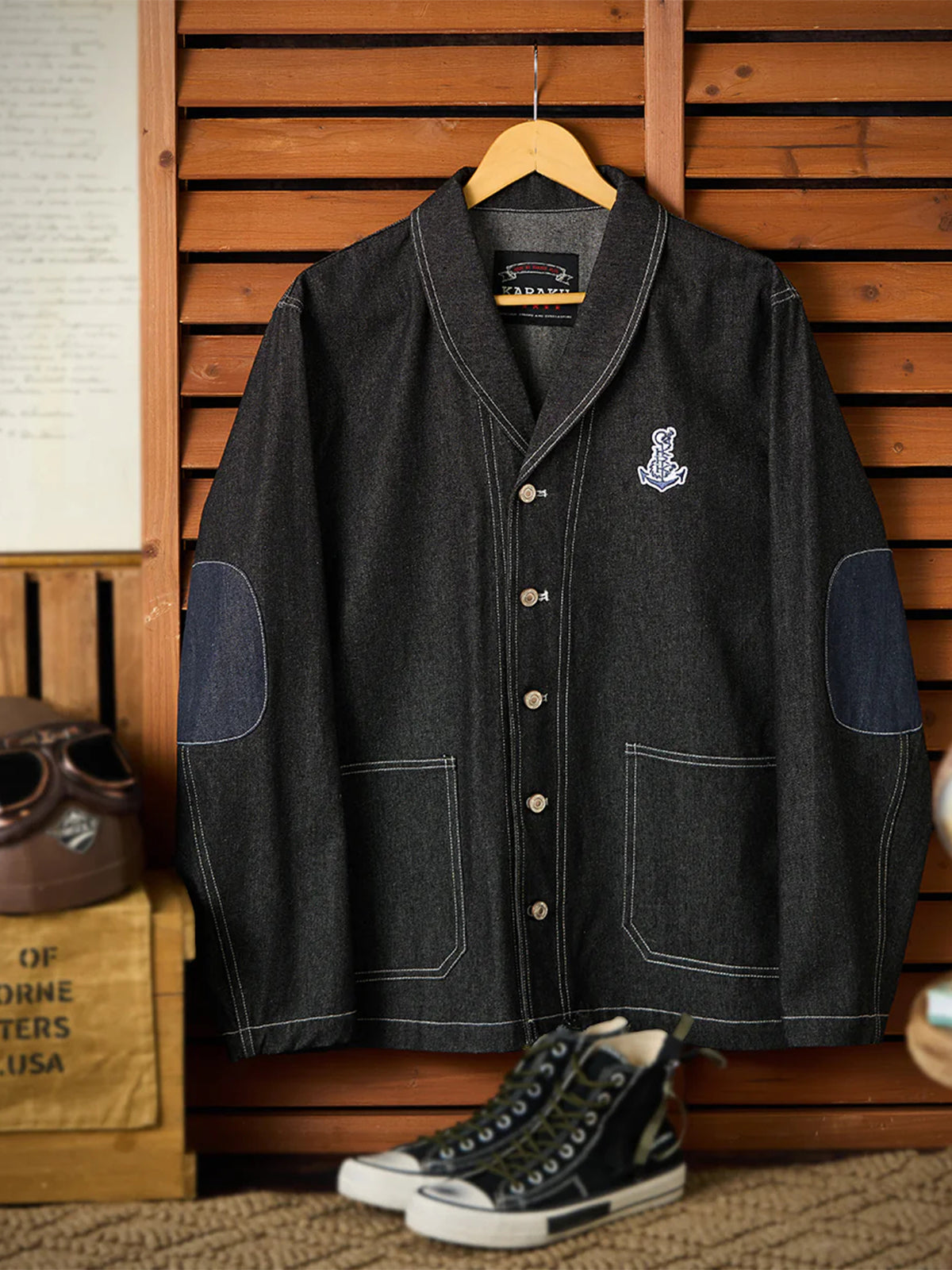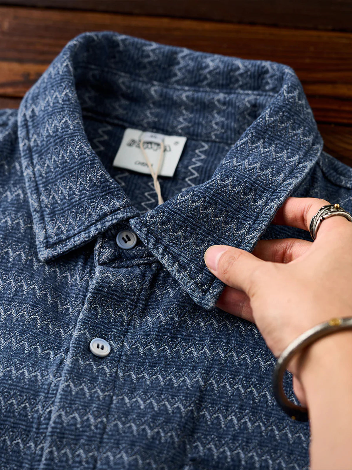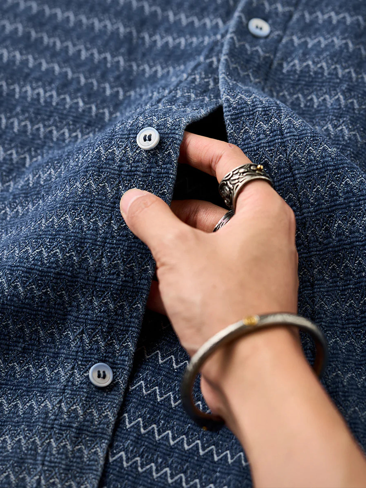 Custom Pearl-Style Buttons Yarn-Dyed Work Shirt with “Karaku” Embroidery