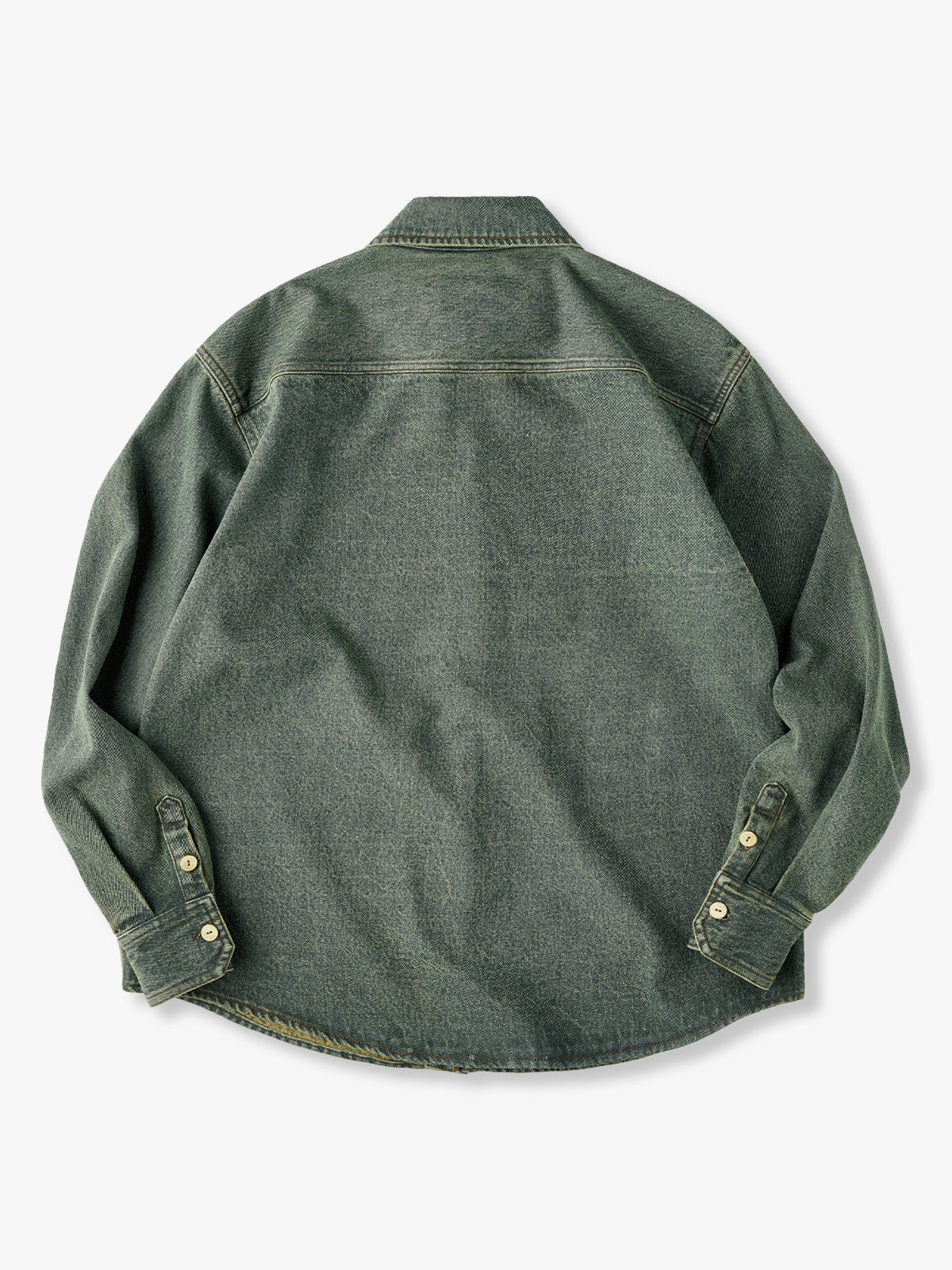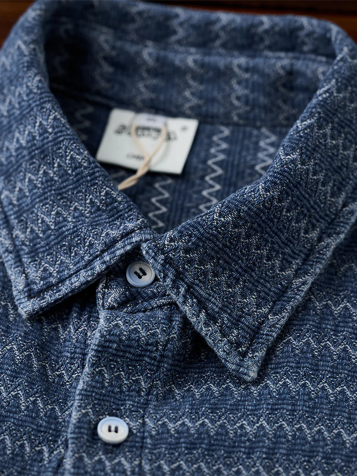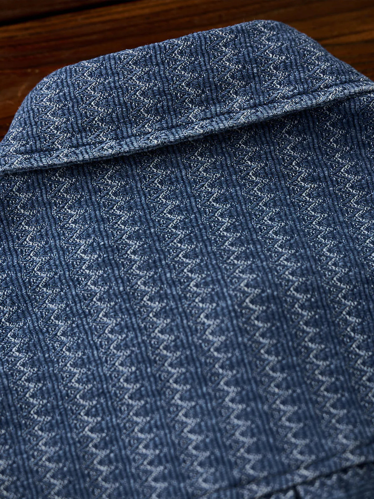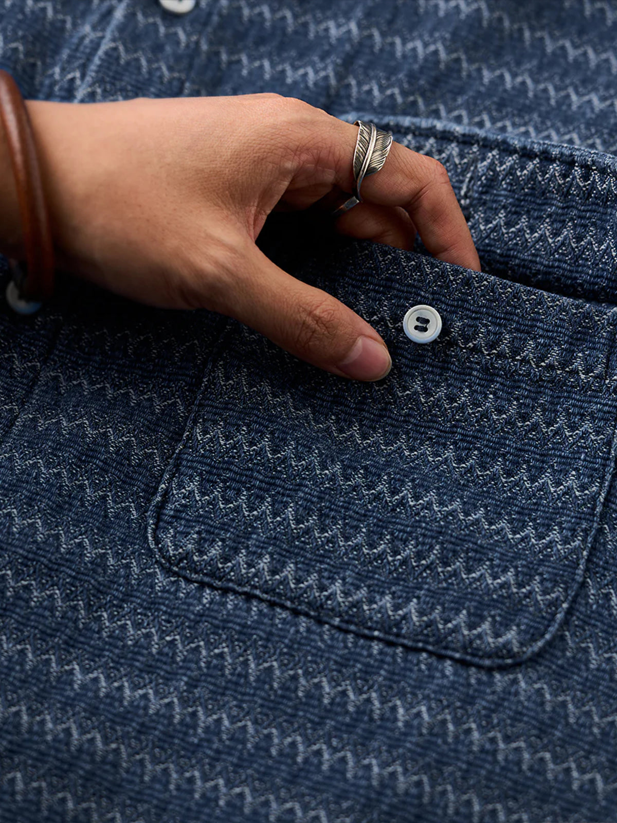 Custom Pearl-Style Buttons Yarn-Dyed Work Shirt with “Karaku” Embroidery