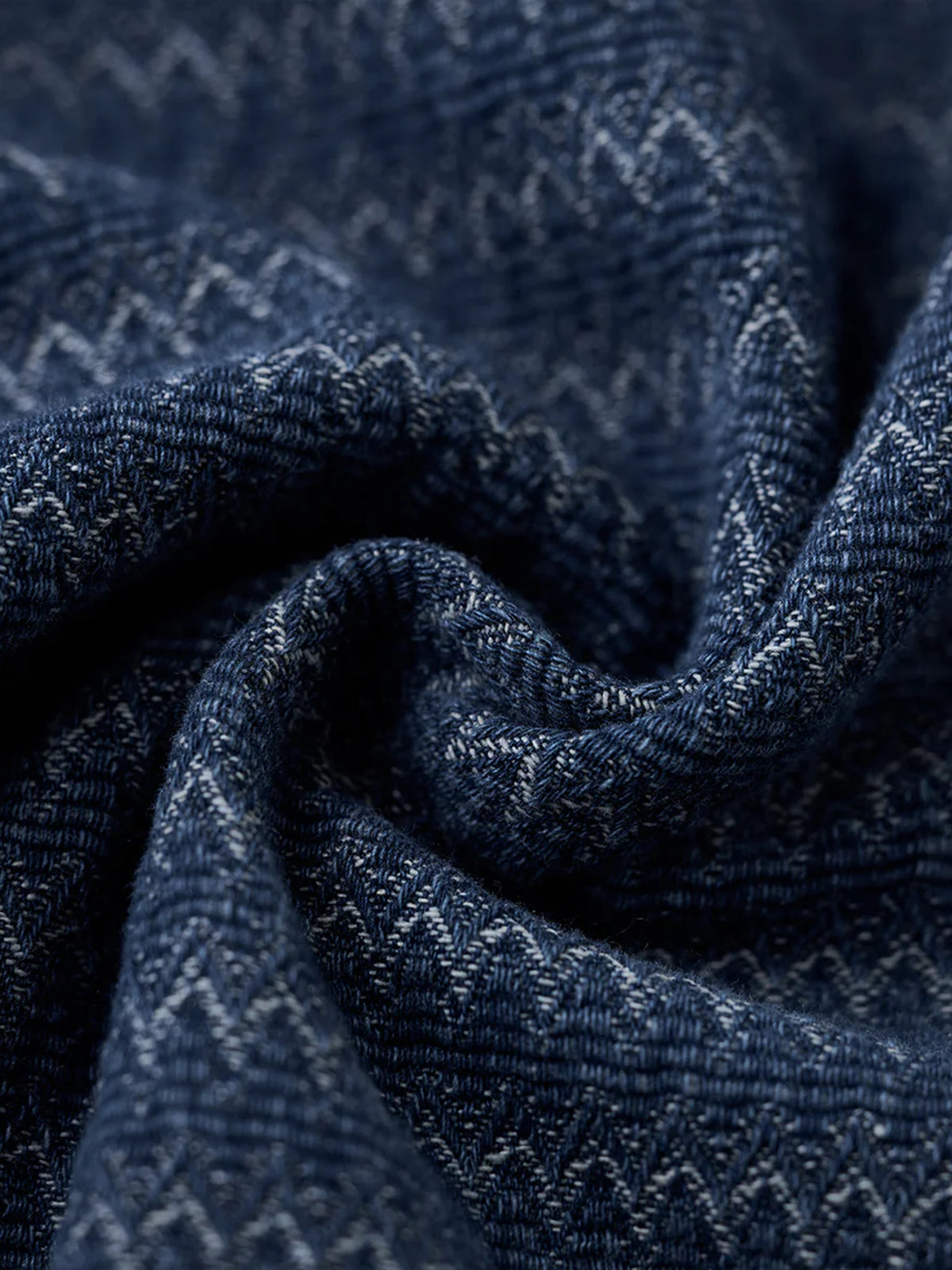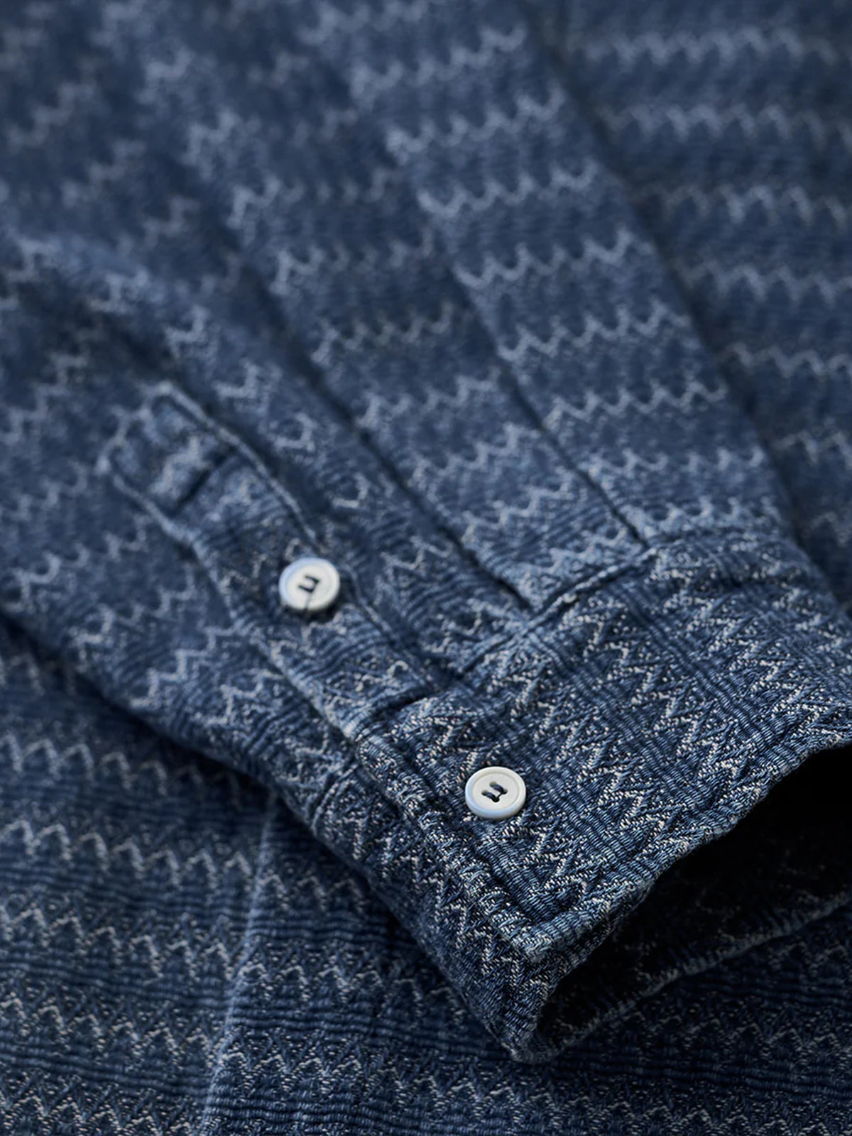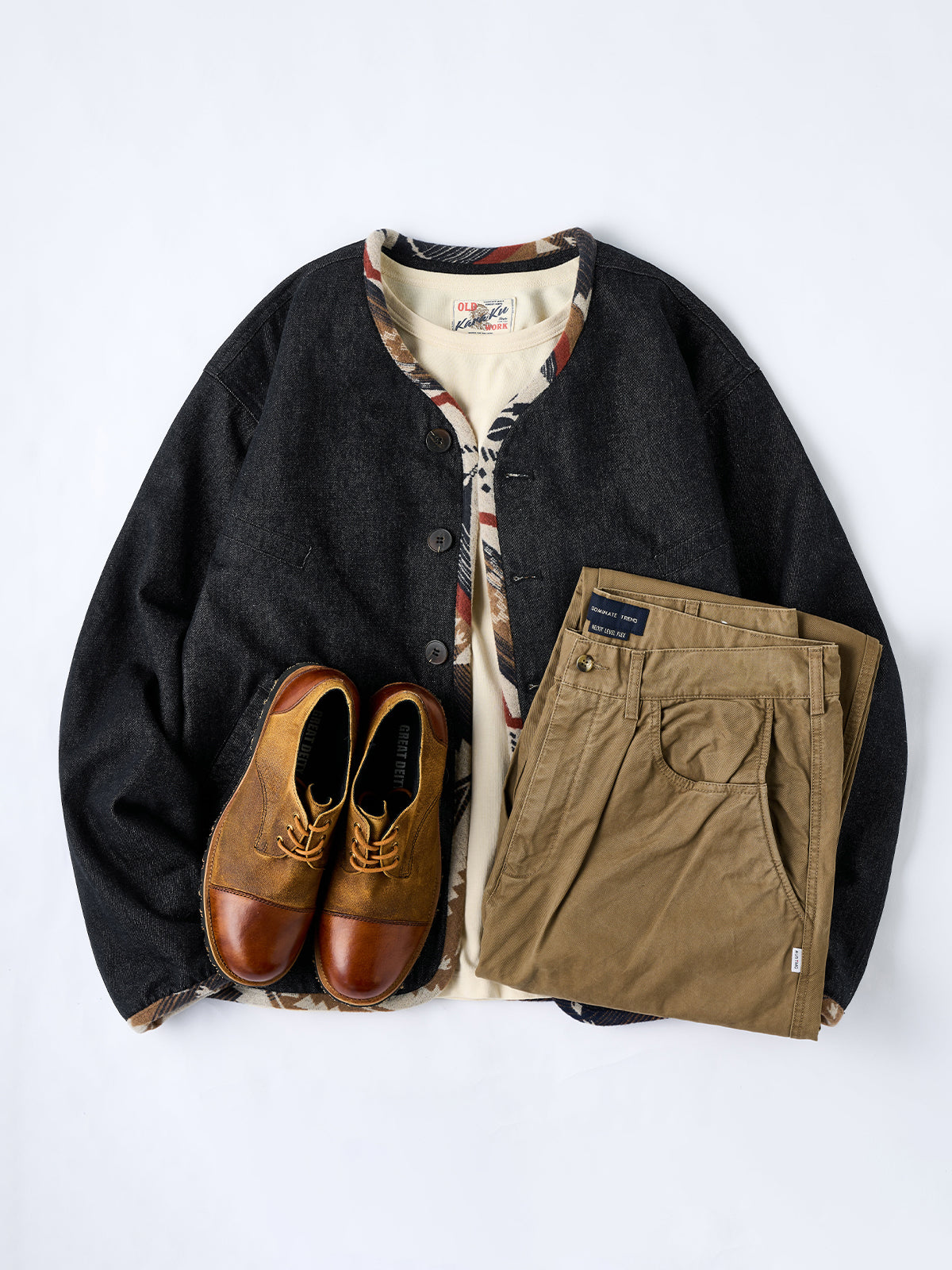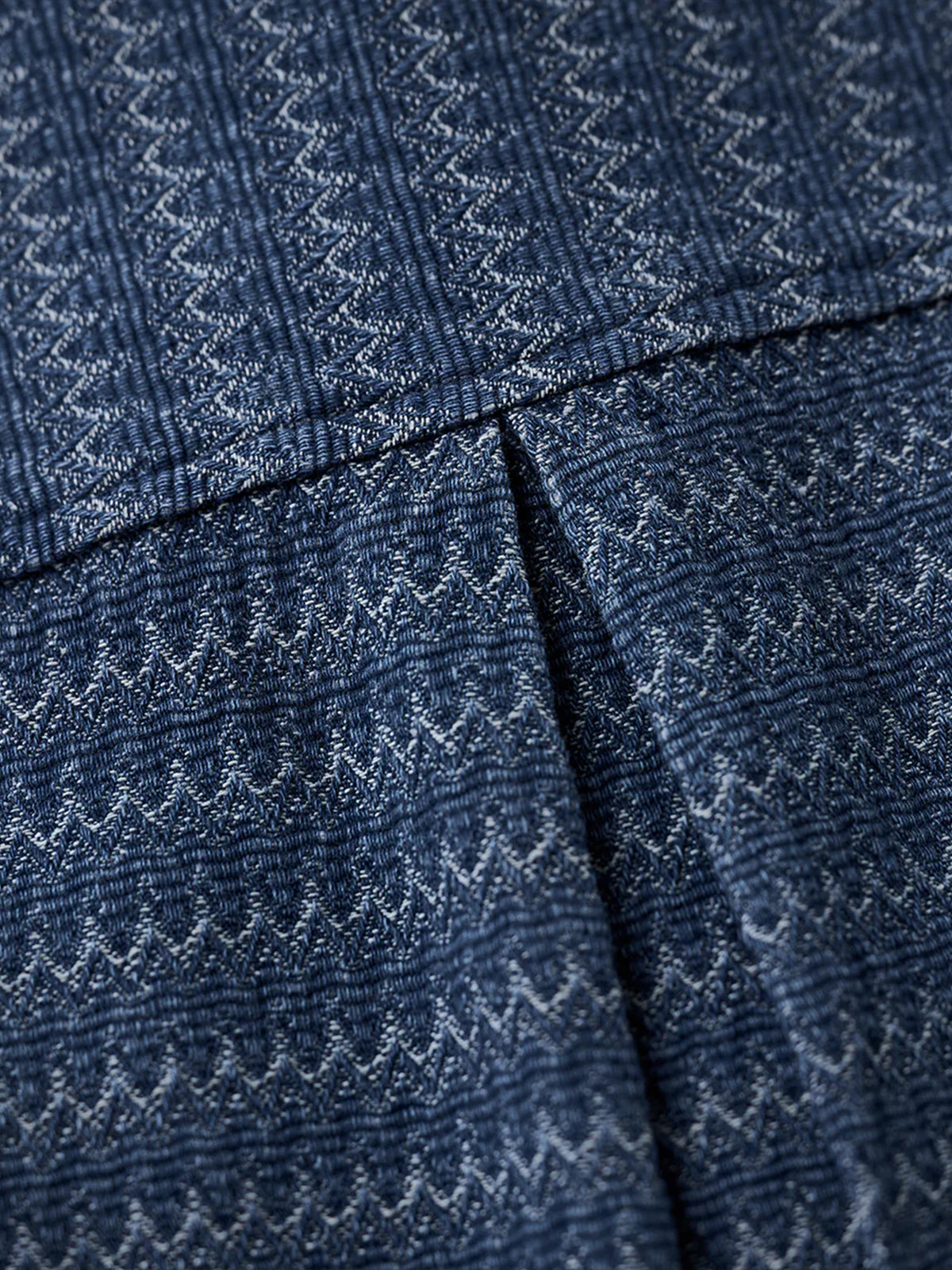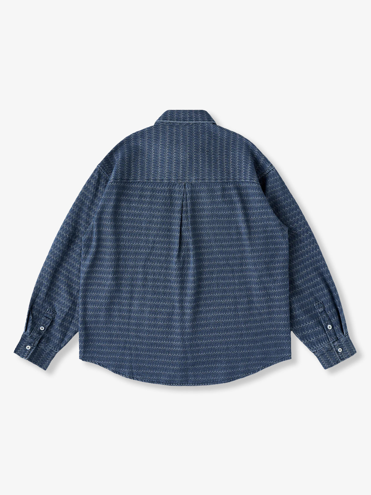 Custom Pearl-Style Buttons Yarn-Dyed Work Shirt with “Karaku” Embroidery