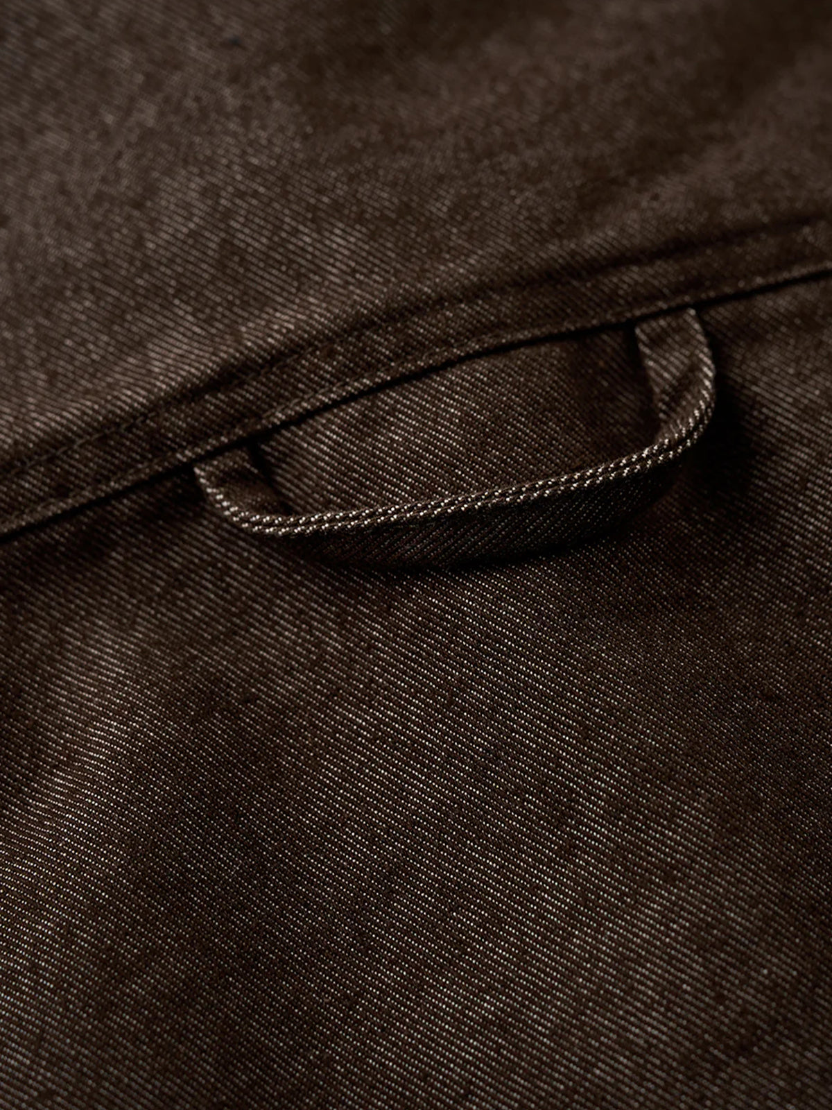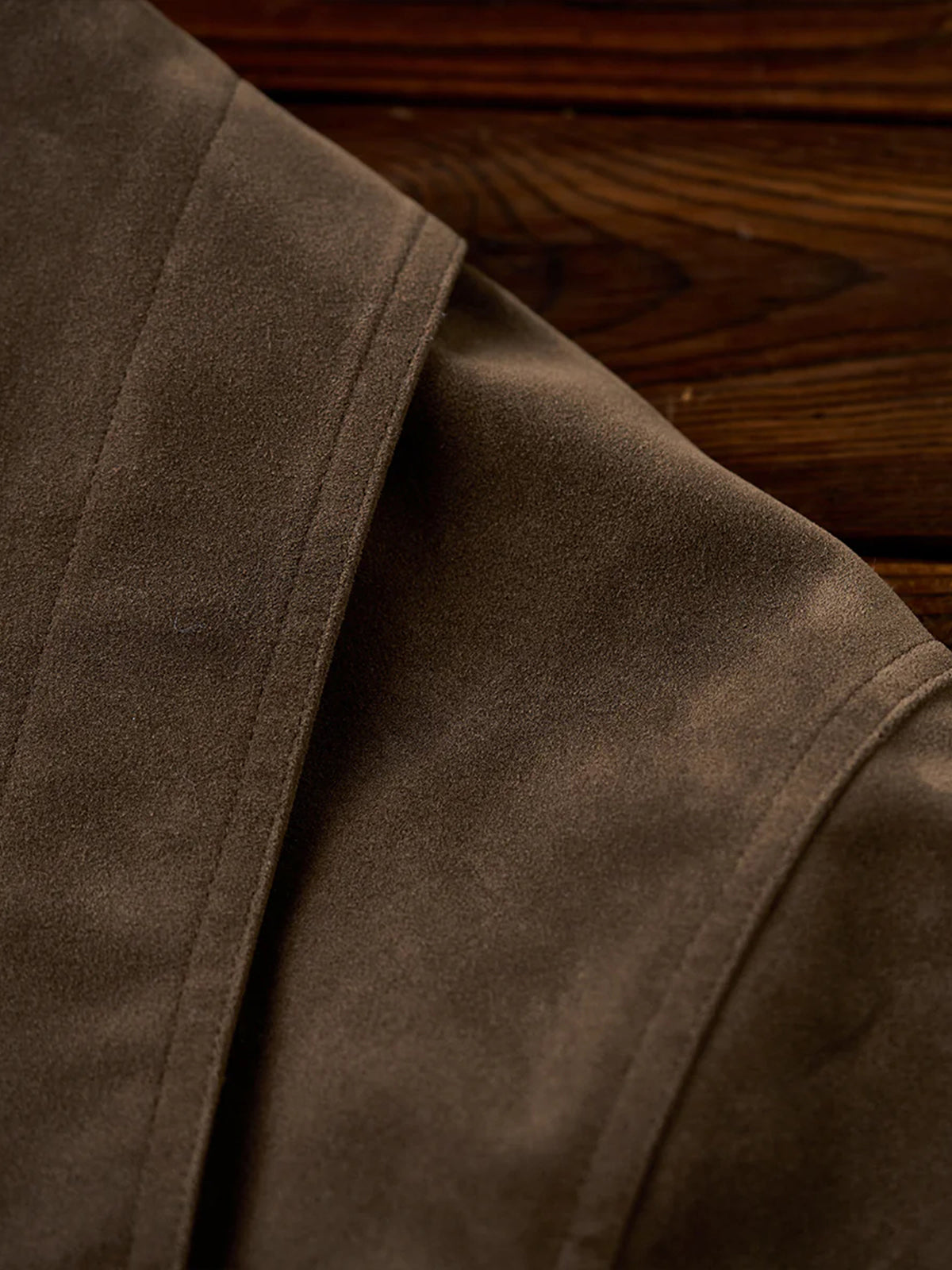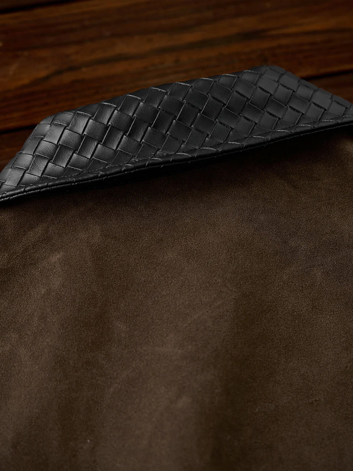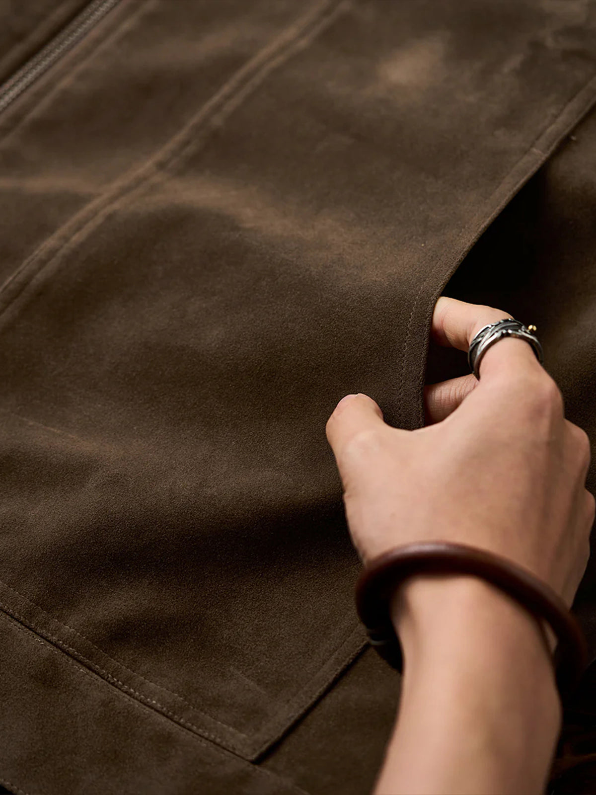 [Pre-Order] Woven Leather Collar Suede Jacket with Decorative Pockets
