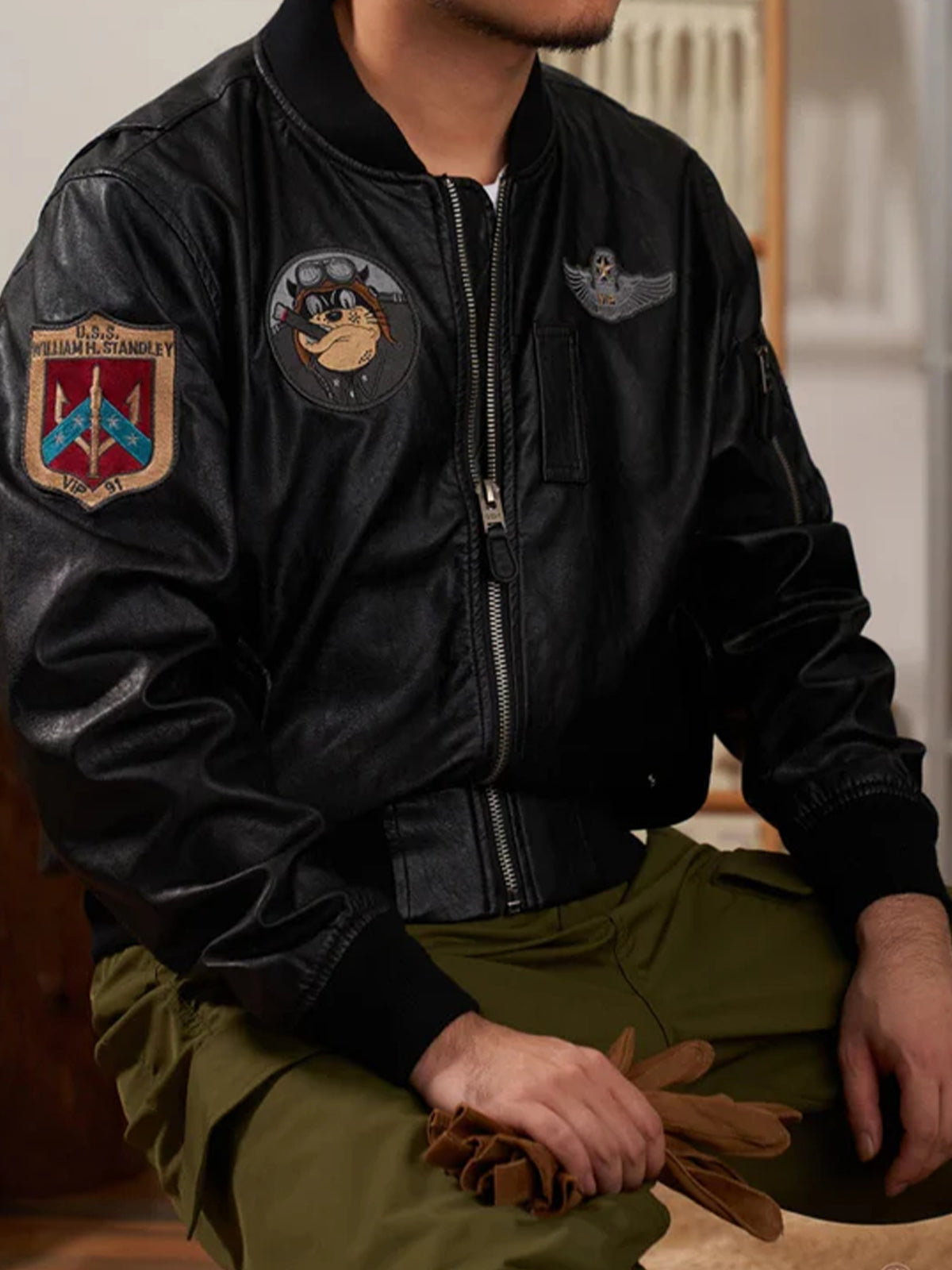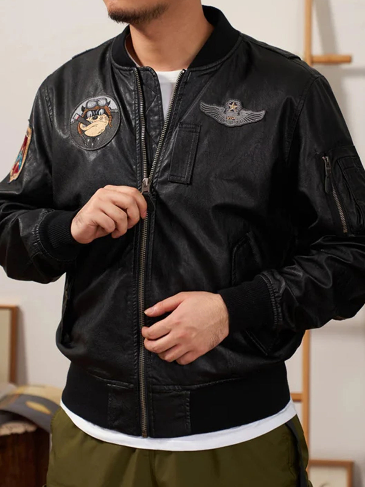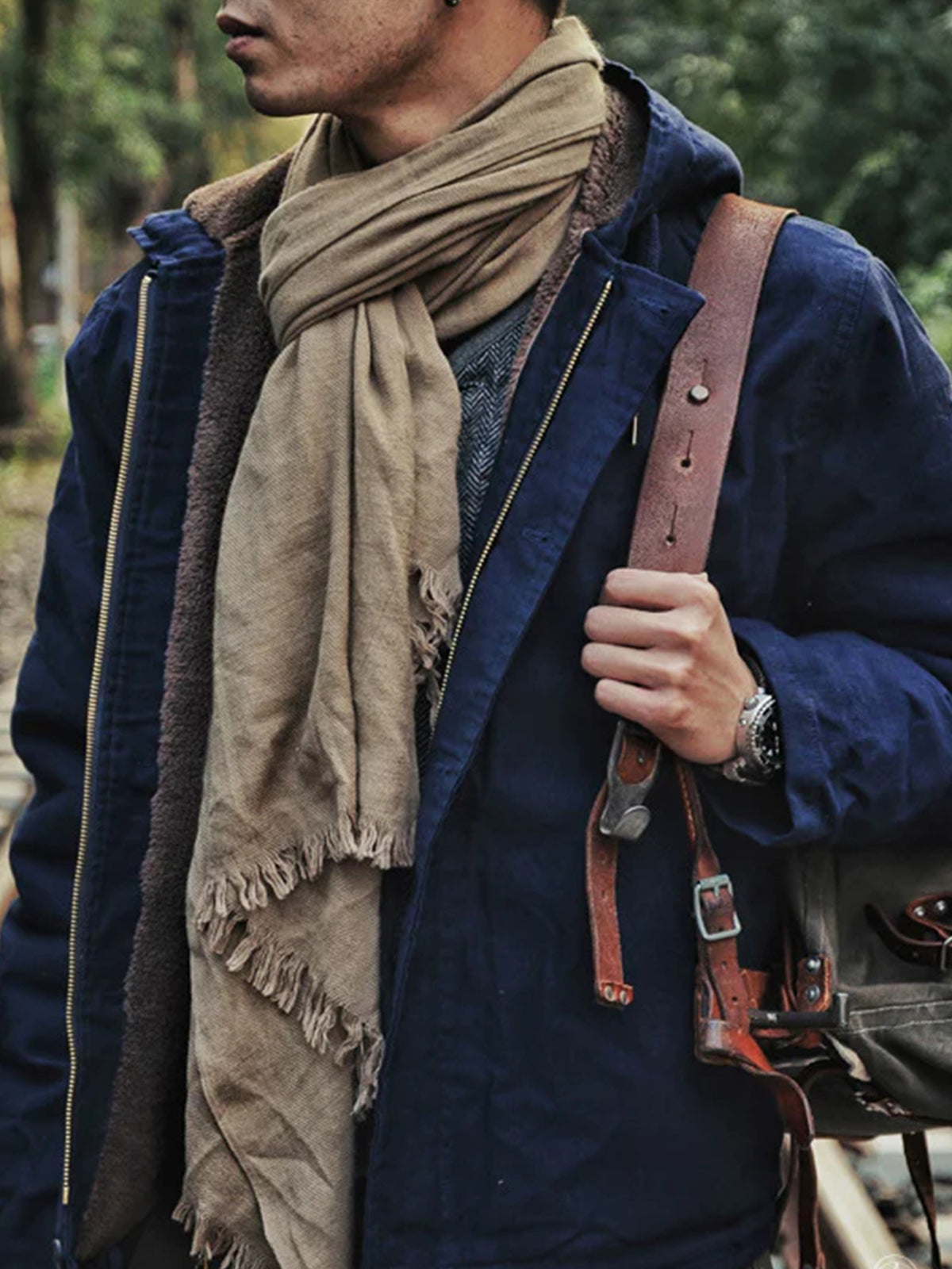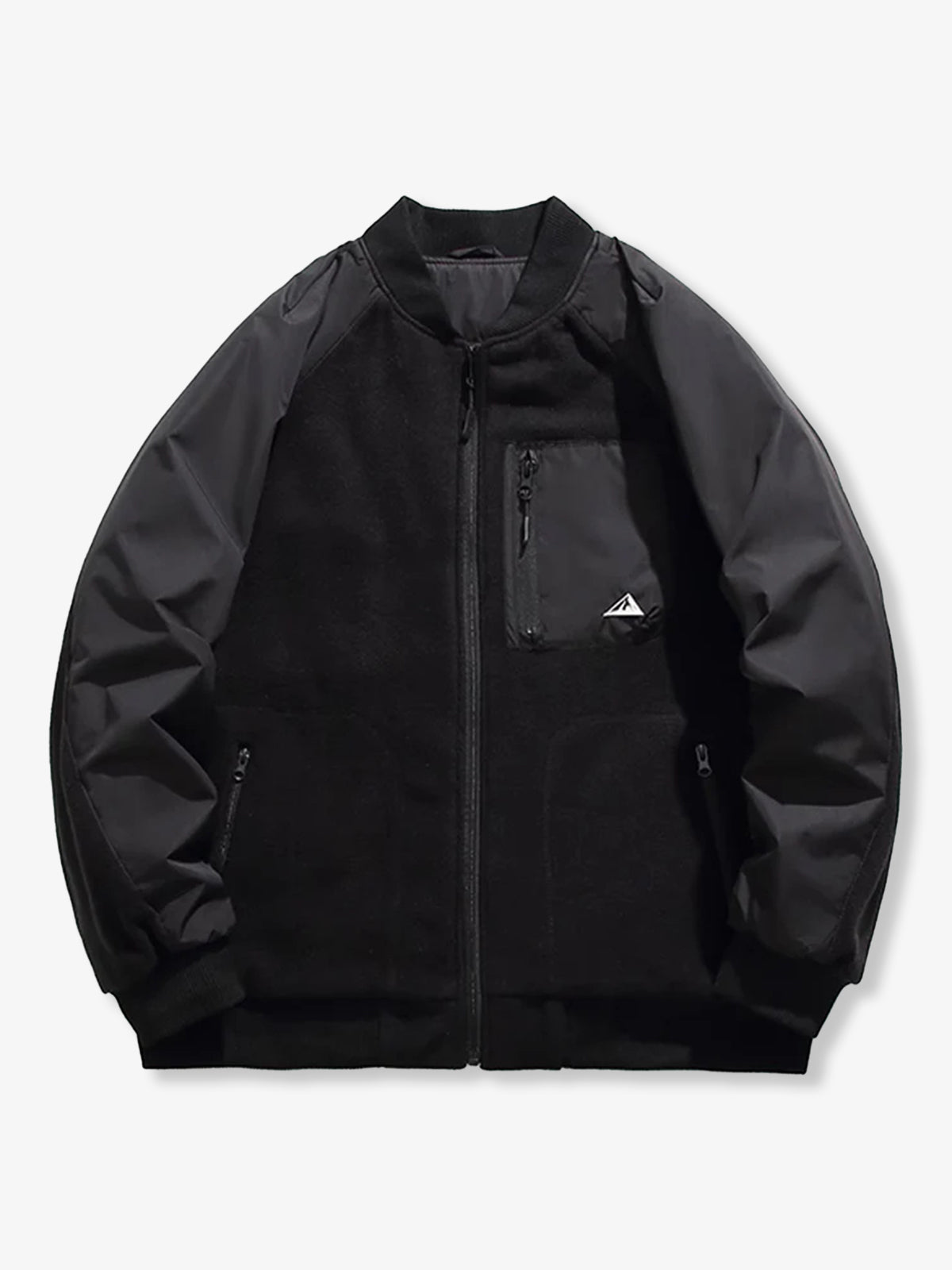 [Pre-Order] Woven Leather Collar Suede Jacket with Decorative Pockets