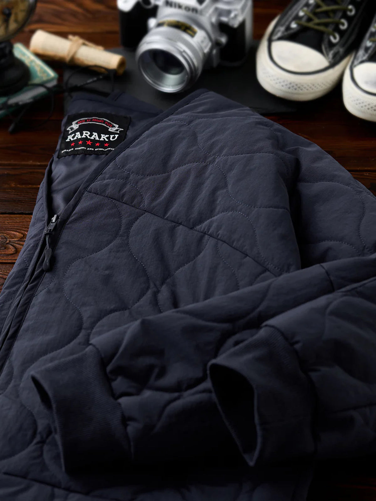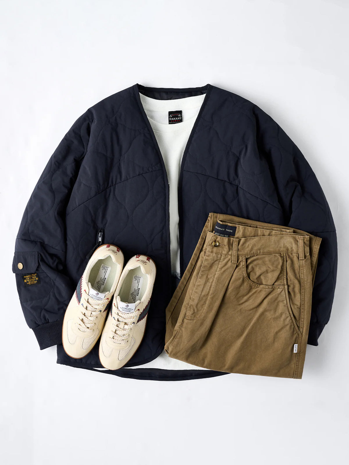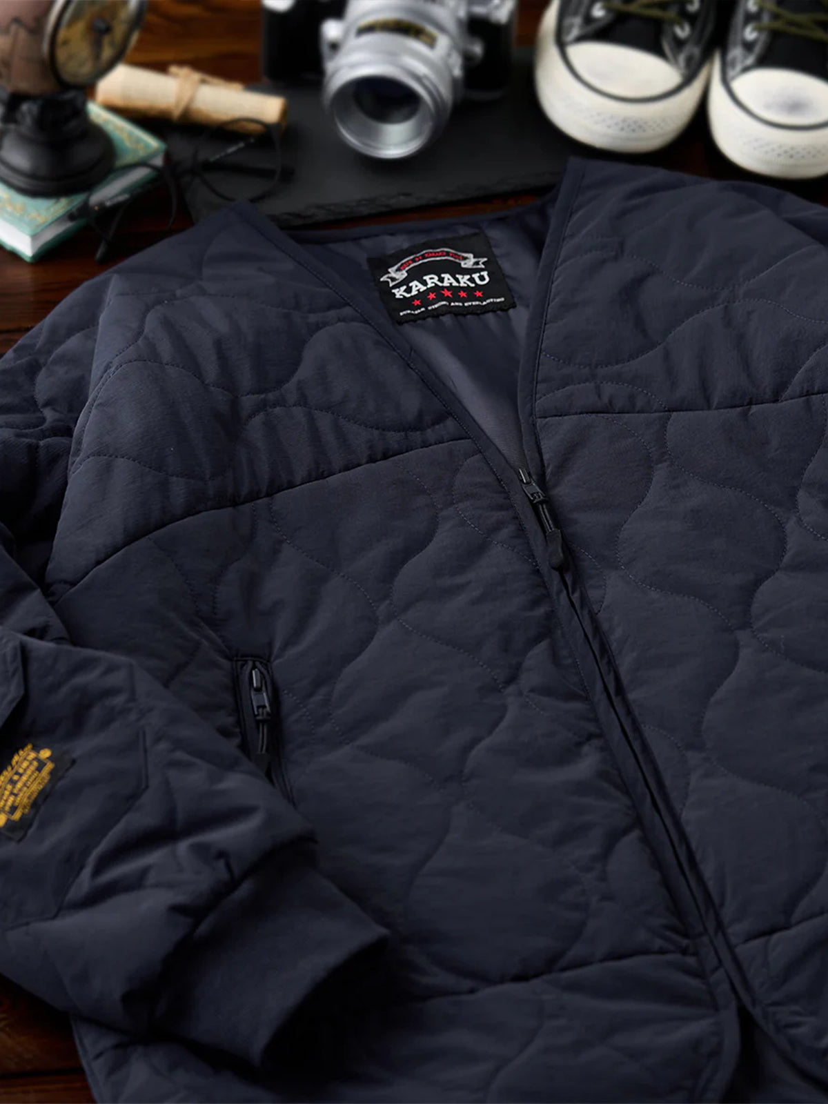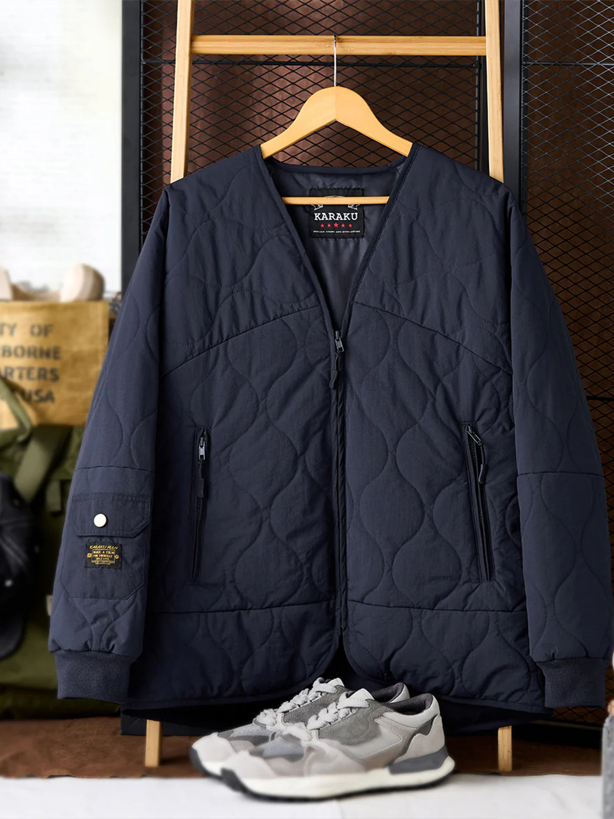 Hyotan Quilted Padded V-Neck Jacket with Sleeve Pocket