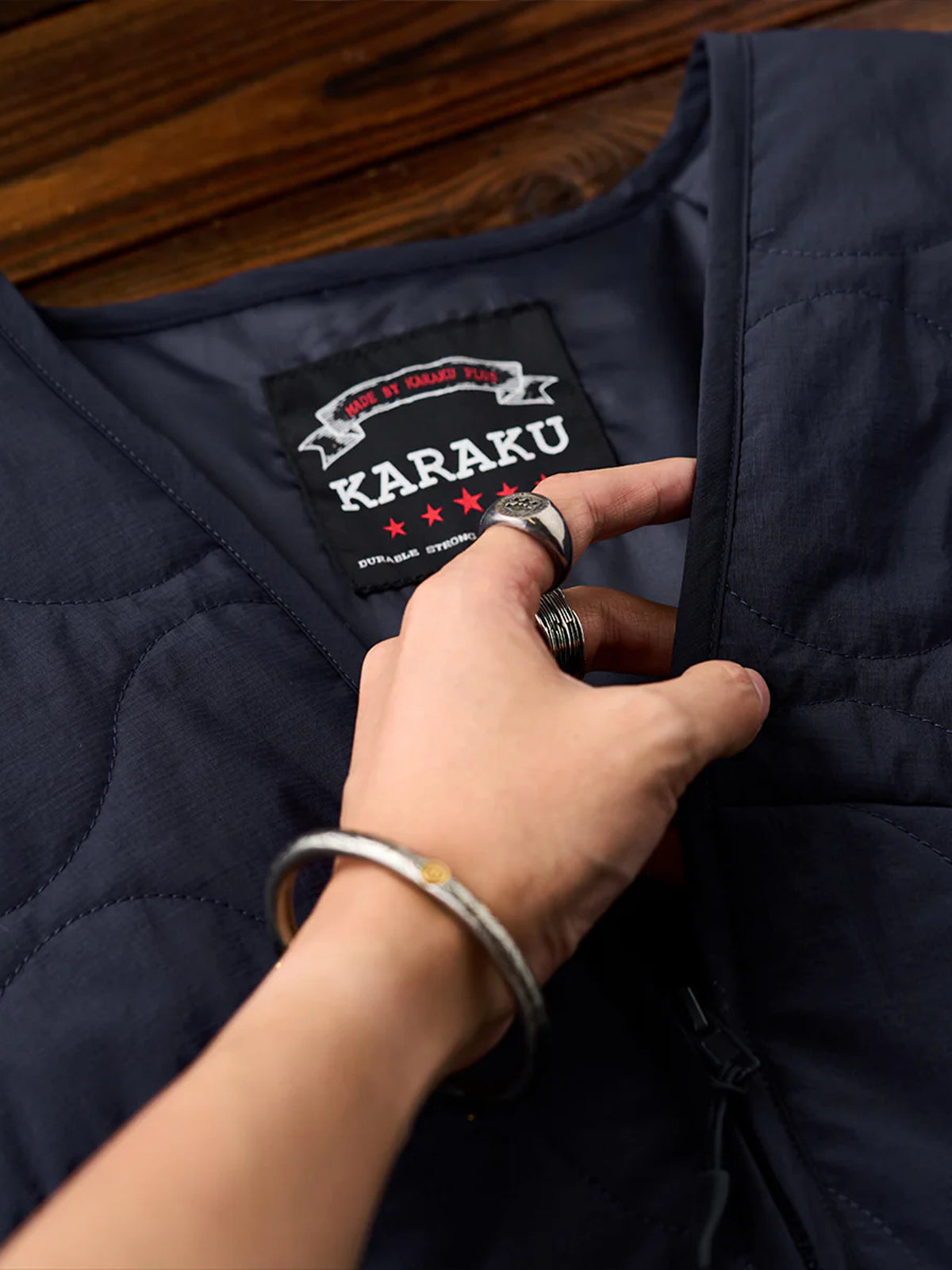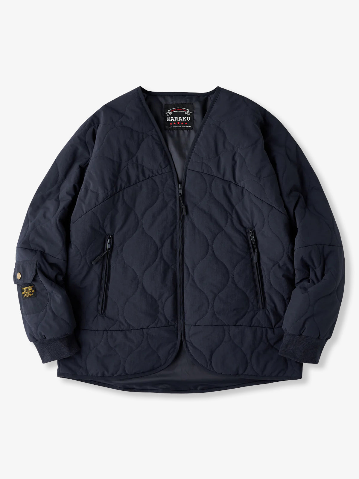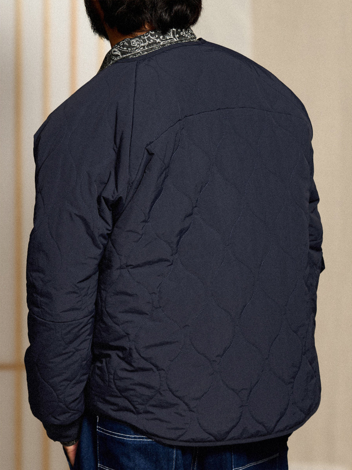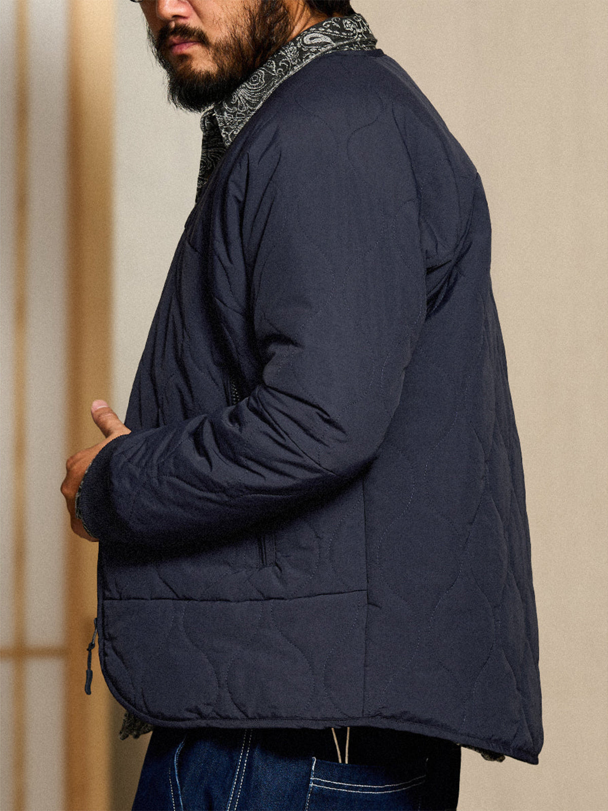 Hyotan Quilted Padded V-Neck Jacket with Sleeve Pocket