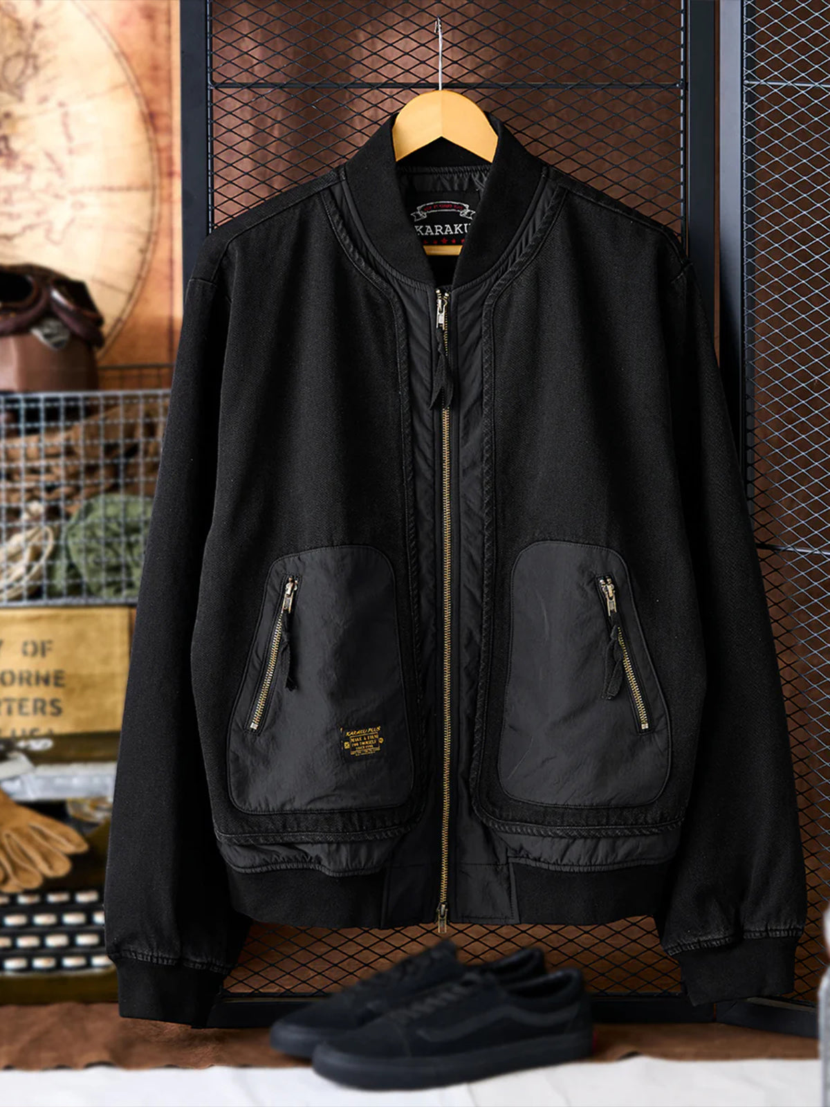 Contrast Panel Training Jacket with "KARAKU" Embroidery