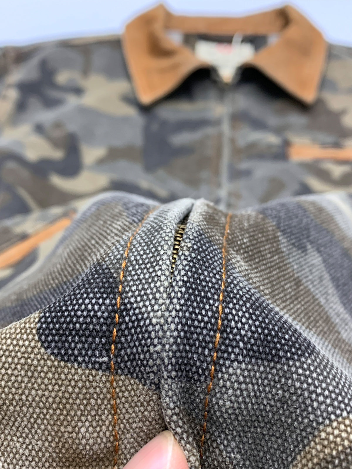 Detroit Camouflage Washed Canvas Jacket with Contrast Collar