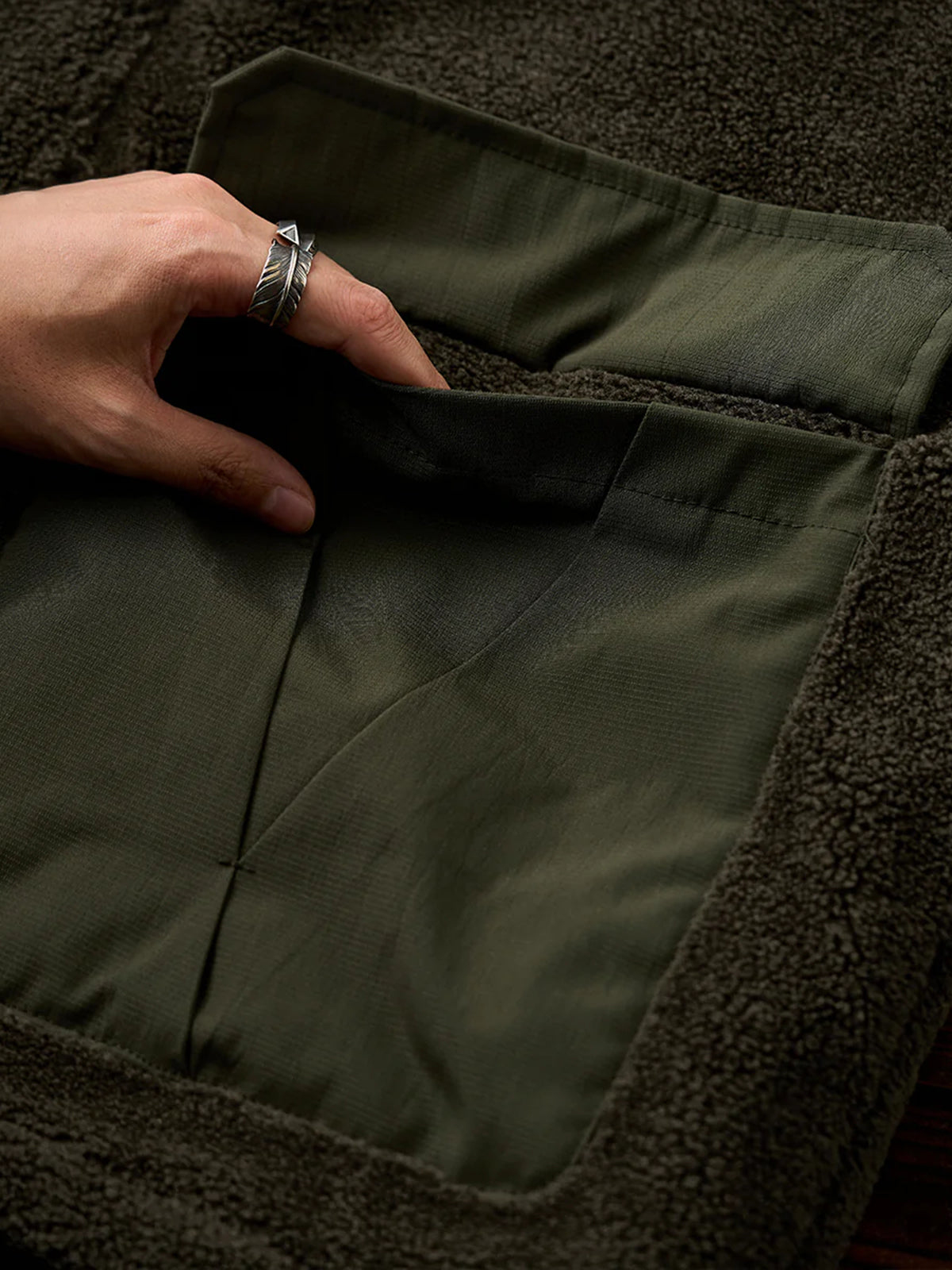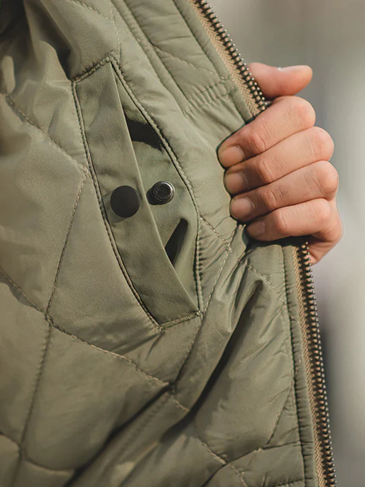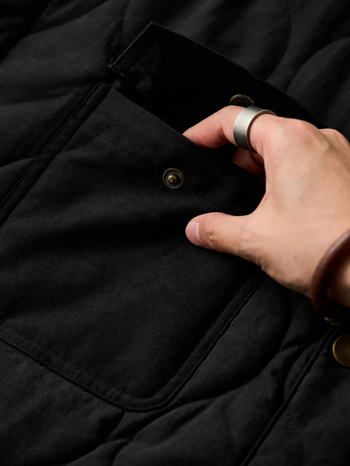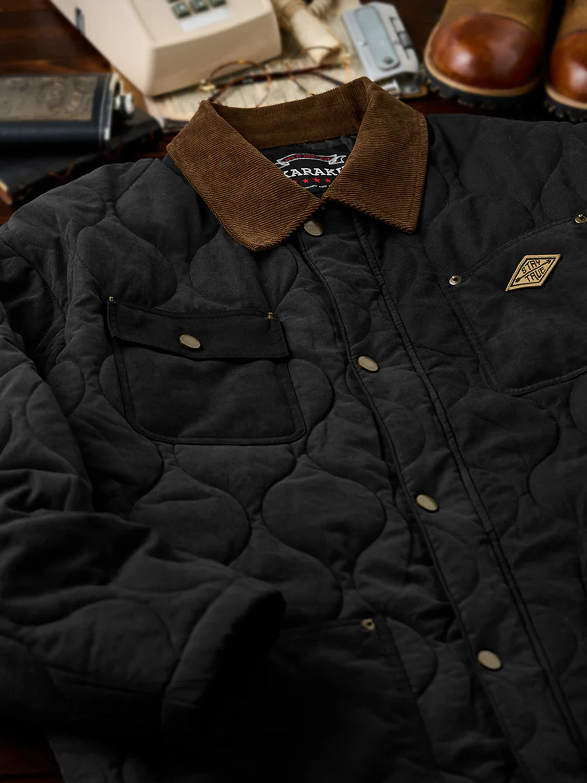 [Pre-Order] Corduroy-Collar Quilted Peach-Skin Jacket (4-Pocket Design)