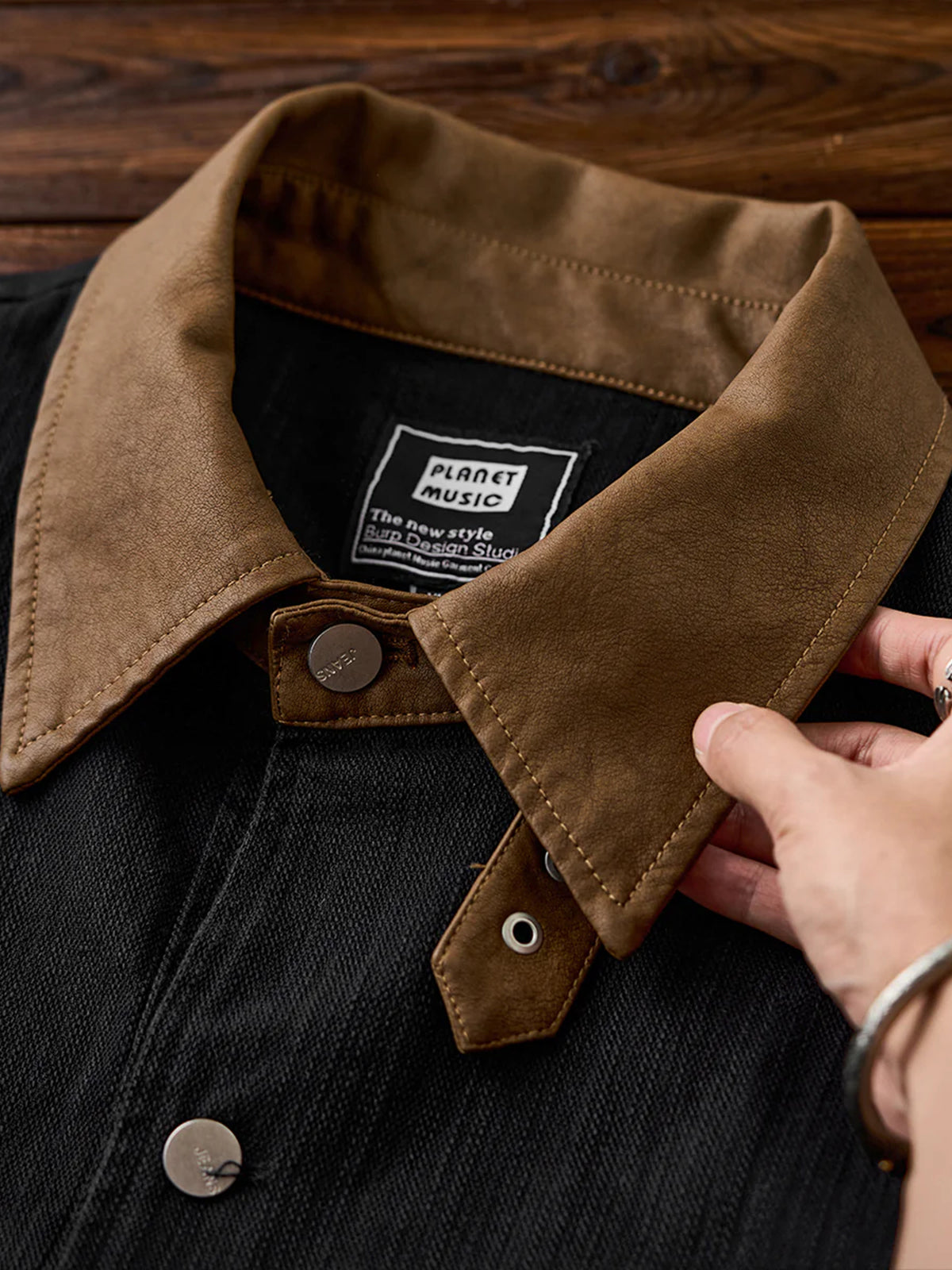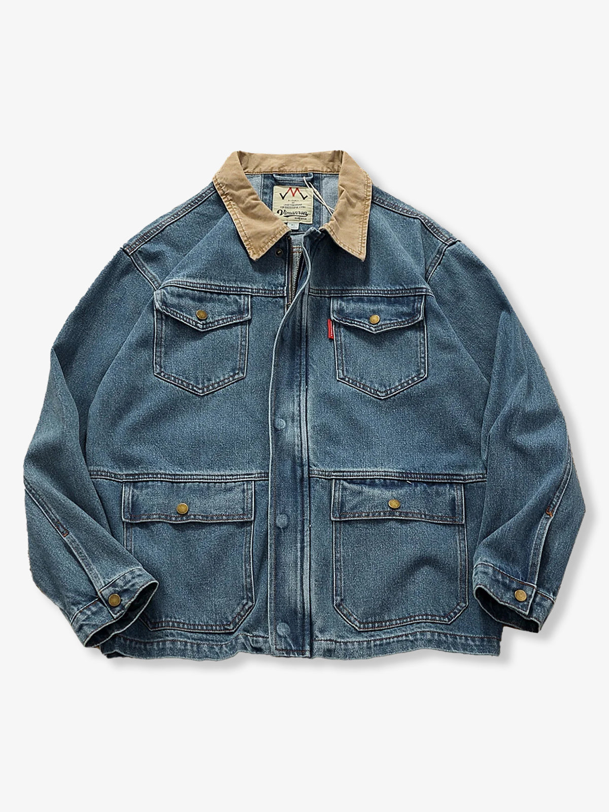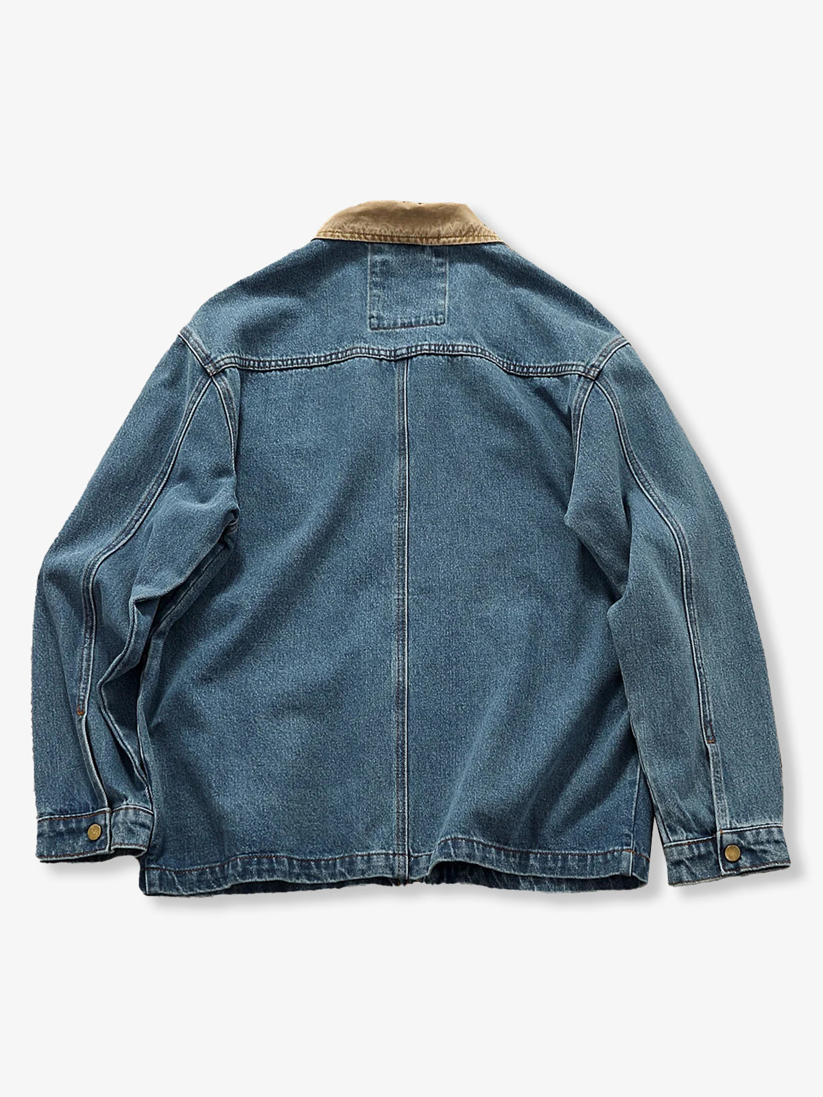 Colorblock Collar Washed Denim Work Jacket