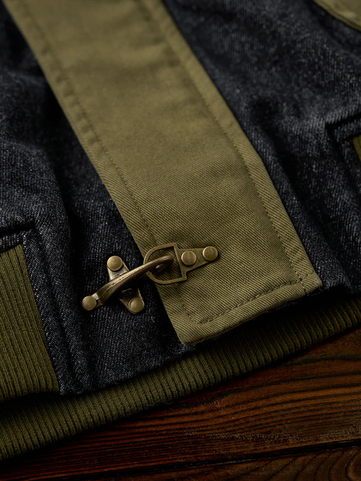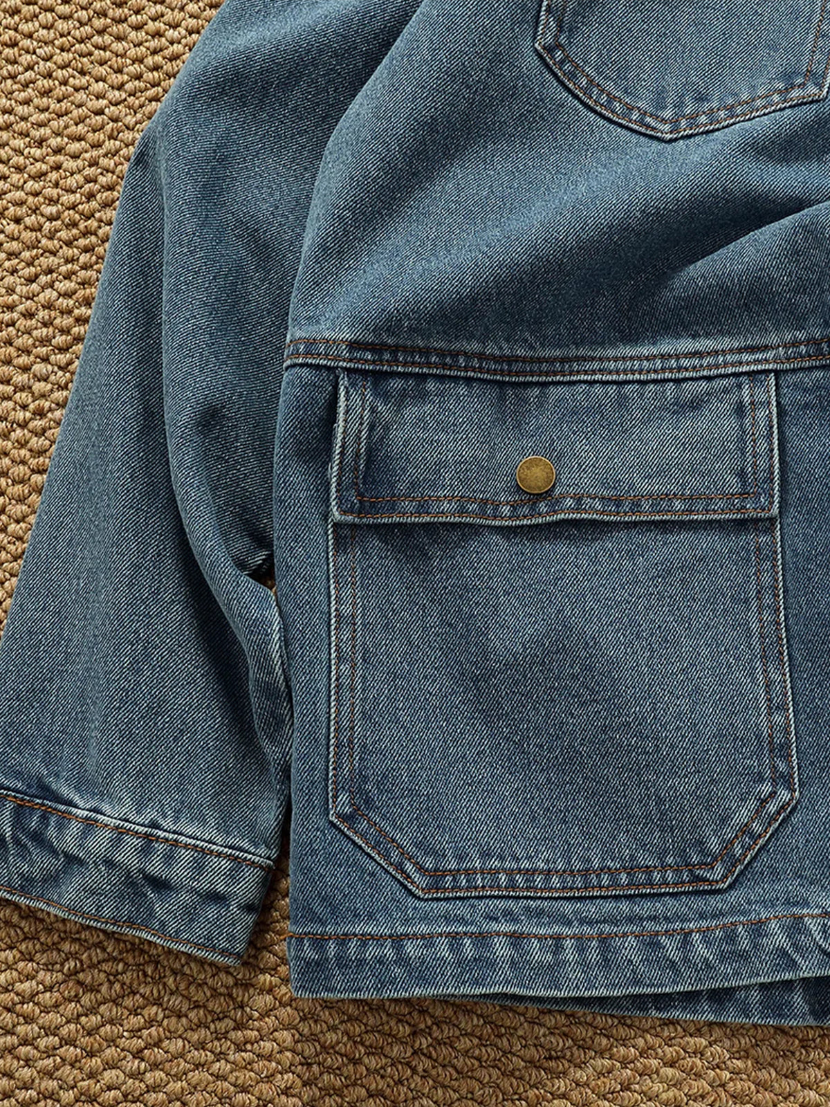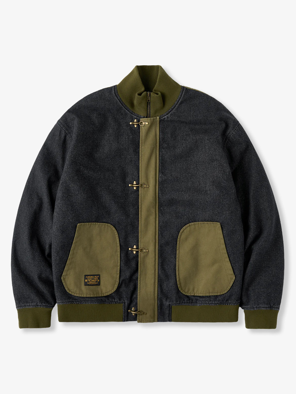 Colorblock Collar Washed Denim Work Jacket