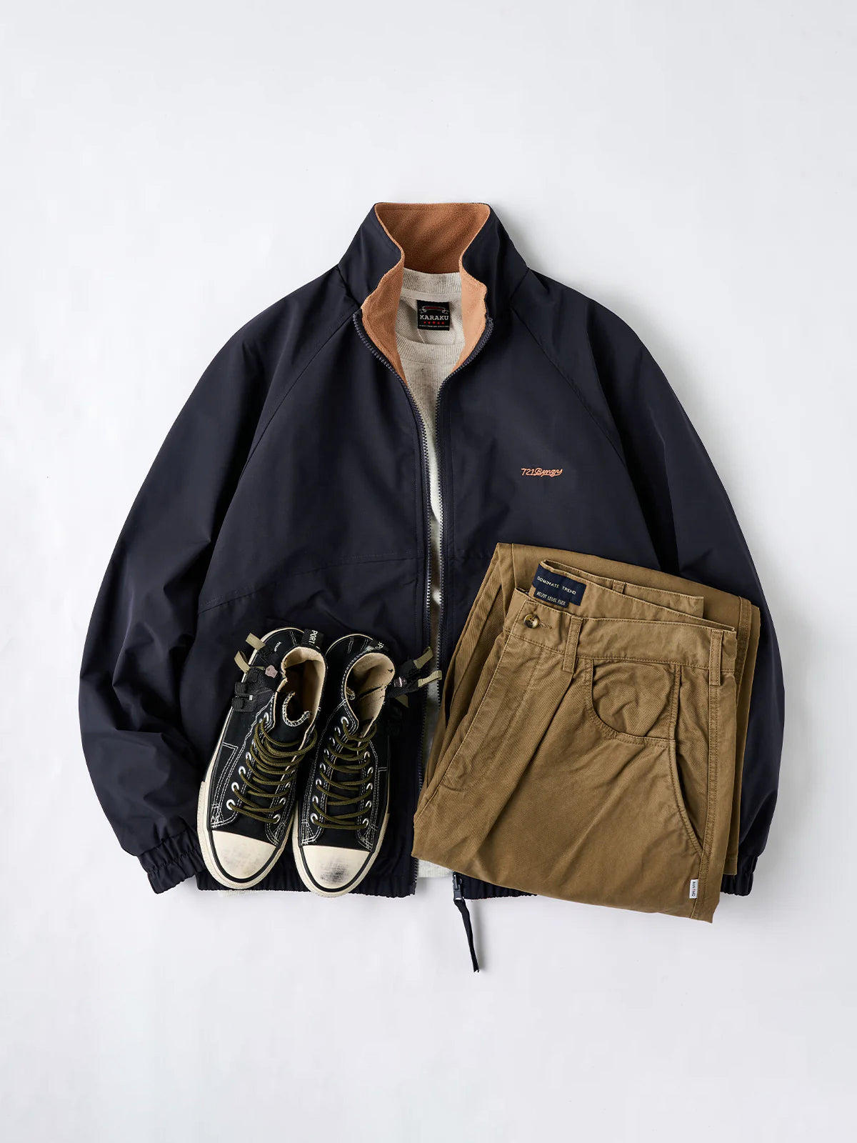 [Pre-Order] "KaraKu" Logo Embroidered Baseball Collar Melton Jacket