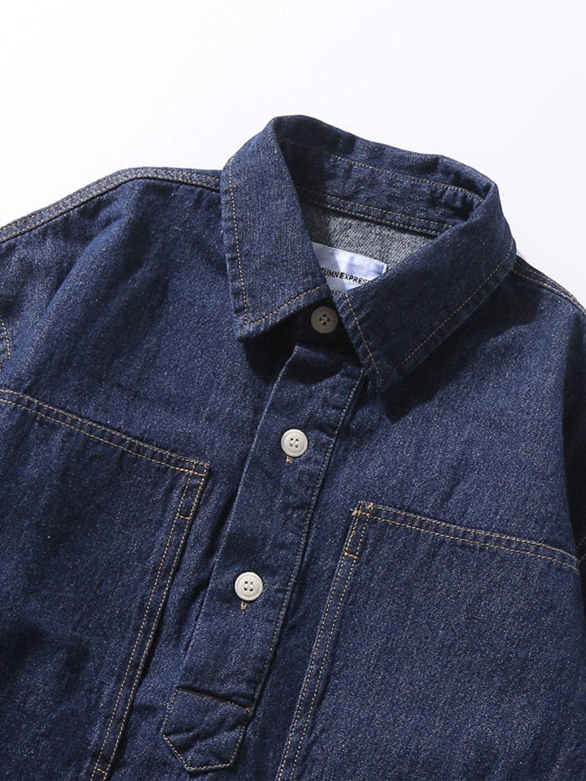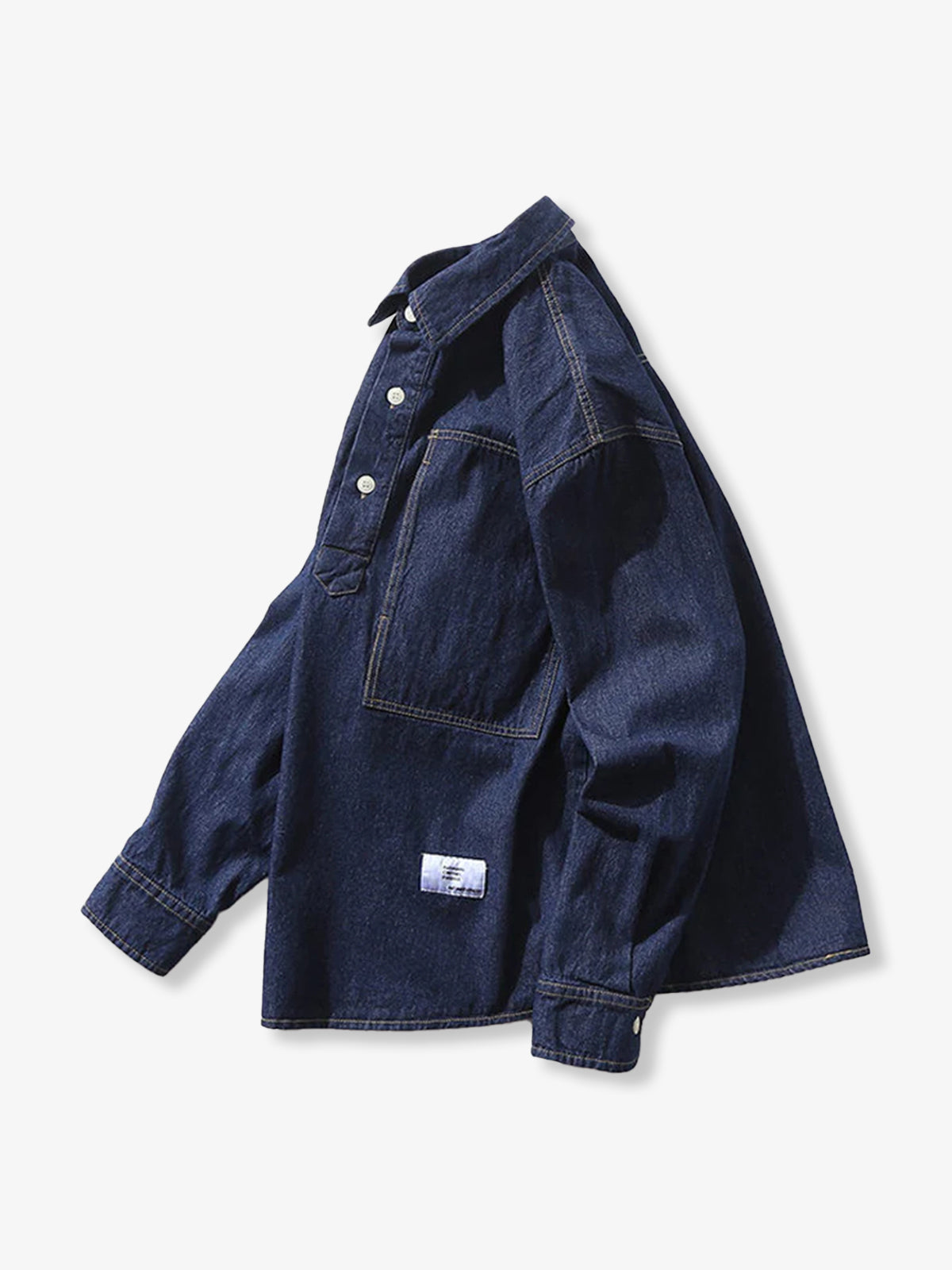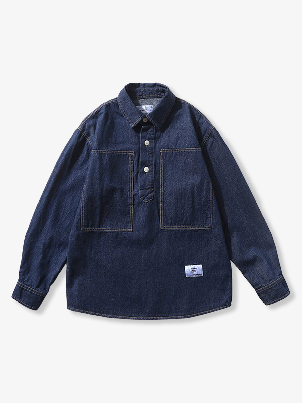 Modeled after the U.S. Army pullover shirt that was used by the U.S. military until around the 1940s. Two large chest pockets, as well as a thick body and armholes, make for a strong design. However, despite the impactful look, the denim fabric is moderately heavy for comfort. The length is refined and can be tucked in or out. The boxy silhouette and relaxed fit are perfect for your current mood. The crisp bleached color creates a seasonal feel for spring and fall looks.