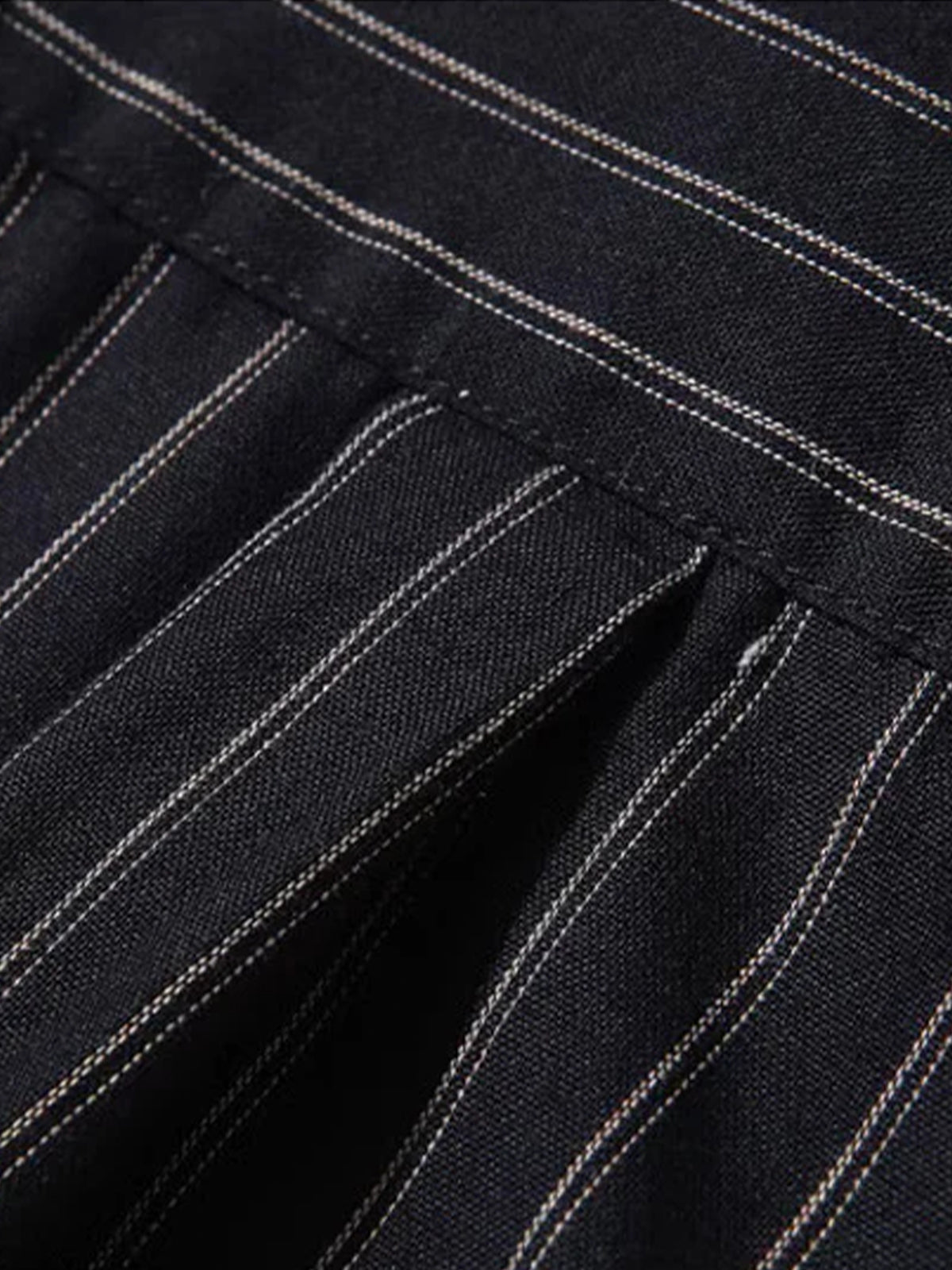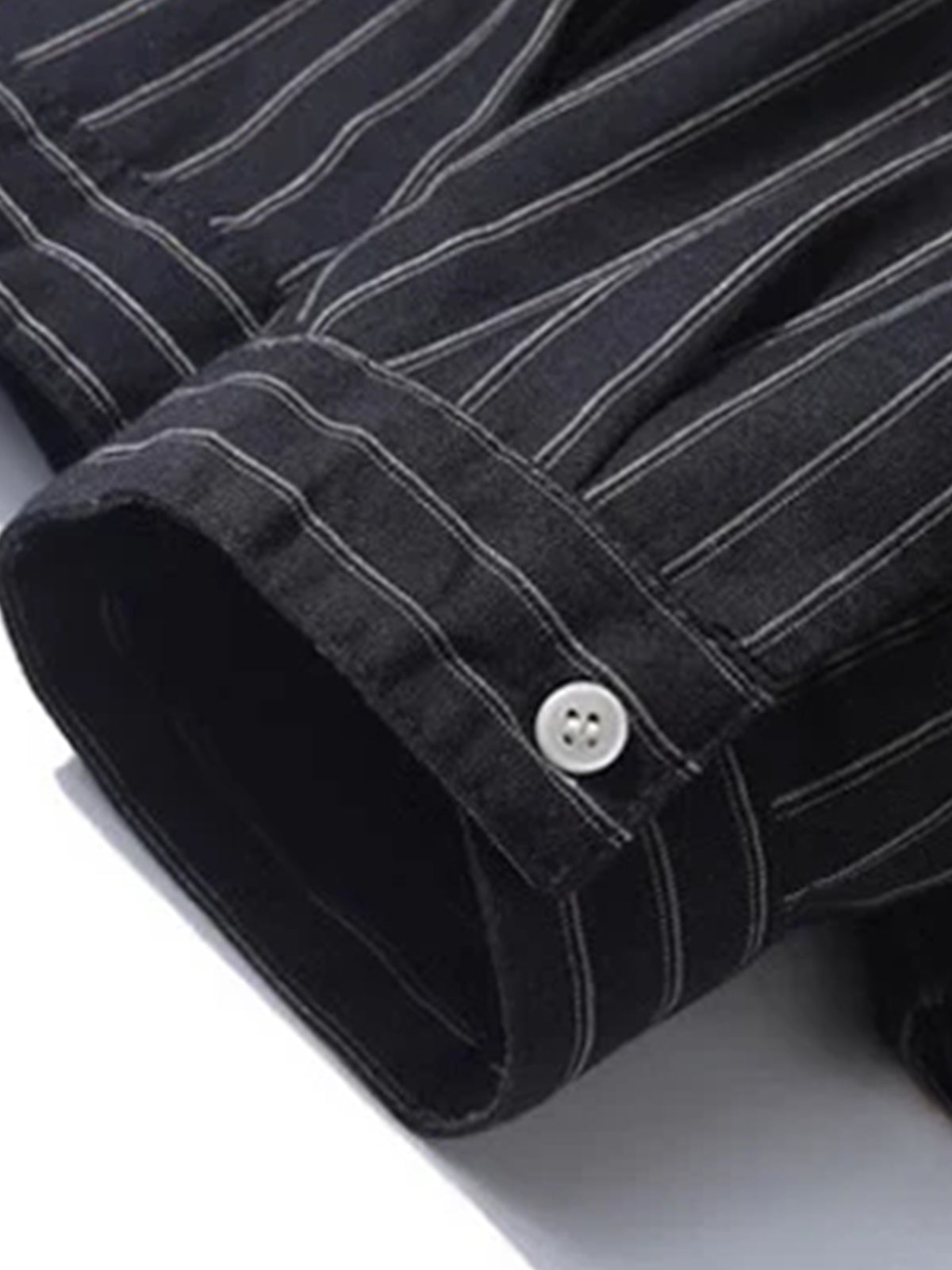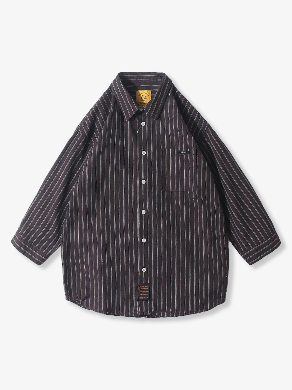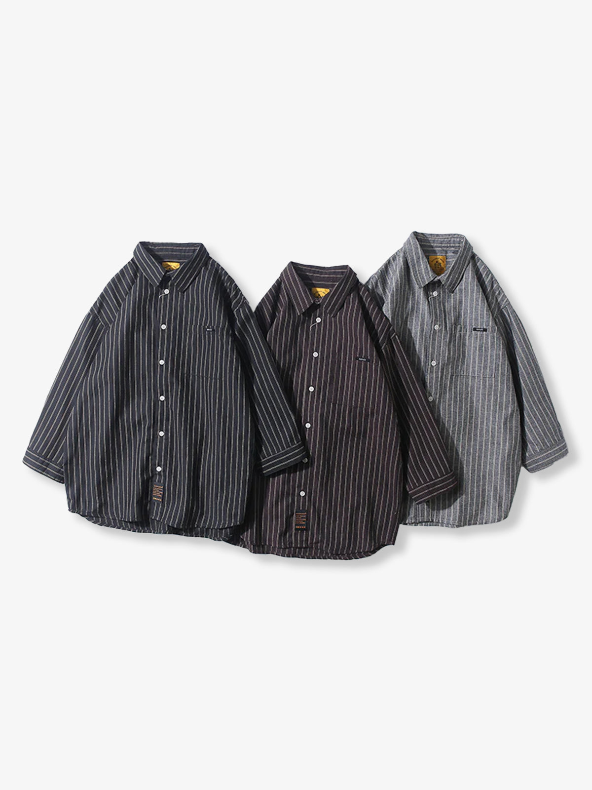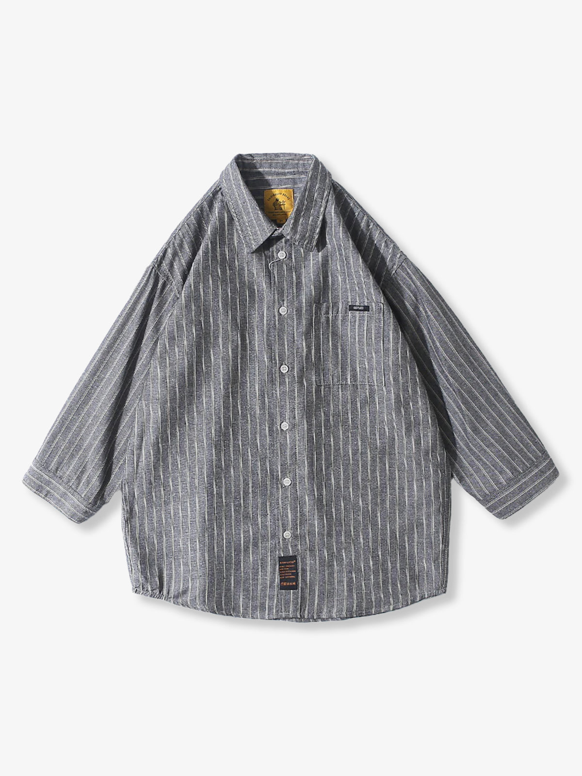 Double Stripe Cotton Shirt with 3/4 Sleeves