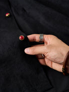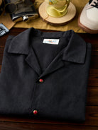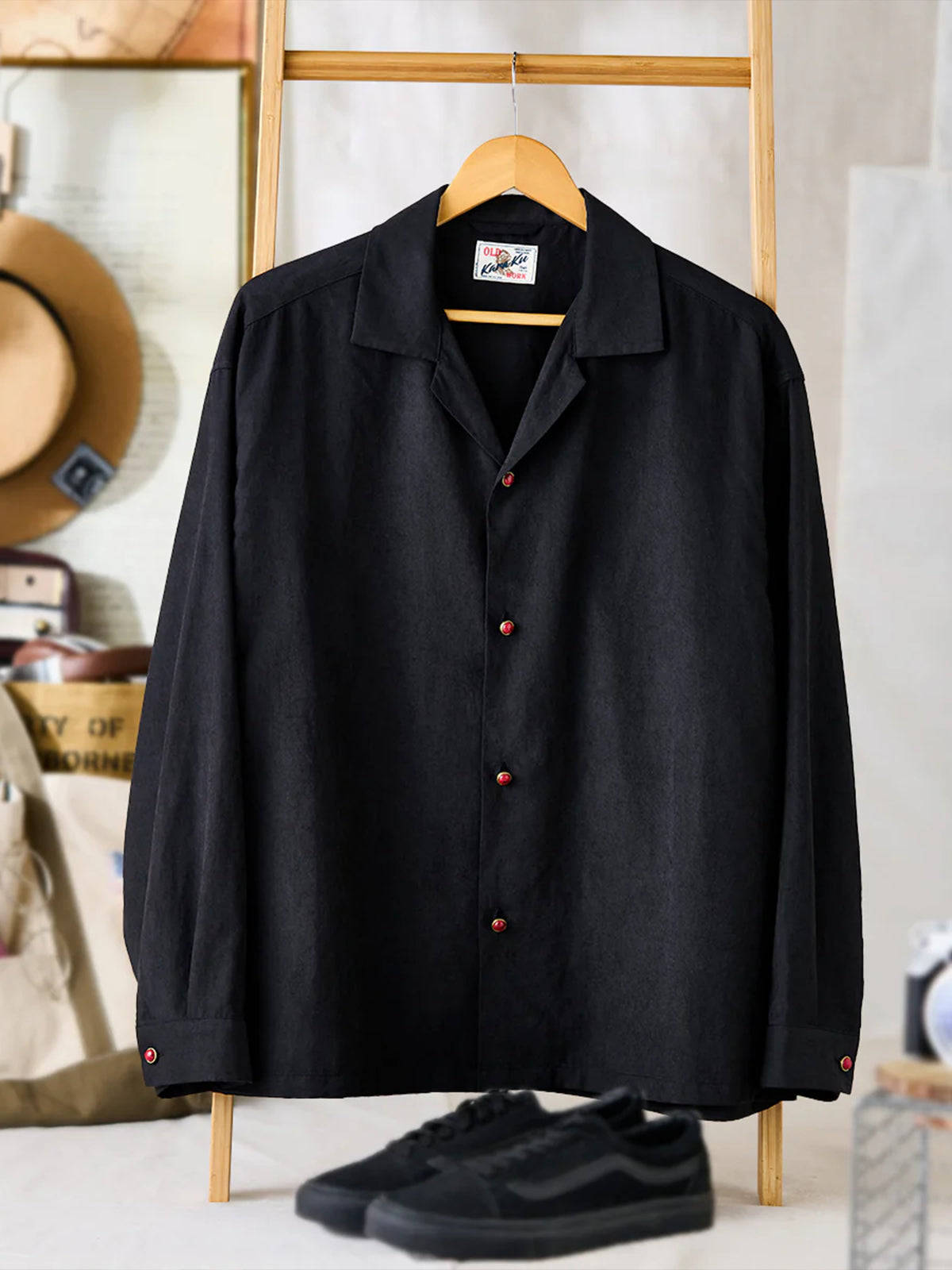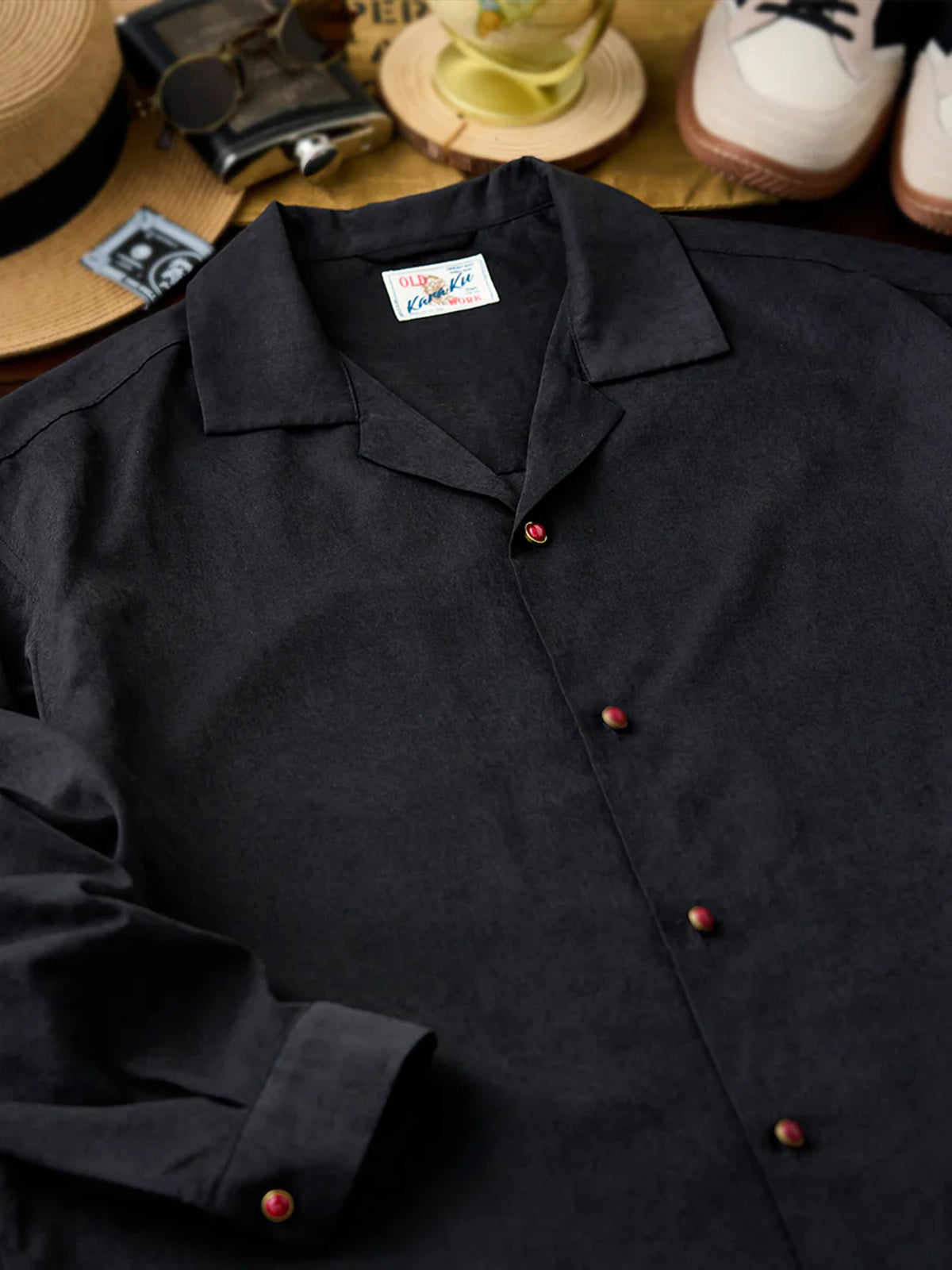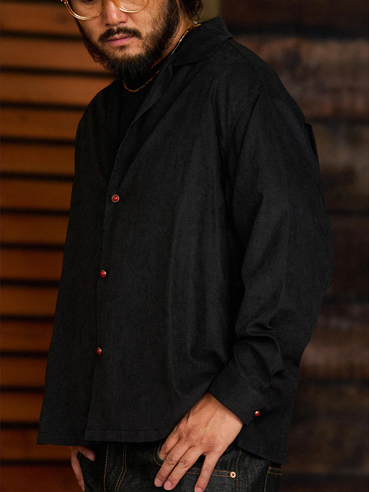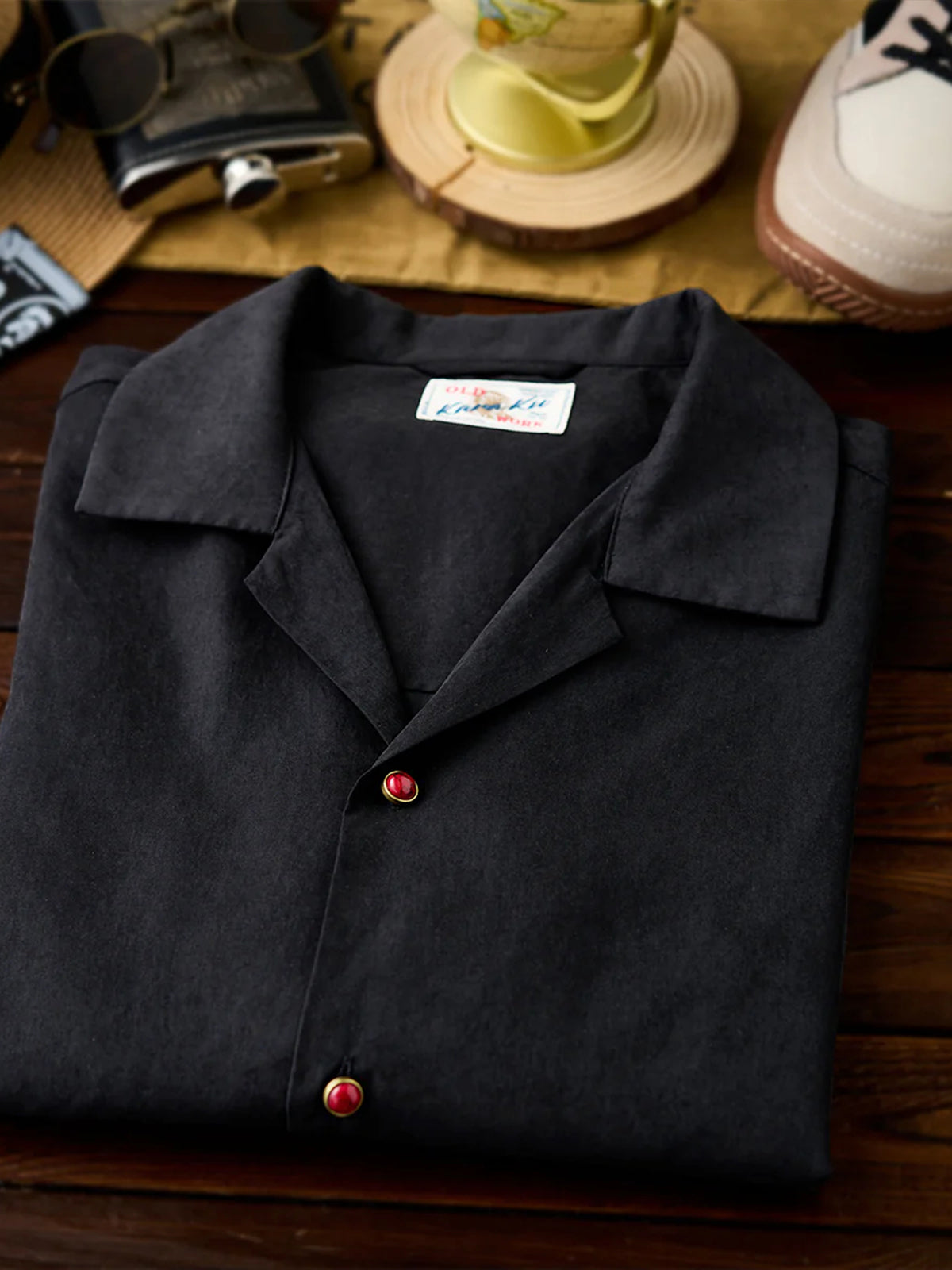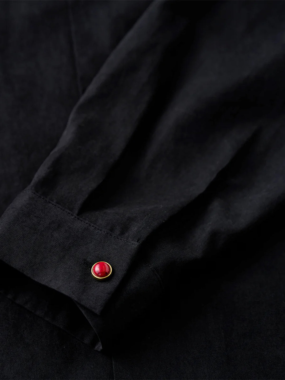 Peach Skin Open Collar Shirt with Red Agate-Style Buttons