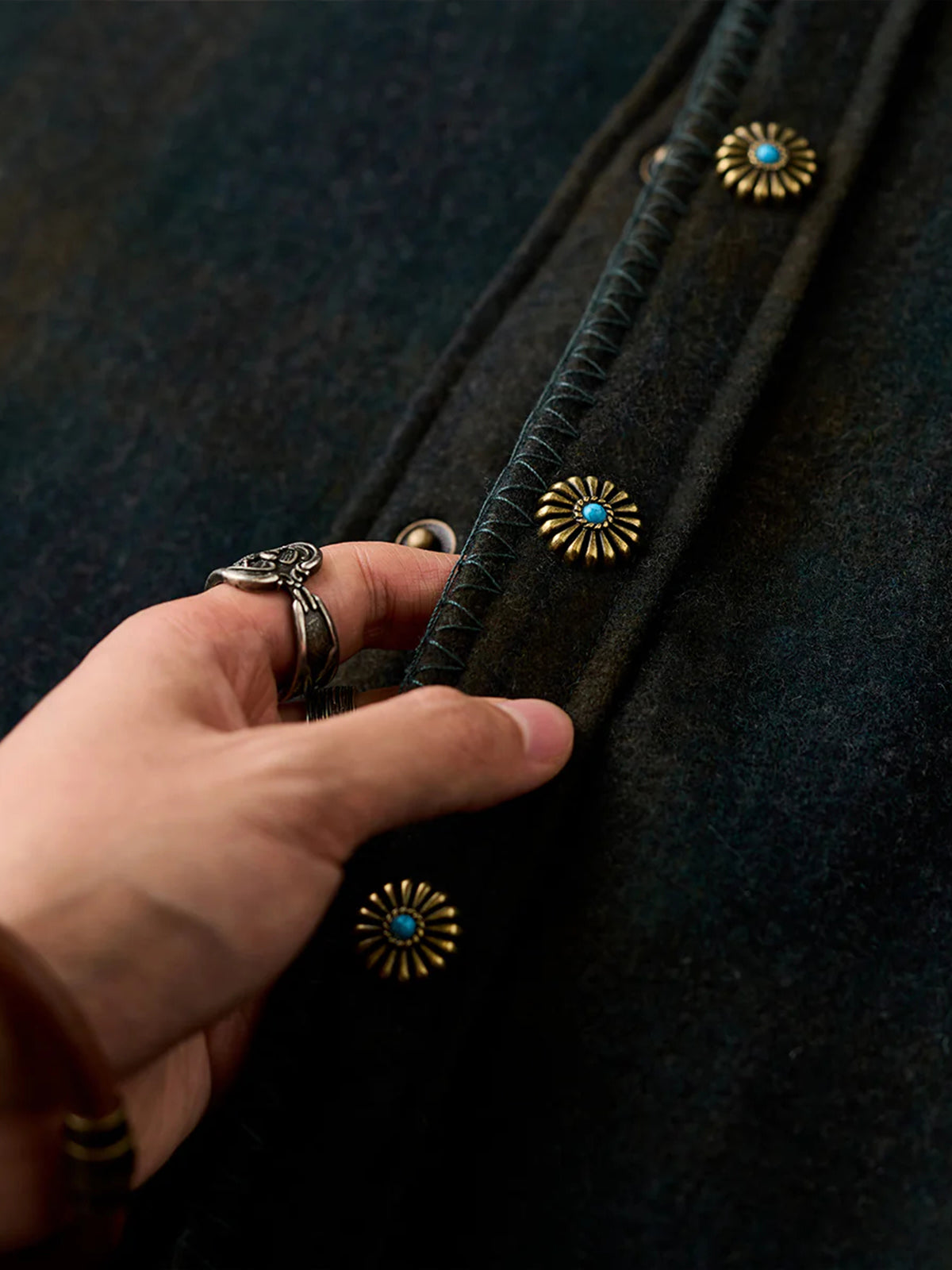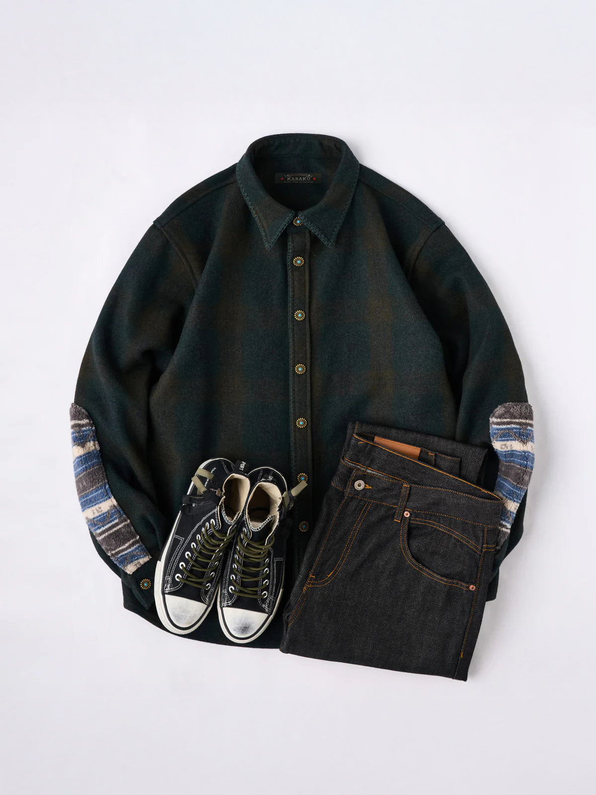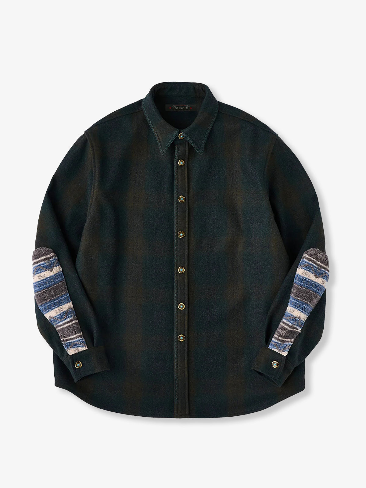 Concho Button Ethnic Pattern Patch Tweed Wool Plaid Shirt