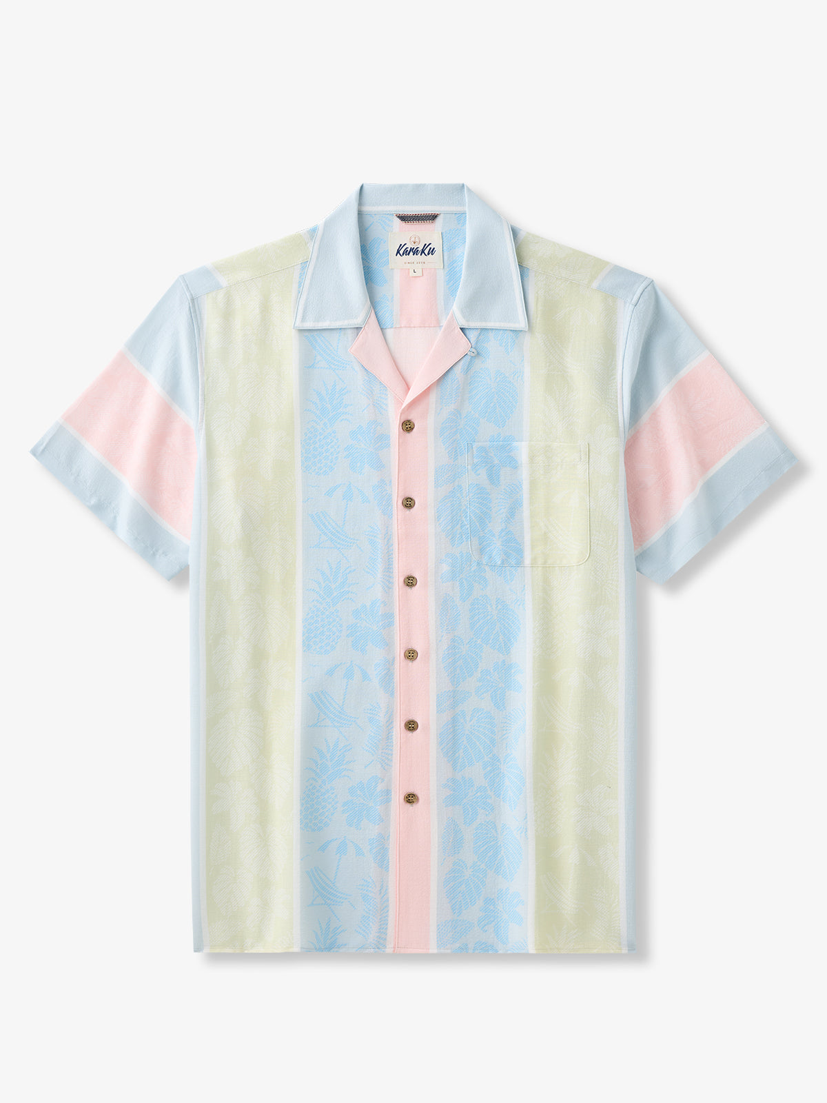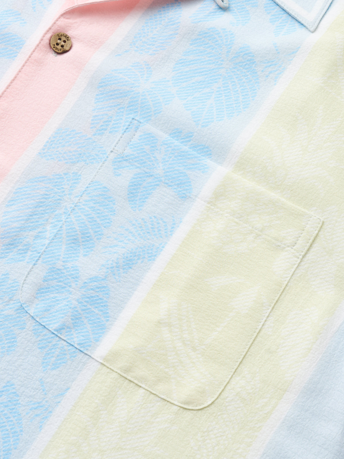 Vintage Tropical Patterns Seersucker Camp Shirt