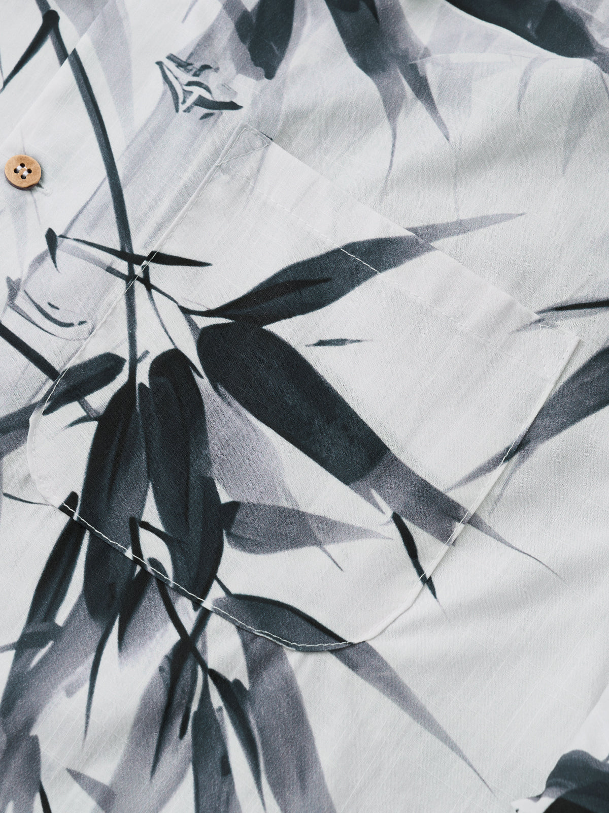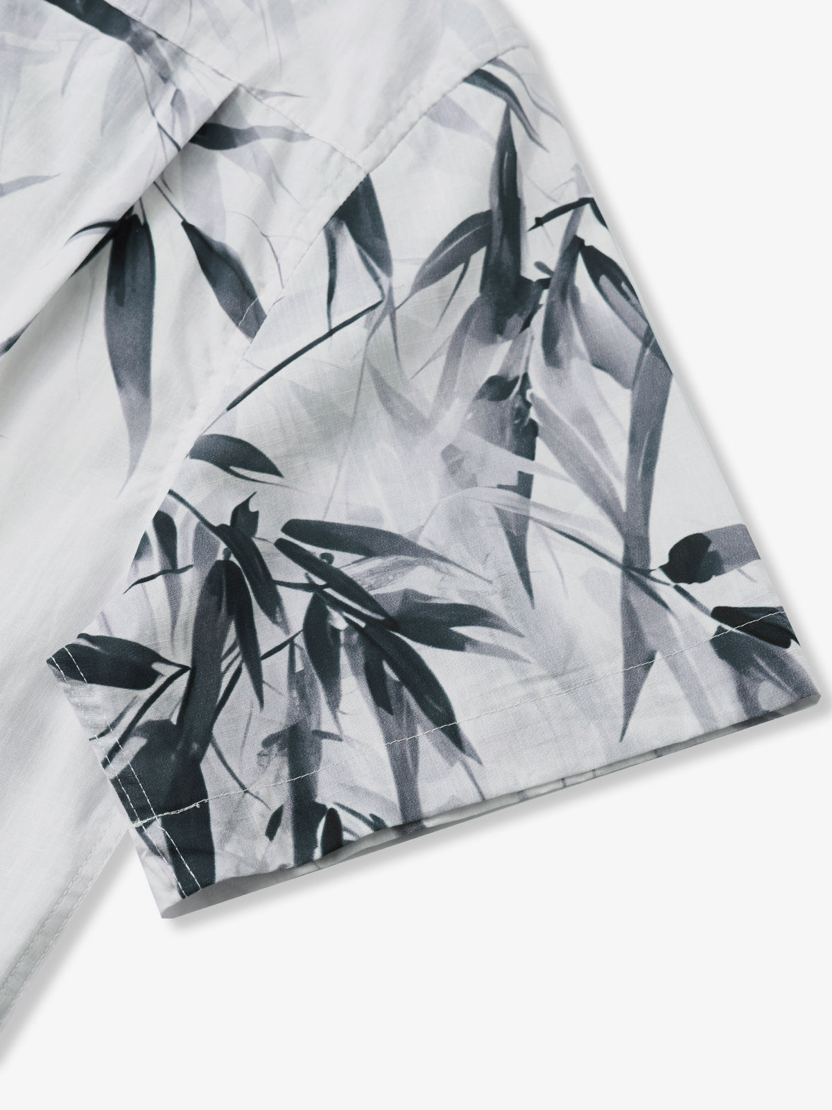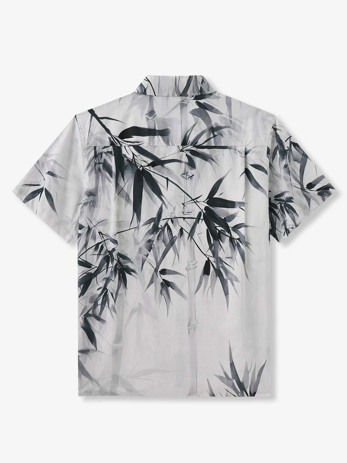 Exquisite Bamboo Ink Painting Cotton Camp Shirt