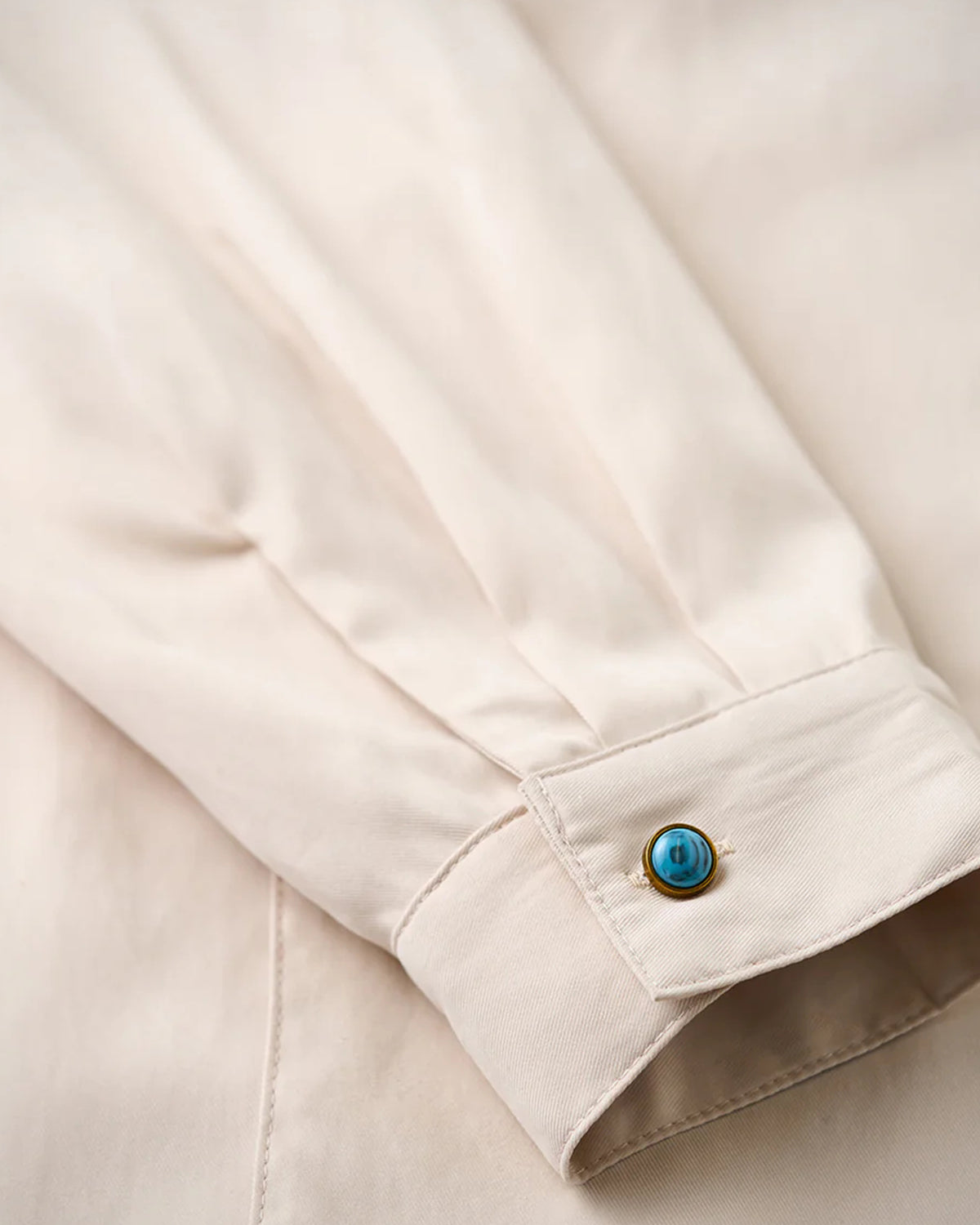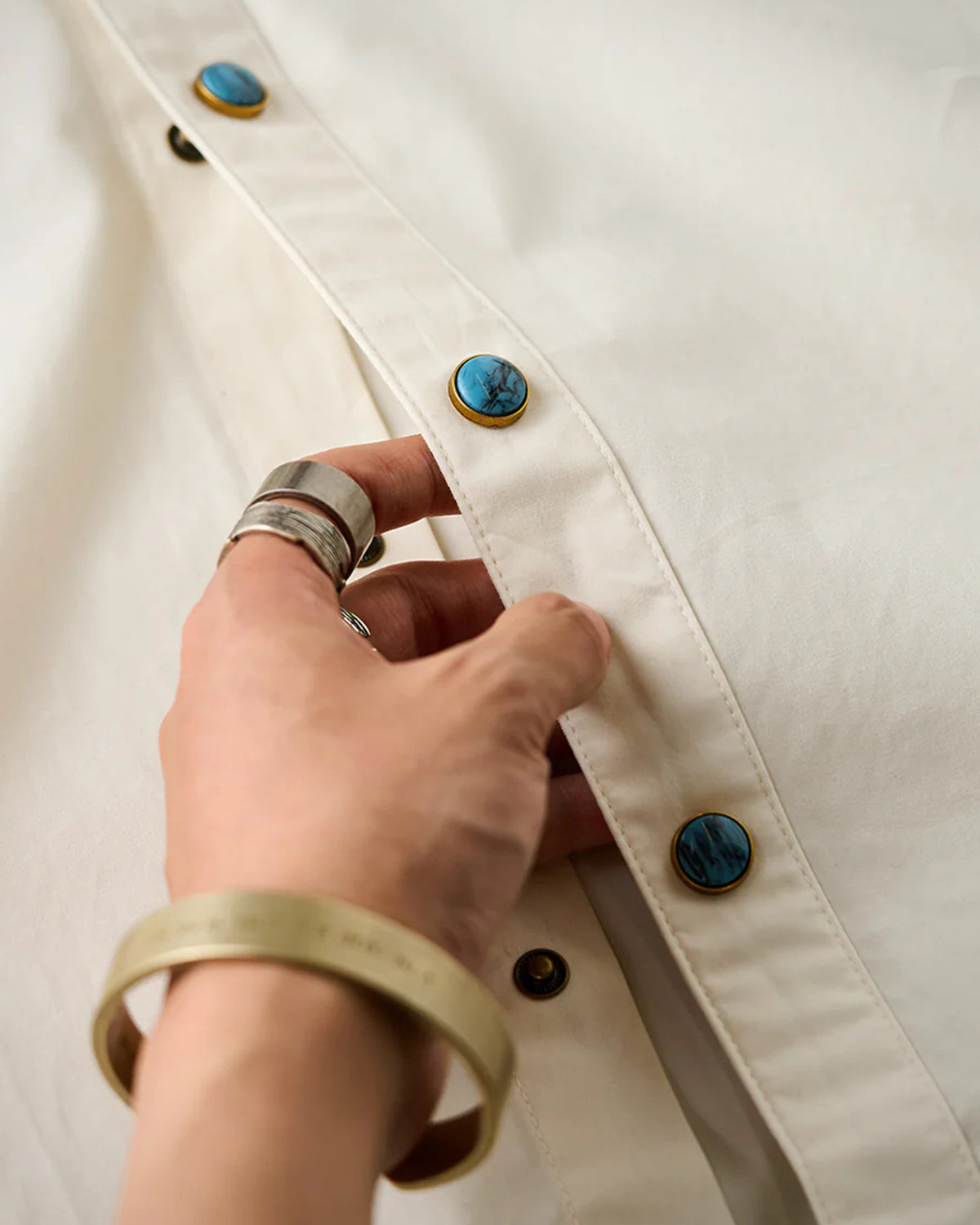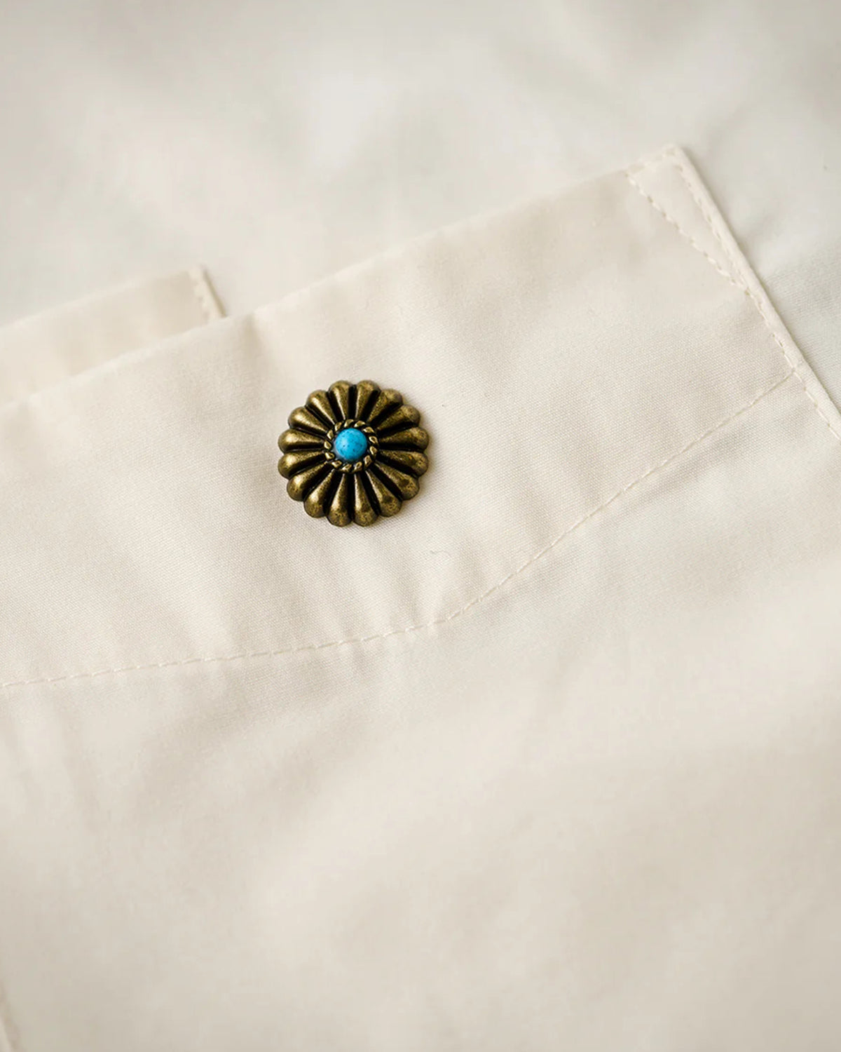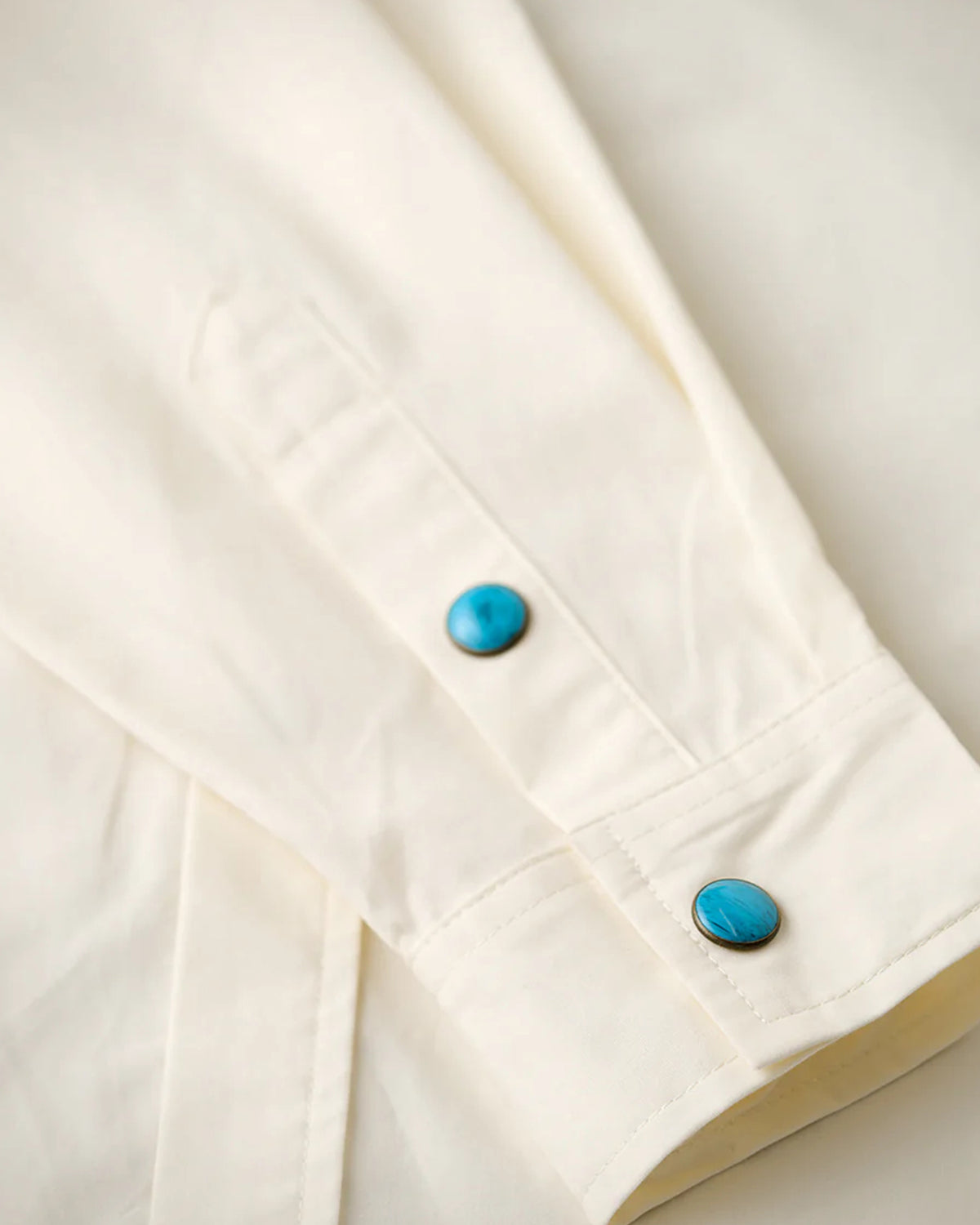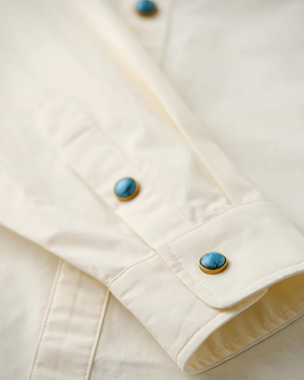 This collection is defined by its signature turquoise buttons — a nod to vintage Western charm with a modern twist. Whether used to accent soft knits, crisp shirts, or tailored jackets, the turquoise touch adds character without overpowering. It's the detail you didn’t know you needed.