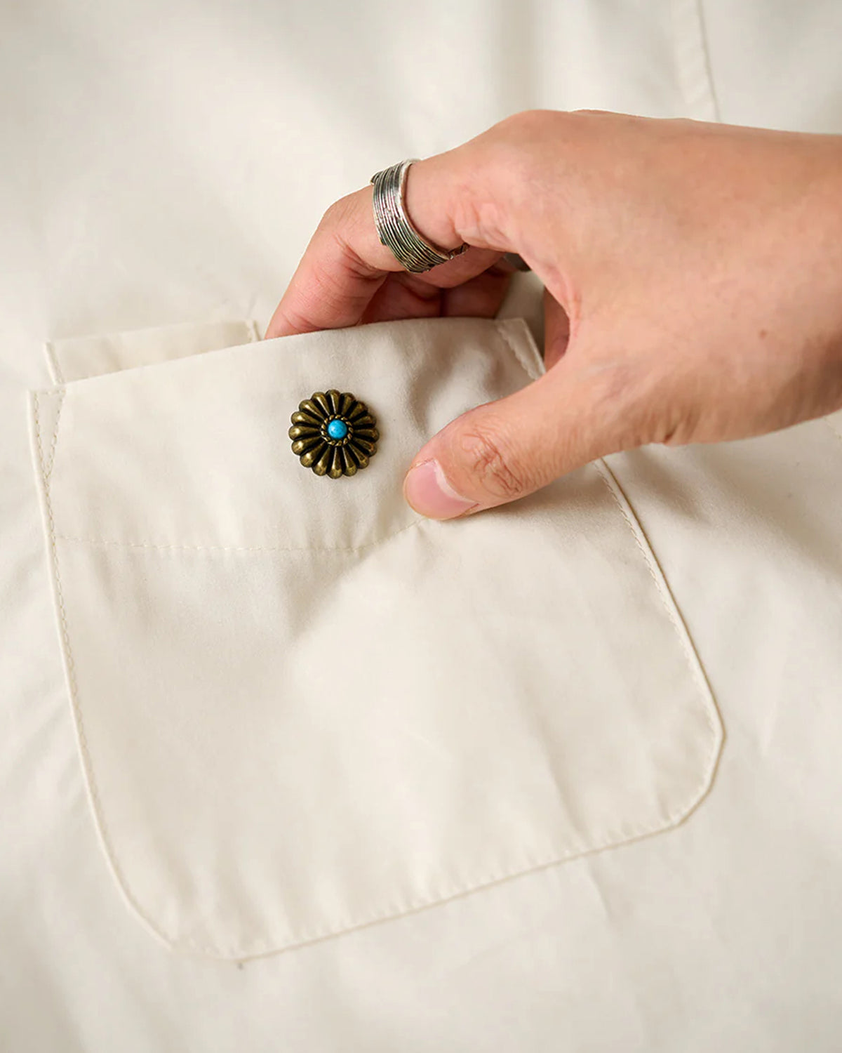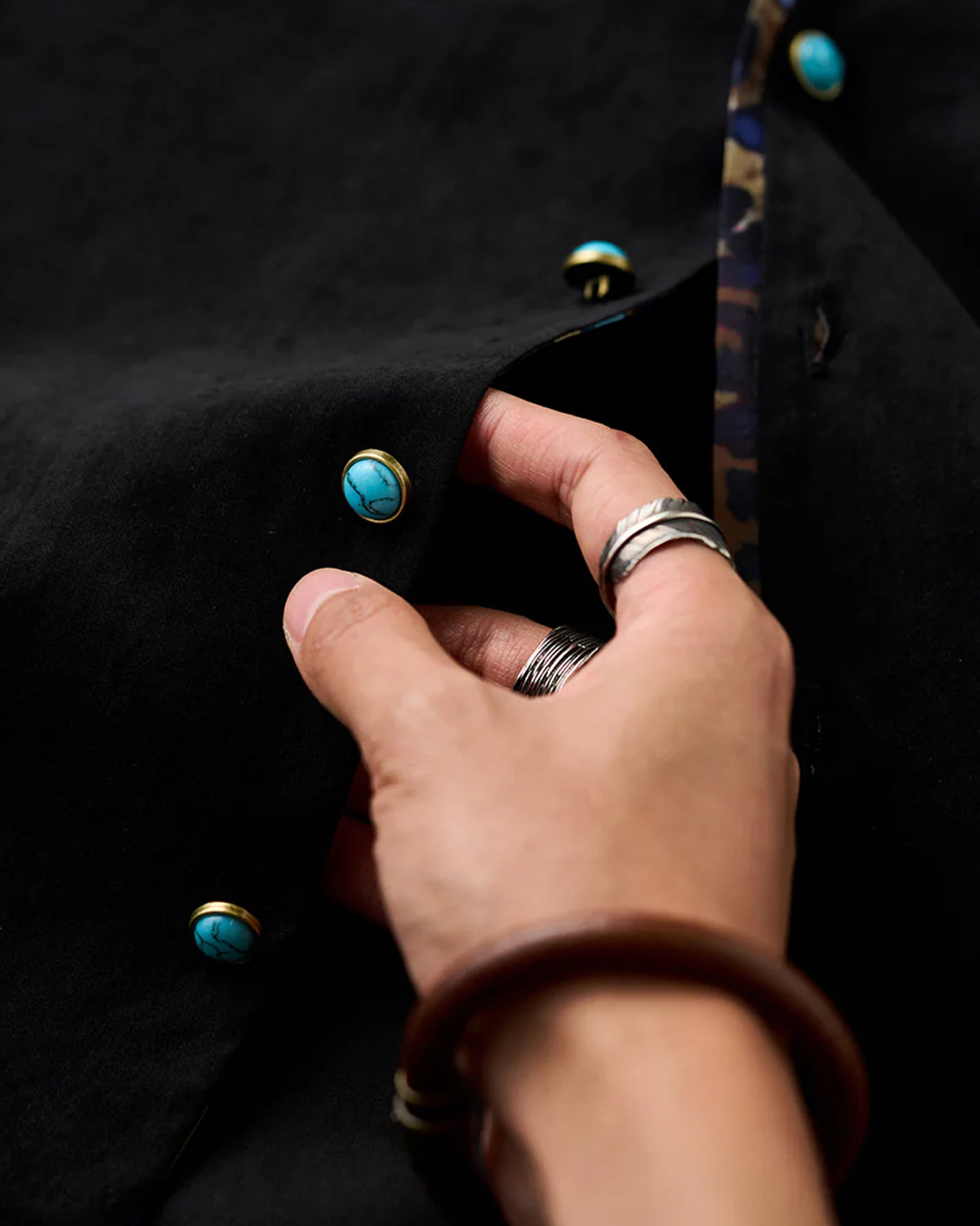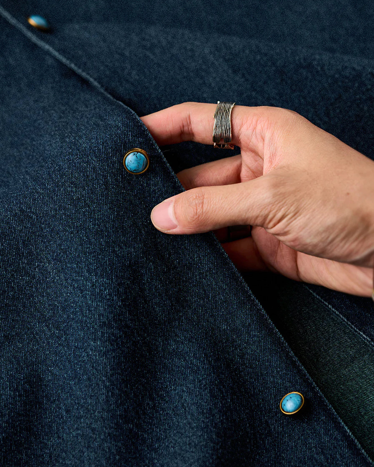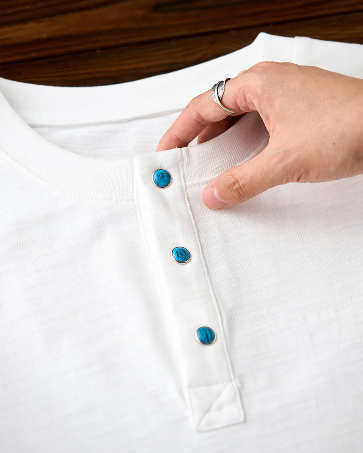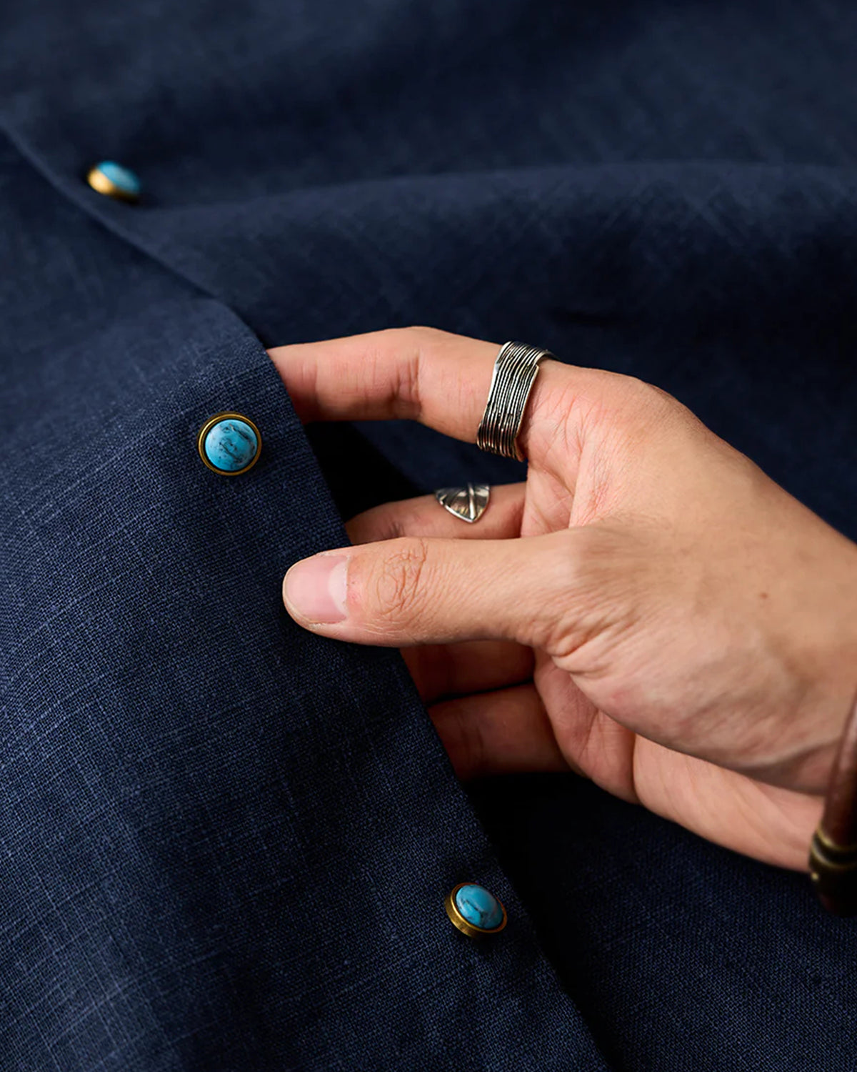 This collection is defined by its signature turquoise buttons — a nod to vintage Western charm with a modern twist. Whether used to accent soft knits, crisp shirts, or tailored jackets, the turquoise touch adds character without overpowering. It's the detail you didn’t know you needed.