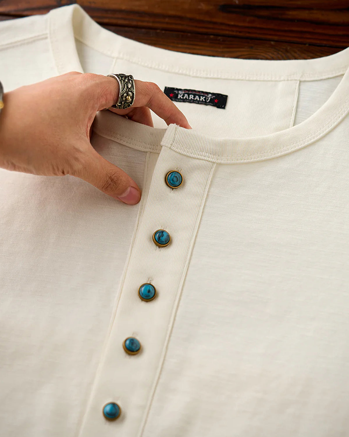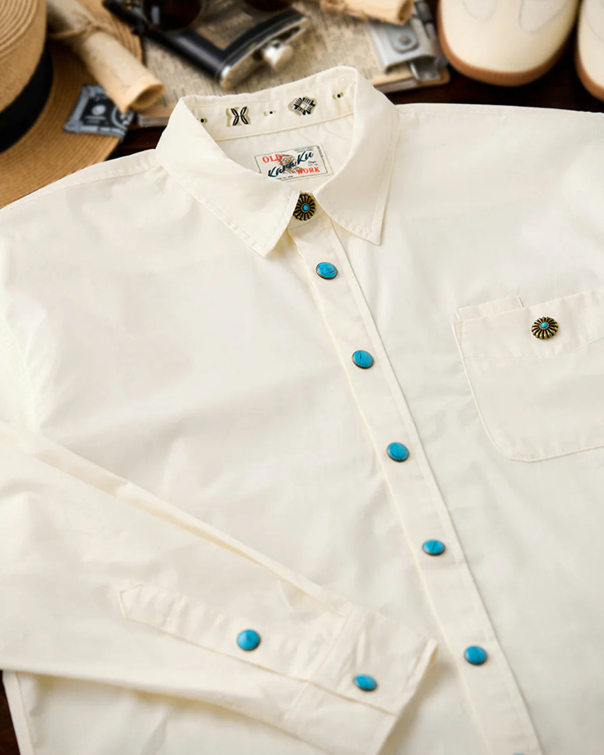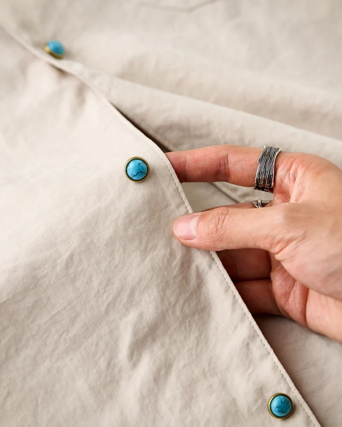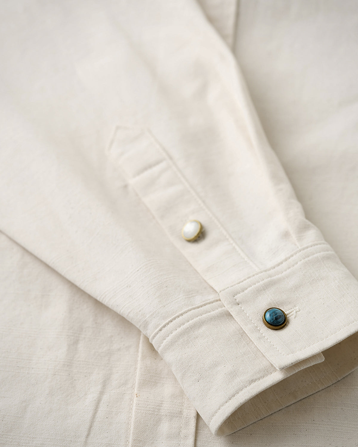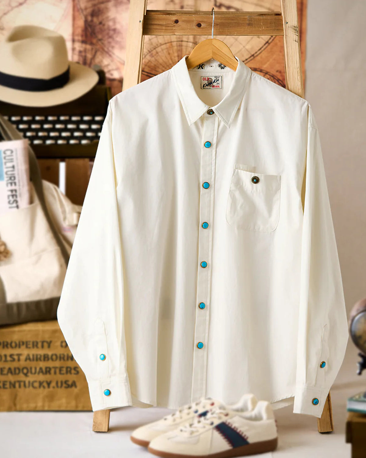This collection is defined by its signature turquoise buttons — a nod to vintage Western charm with a modern twist. Whether used to accent soft knits, crisp shirts, or tailored jackets, the turquoise touch adds character without overpowering. It's the detail you didn’t know you needed.