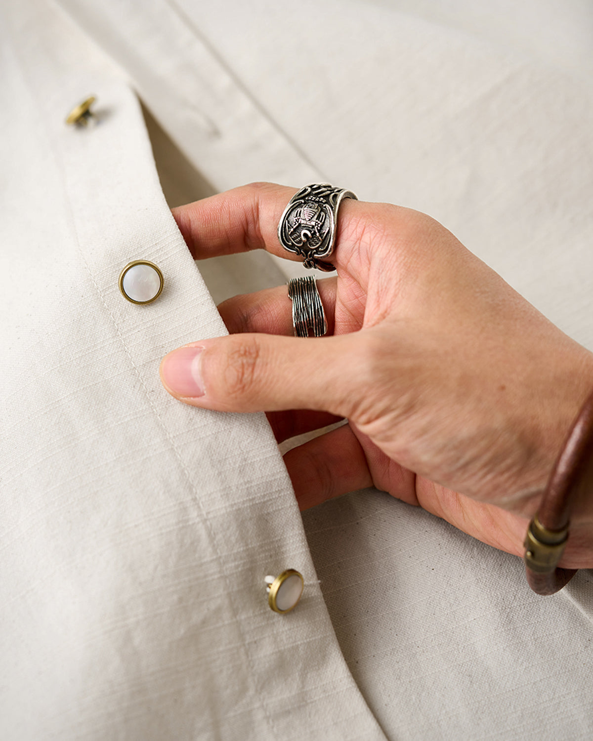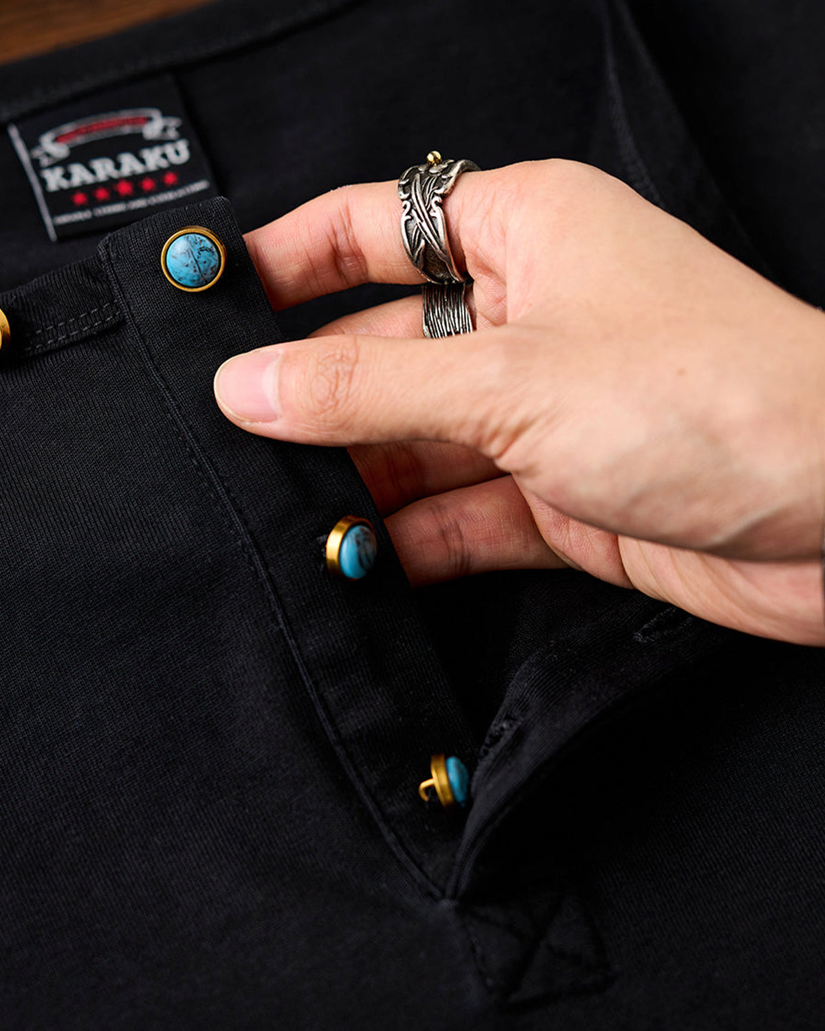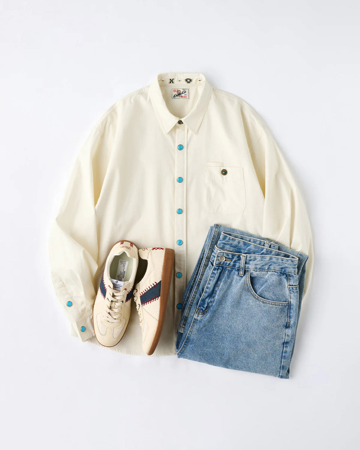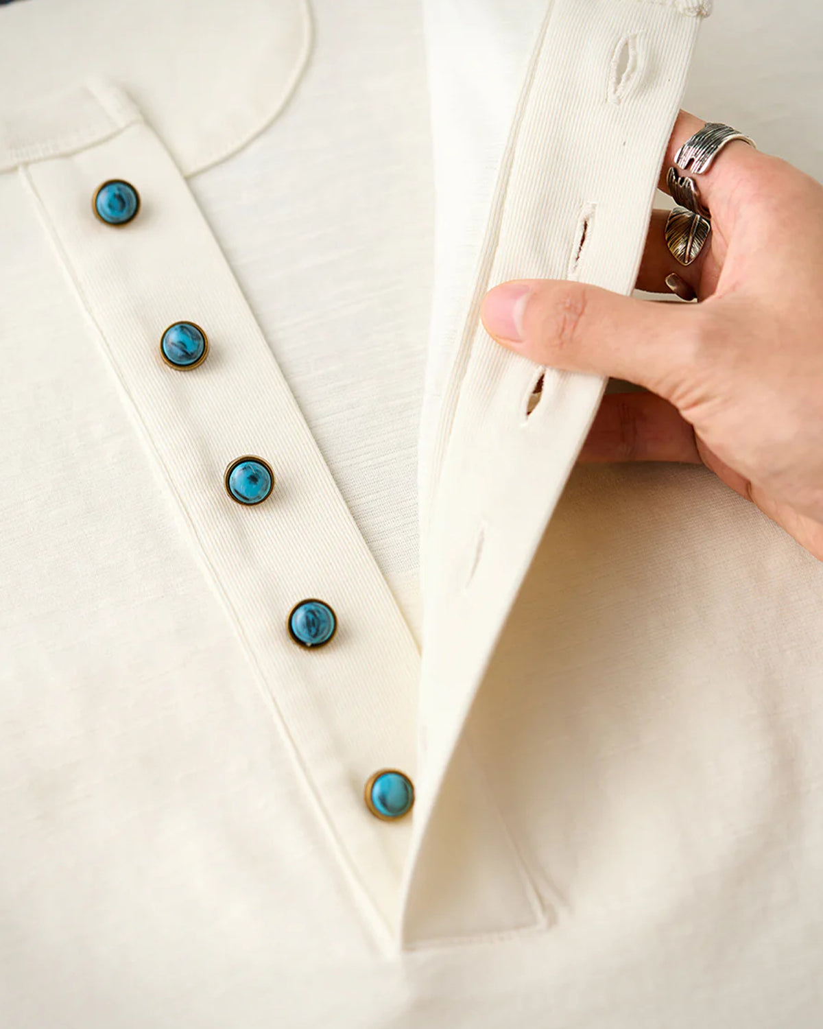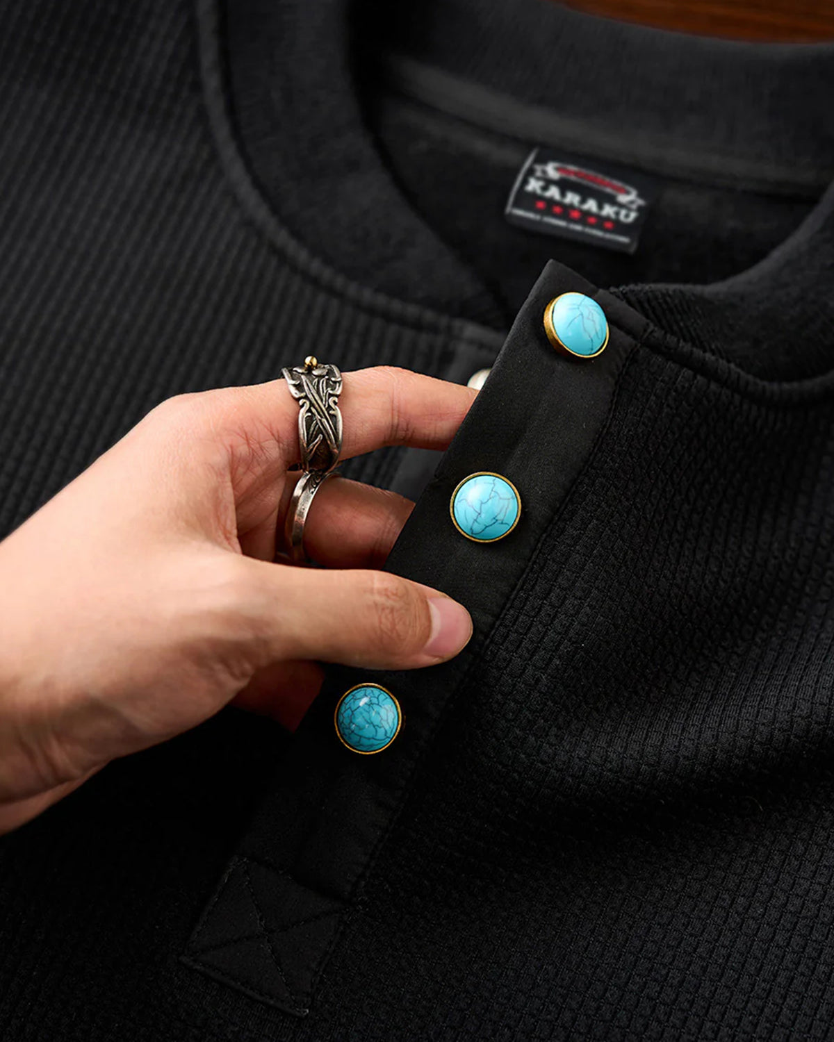 This collection is defined by its signature turquoise buttons — a nod to vintage Western charm with a modern twist. Whether used to accent soft knits, crisp shirts, or tailored jackets, the turquoise touch adds character without overpowering. It's the detail you didn’t know you needed.