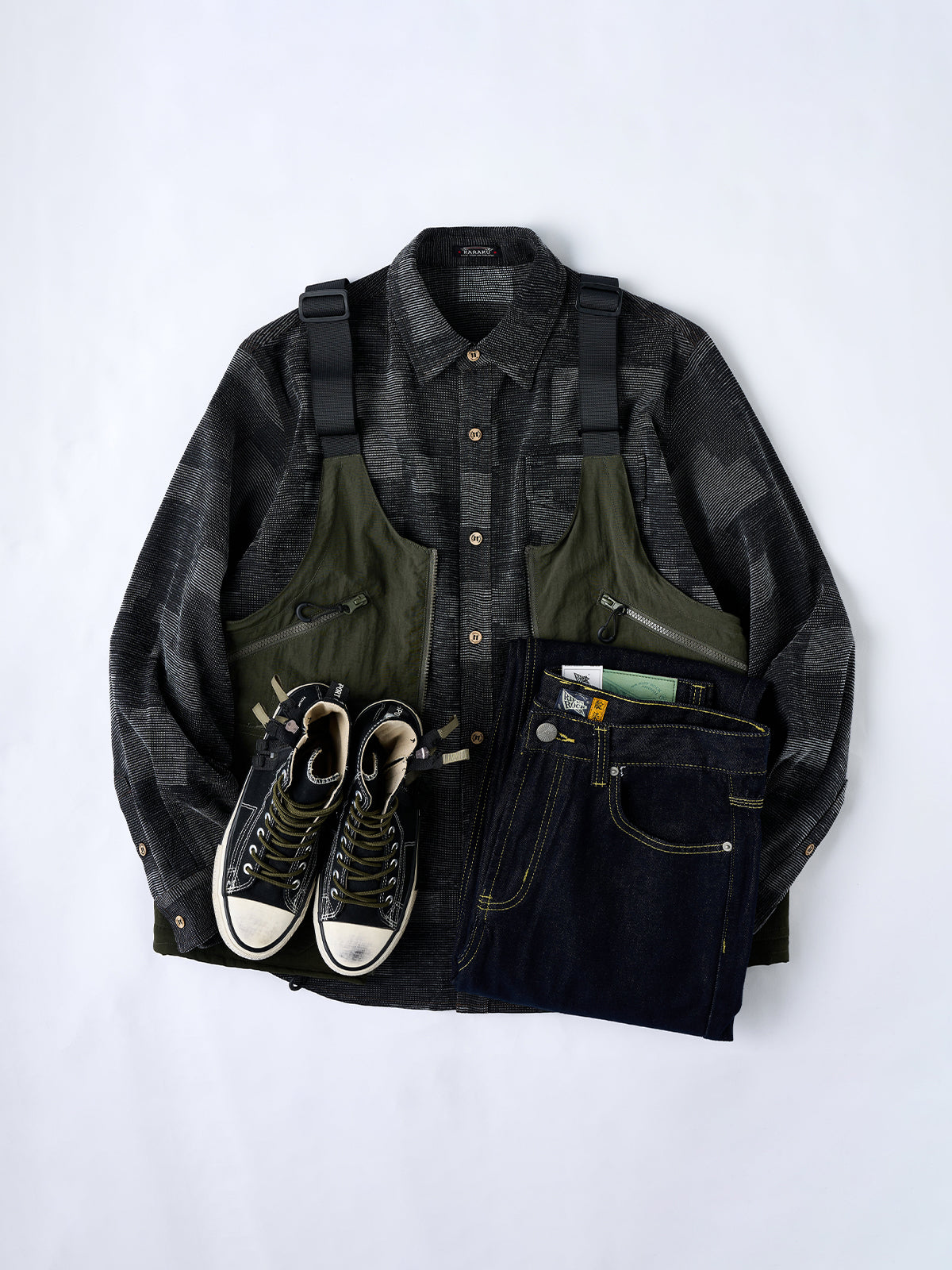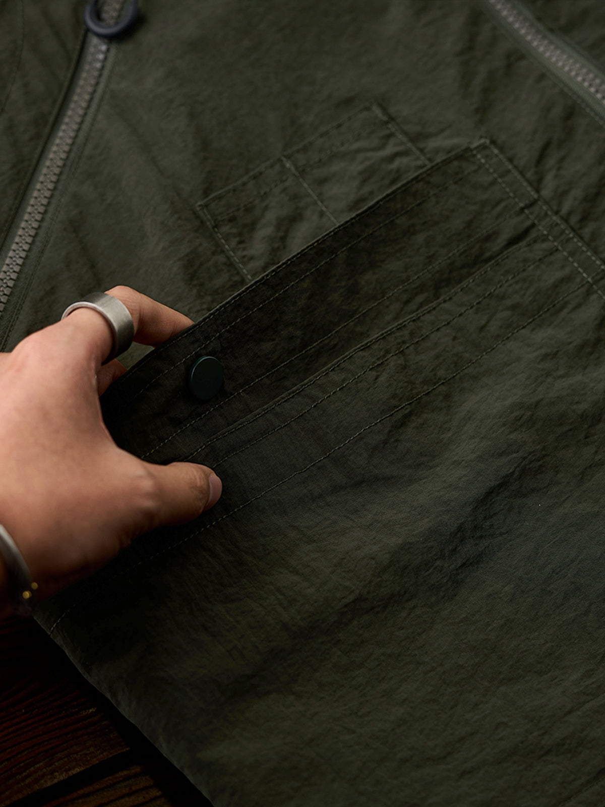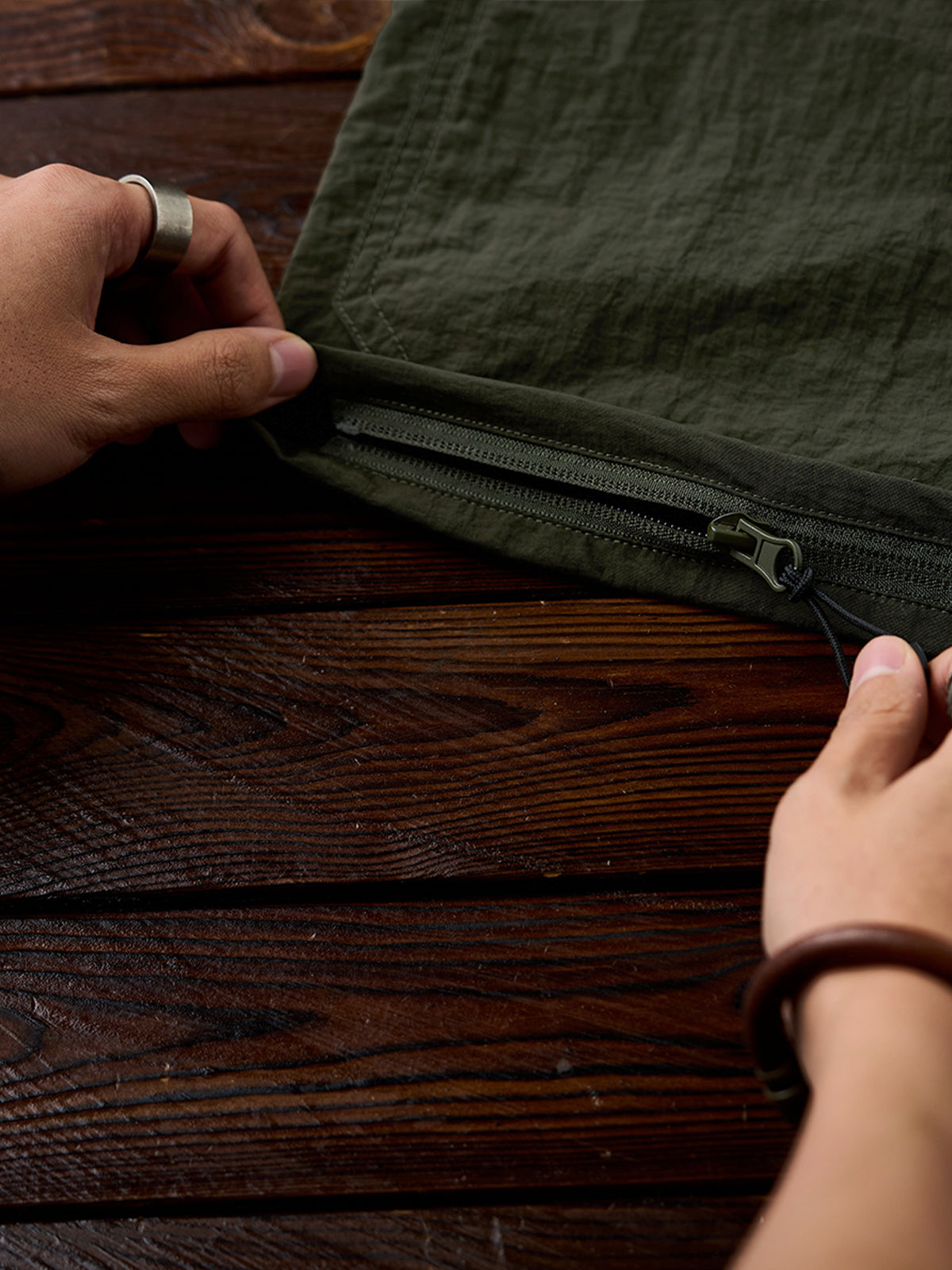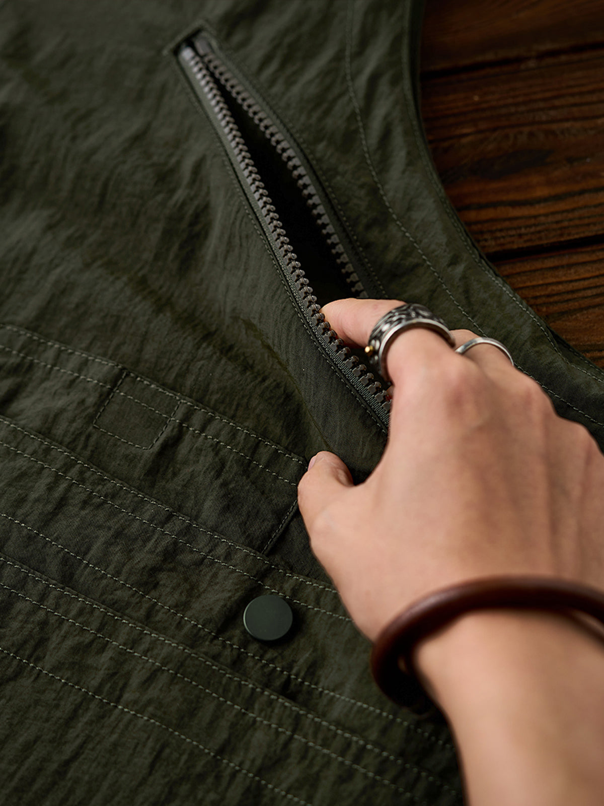 It can be used as a vest or bag, with two button pockets on the front and two zipper pockets on the back for small storage. Designed with excellent storage capacity, the wide silhouette makes it feel like a bag, the length of the shoulder straps can be adjusted, and each part can be combined to create an original look. The material is nylon, which is lightweight, resistant to friction, durable, and has anti-fouling properties. It is designed with excellent storage capacity, a wide silhouette, and the length of the shoulder straps can be adjusted, so it can be worn outside the coat.