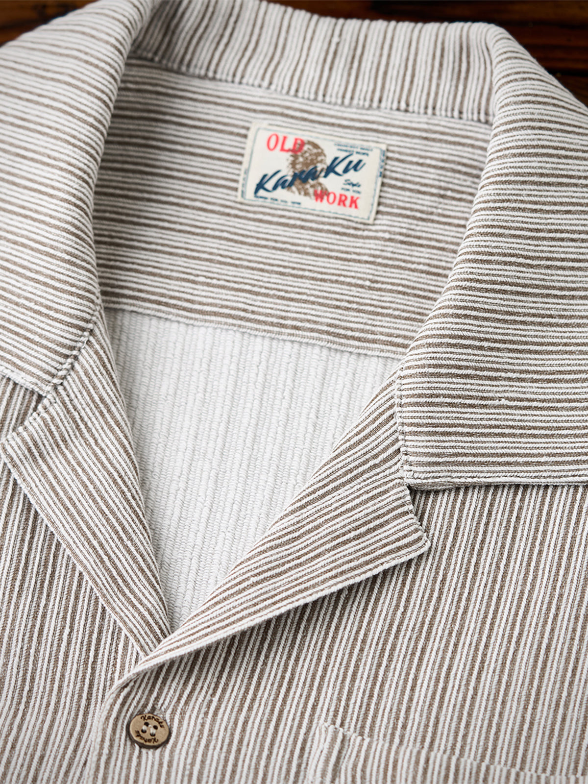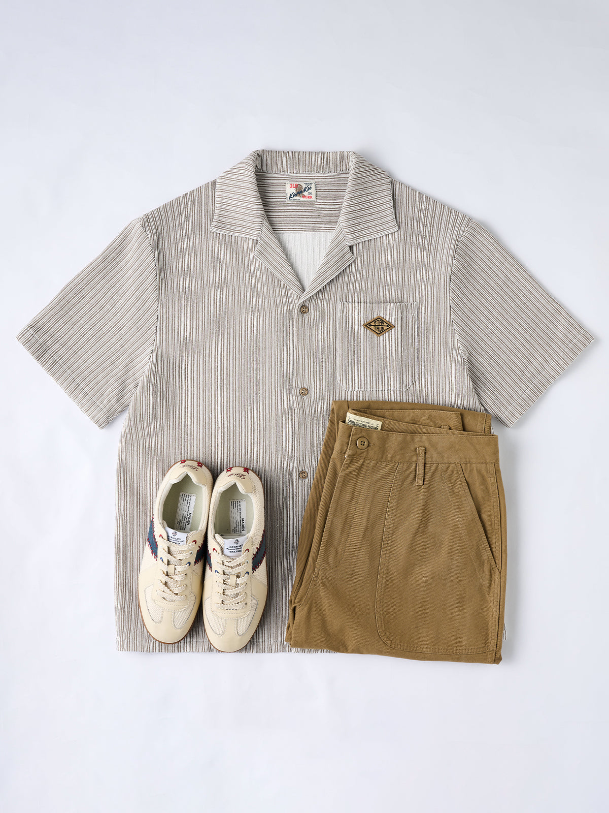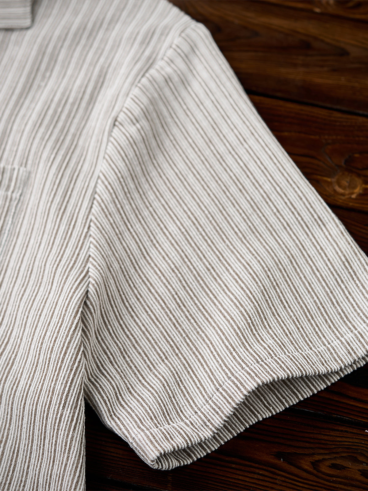 [Pre-order] “STAY TRUE” Embroidered Patch Striped Textured Knit Cuban Shirt