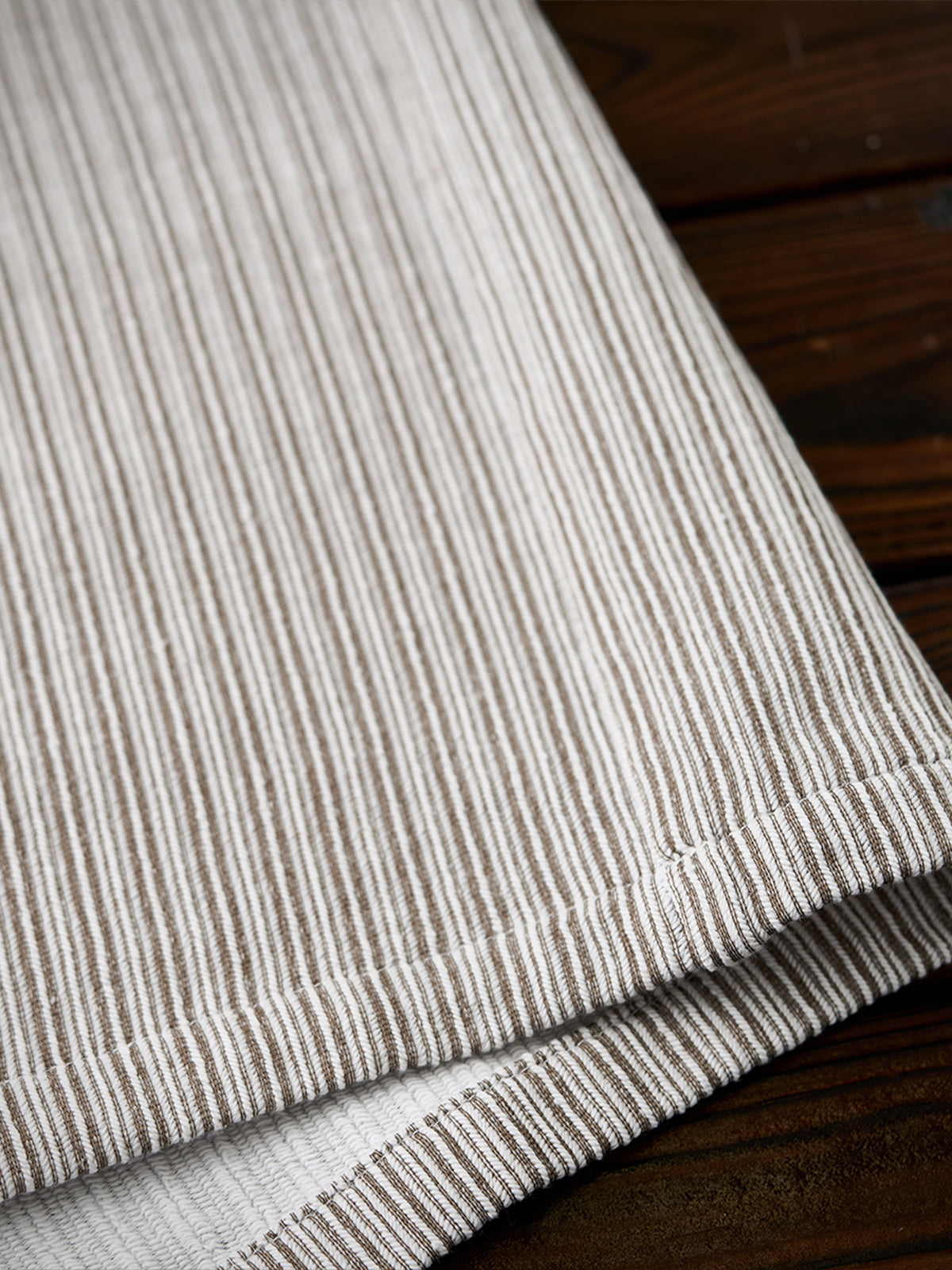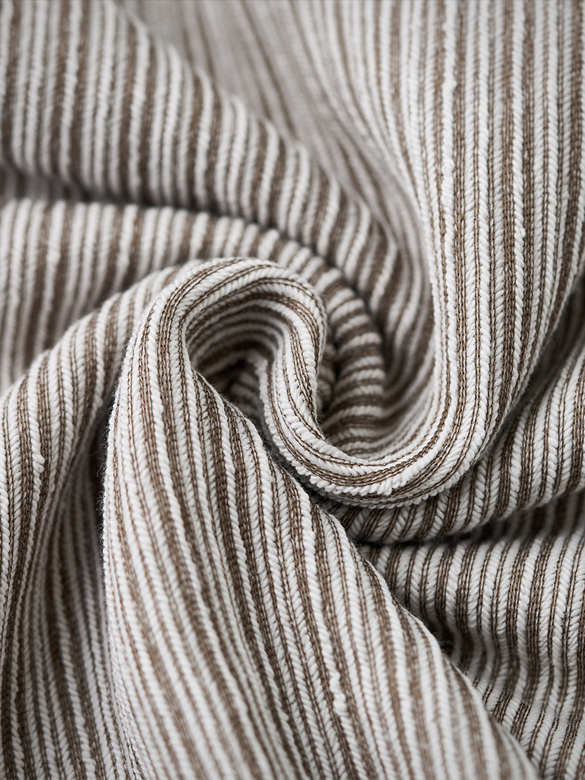 Retro Multi-Stripe Linen-Blend Shirt with Red Cord Detail